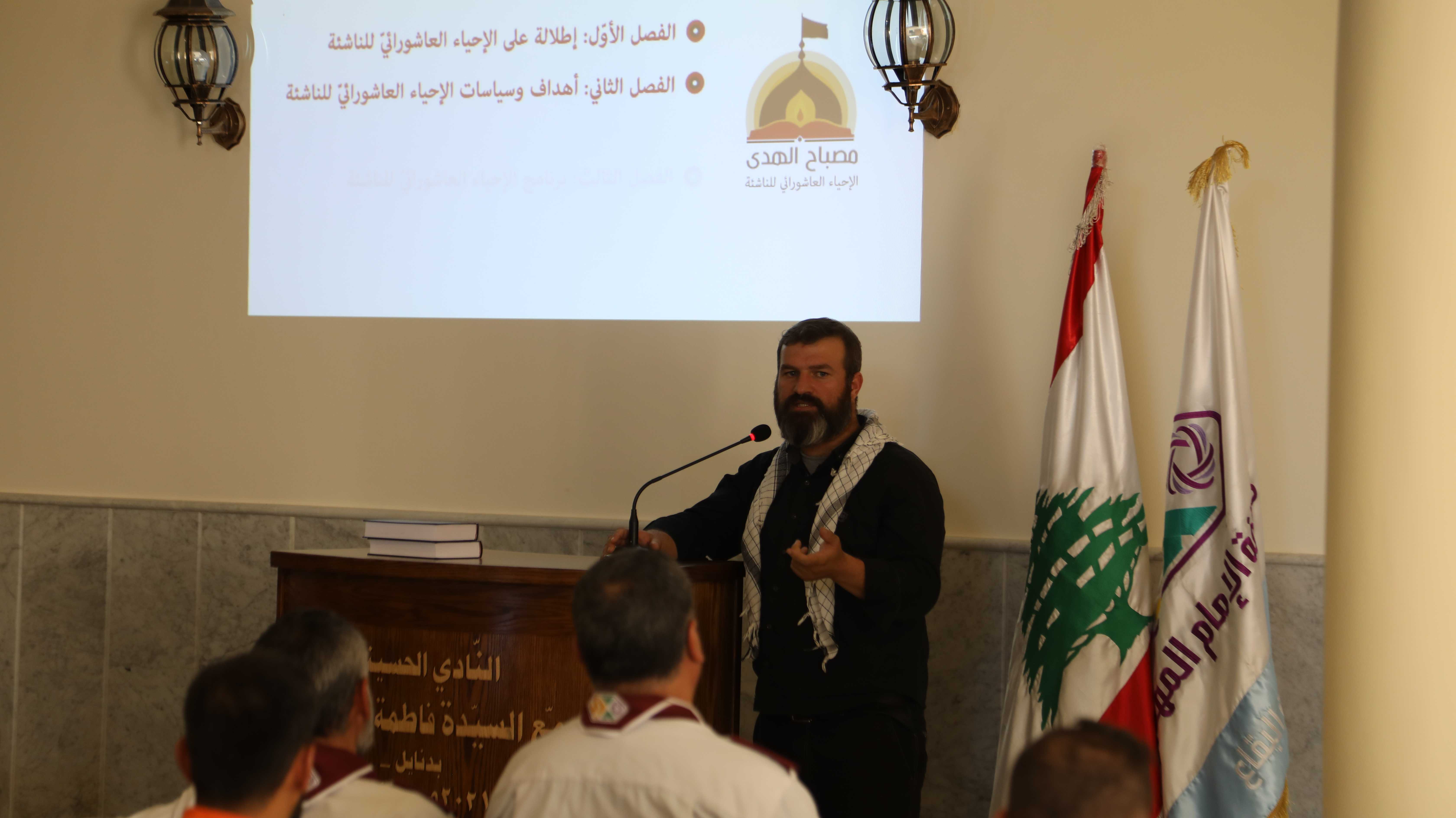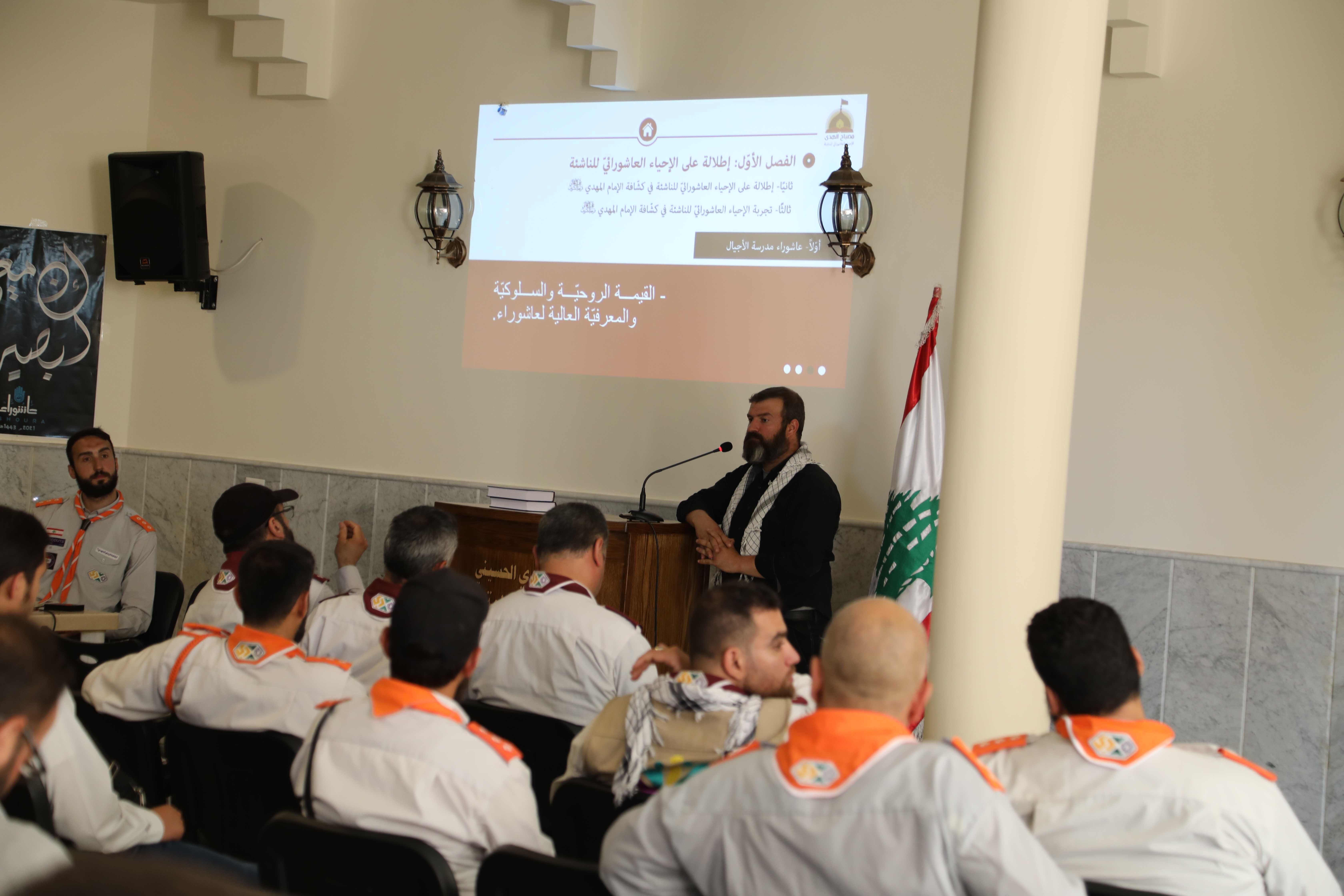 وكان مسك الختام، مع عرض الرؤية الثقافية التربوية للإحياء العاشورائي للناشئة ، الذي أفاض في تبيين أهدافه أمين الأنشطة الثقافية الشيخ عبدالله حميّة مشيراً إلى أهمية إقامة المجالس للناشئة ومدى قدرتها على التأثير في نفوس الكشفيين، كما شدّد على ضرورة التنوّع في تقديم الفقرات العاشورائية الهادفة. وكان لأمين المعلومات فراس عمار شرح مفصل عن كيفية إرسال المعلومات عبر تطبيق جوجل فورم