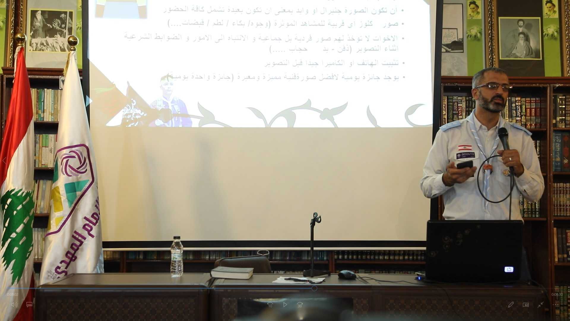 ثم باشر أمين الإعلام في مفوضية البقاع فراس طليس بتقديم الإرشادات الاعلامية العاشورائية لهذا العام والتي سلّط الضوء من خلالها على أهمية المشهديّة العاشورائية وصوابية التقاط الصورة .
