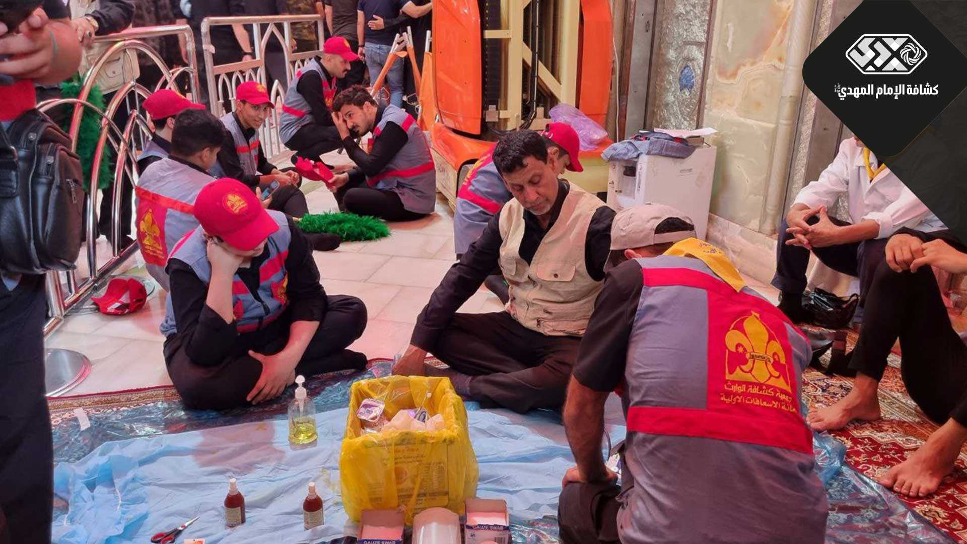 حيث أنشأ بالتعاون مع كشافة الوارث التابع للعتبة الحسينية الشريفة نقاط إسعافية على مداخل الضريح الشريف، مهمتها الأساسية تقديم الرعاية الإسعافية لكل من يتعرض لأي حادث أو إصابة اثناء اداء الزيارة.