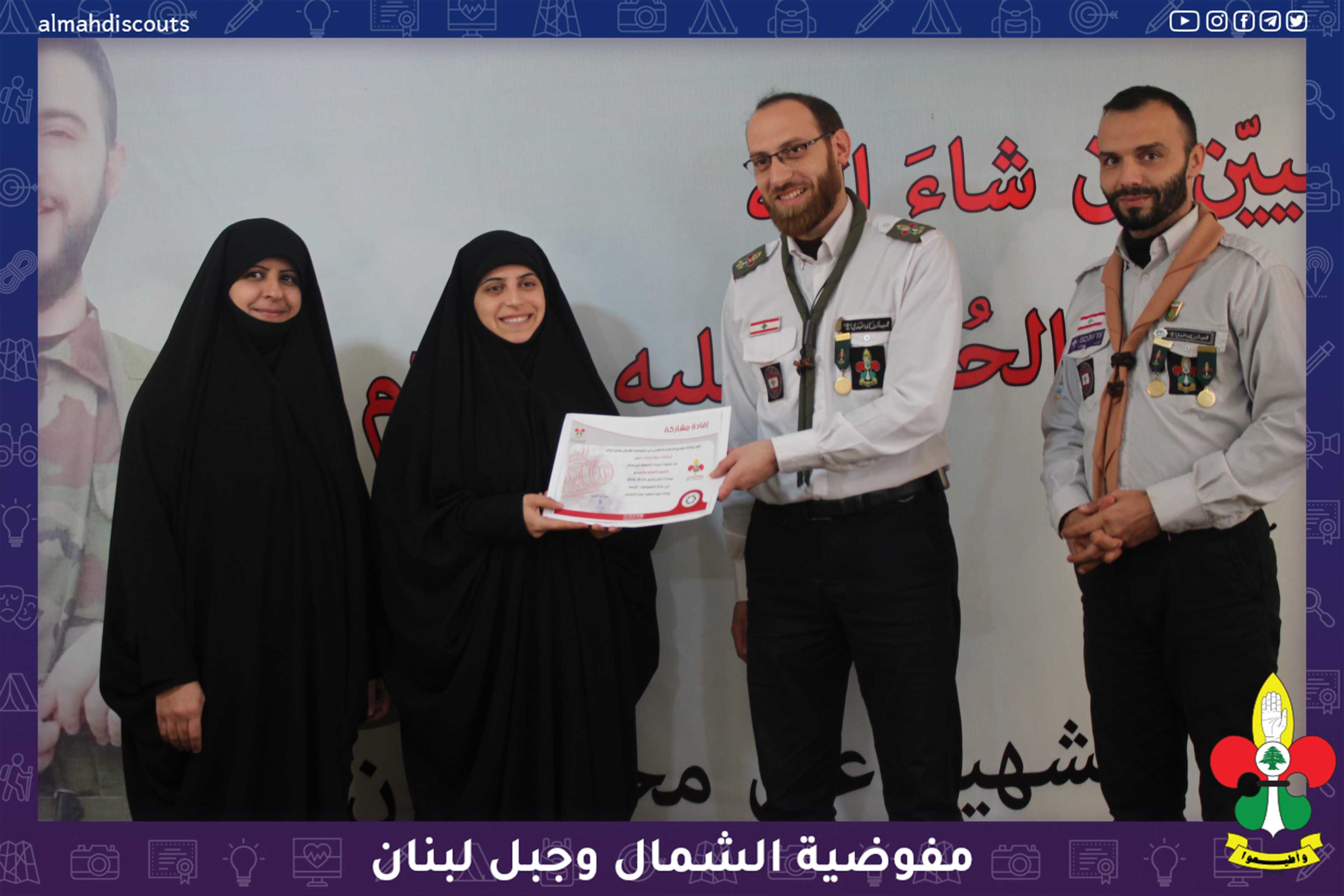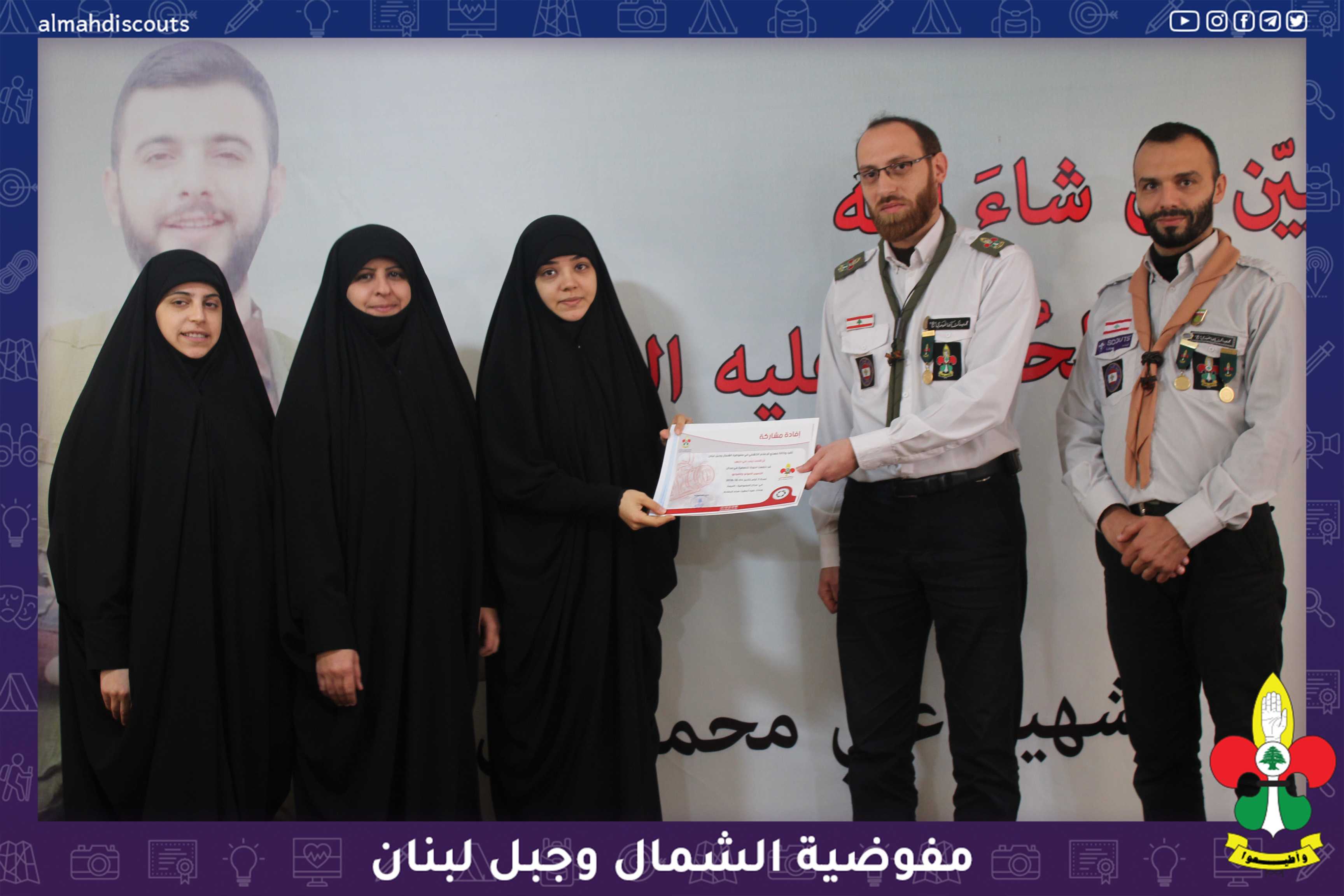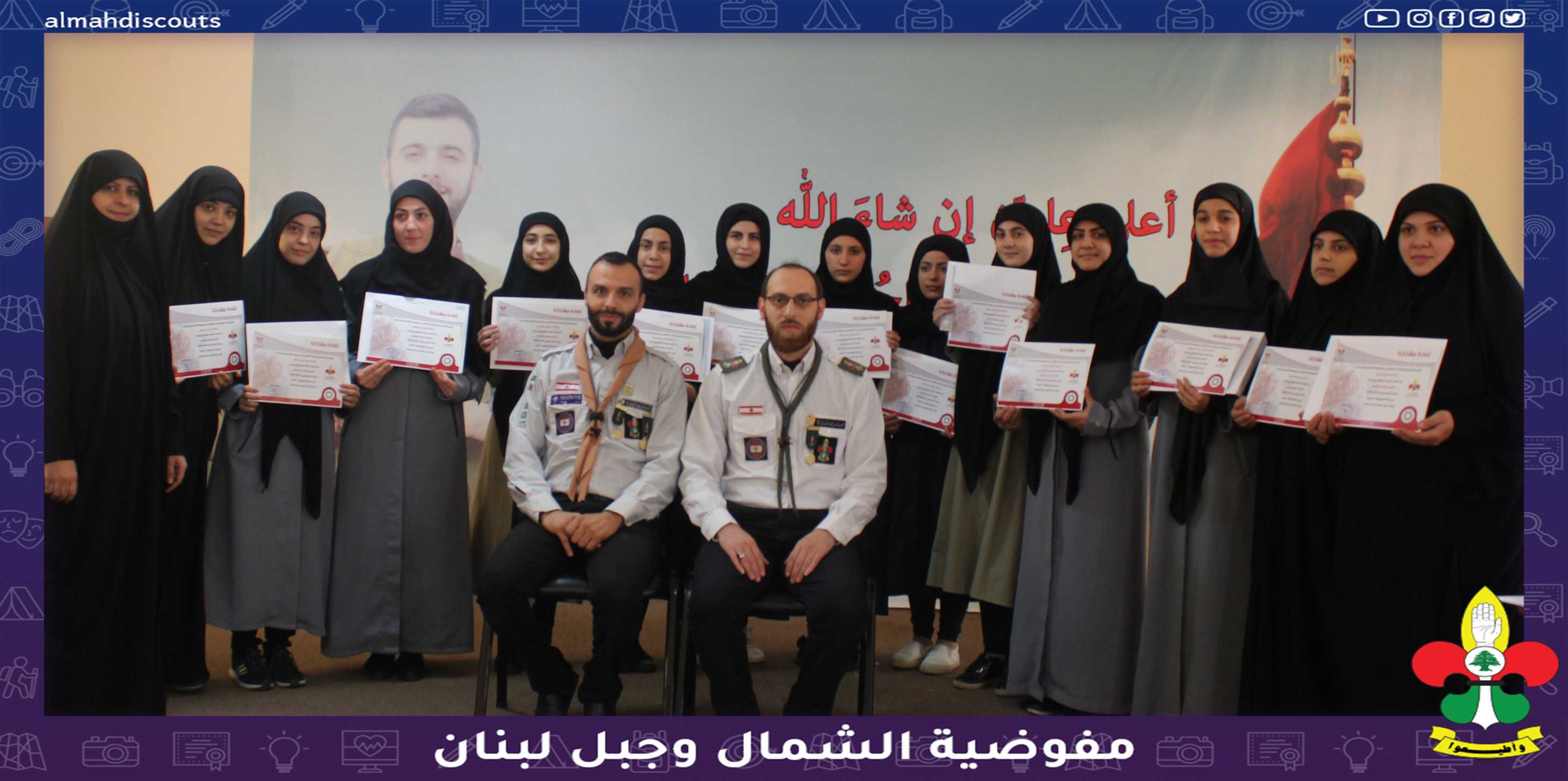 بعد يوم حافل من التطبيق العملي وبحضور ورعاية مفوض الشمال وجبل لبنان اختتمت وكالة مهدي للاعلام الكشفي دورتي التصوير الفوتوغرافي والفيديو في مركز المفوضية الكائن في منطقة النبعه المشاركات اللواتي تعرفن على كيفية التصوير والصوره الصحيحه في الدورة التي استمرت مدة ثلاثة ايام .تحدث الشيخ حلال عن دور الاعلام والصوره في نقل الحدث وتغيير الحدث وشدد على دور عمل الوكالة في ابراز الانشطه الكشفية التي تقام في القطاعات والافواج