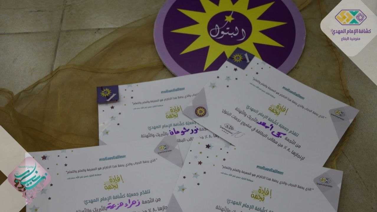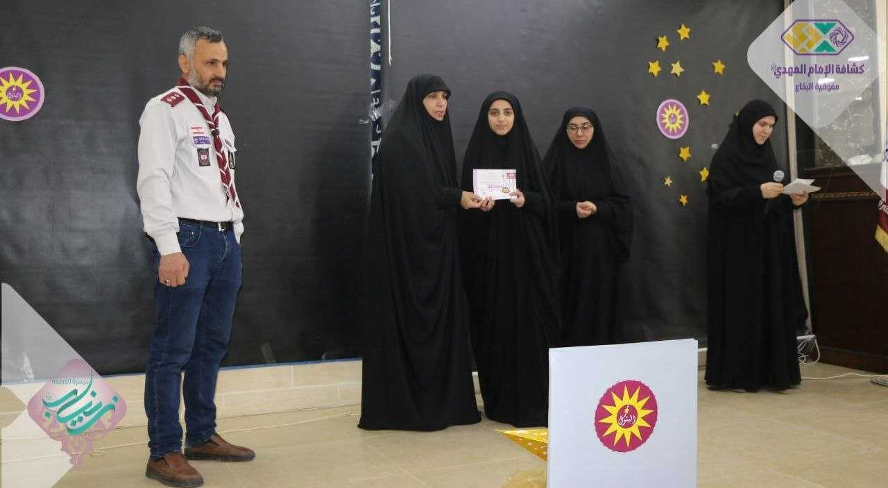 كرّم القطاع الشرقي ٨٠ نجمة من الزهرات والمرشدات بحضور سماحة السيد حسن الموسوي ومفوضة المرشدات وأمينة الفنون في البقاع، افتتح الحفل بمراسم تعظيم للقرآن الكريم تلاها نشيد "هي زينب "، عرض ريبورتاج تعريفي بالمشروع للسنة الجديدة، كلمة للنجمات وبعدها وزعت الإفادات ، واختتم الحفل بتقديم لوحة بعنوان "الطريق إلى زينب" كانت قد رسمت خلال الحفل عربون تقدير للمفوضة، ولا يخلو الختام من نشيد "سلام يا مهدي" ليكون ختامها مسك.