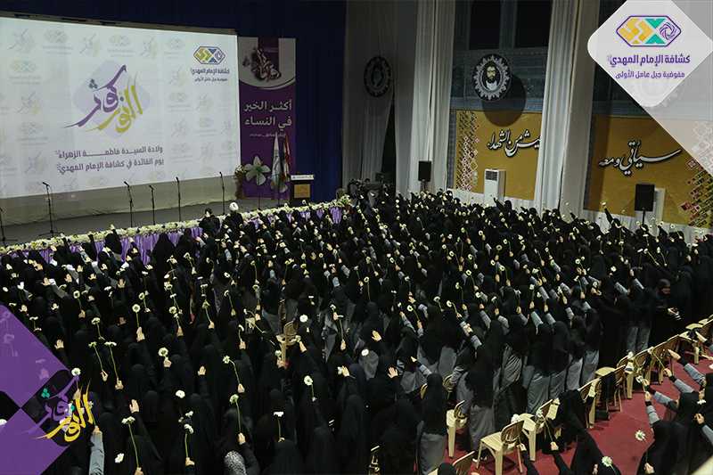 بحضور مميّزٍ ملؤُه الحب، جمع أكثر من 800 قائدة على محبة الزهراء (عليها السلام) وأسوةً بها، أحيت #مفوضية_جبل_عامل_الأولى الولادة العطرة لسيدة نساء العالمين (عليها السلام)، ويوم القائدة في كشافة الإمام المهدي (عجل الله تعالى فرجه)، في حفل حمل اسم \"كوثر النور\"، وذلك في مجمع الإمام الحسين (عليه السلام)-صور.
