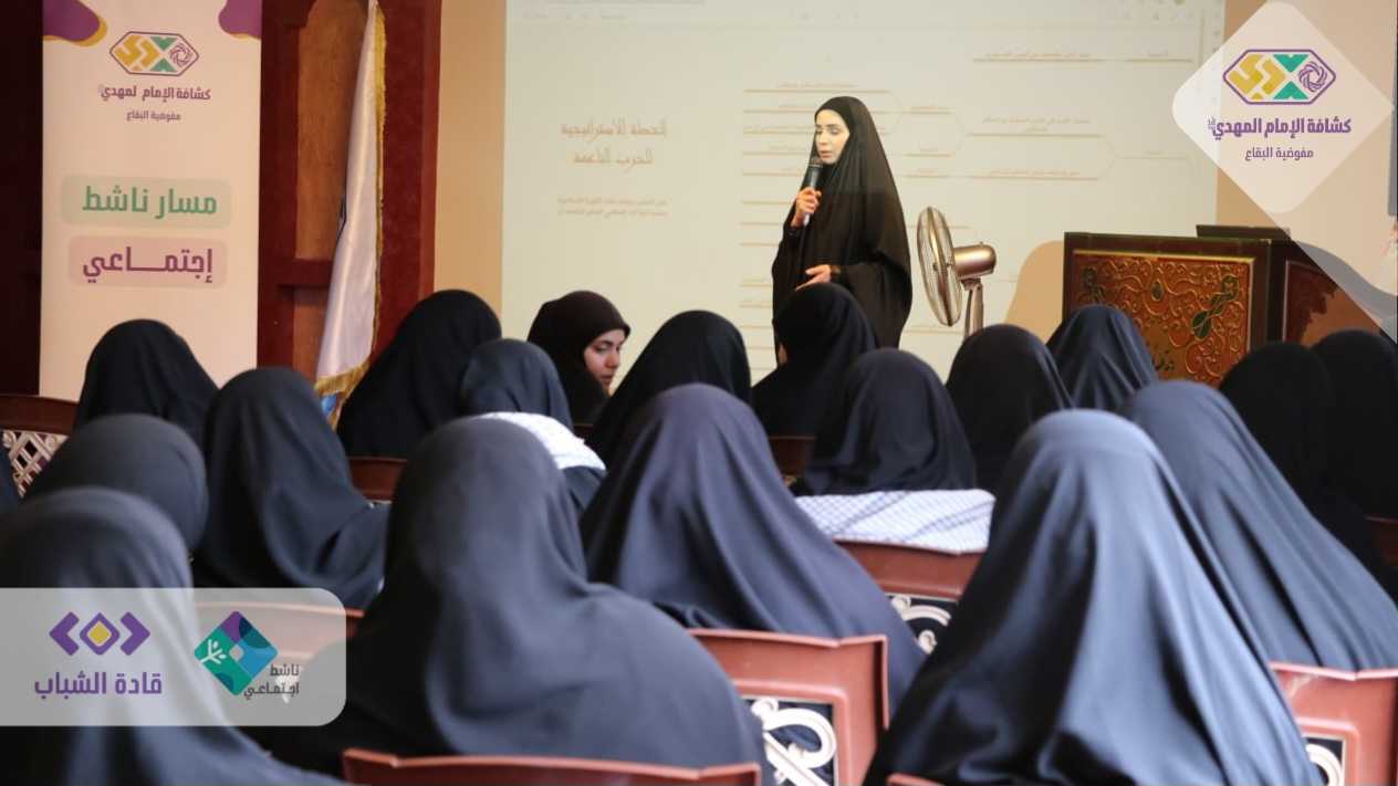 أما دورة ناشط شبابي فقد تميزت بالحماس الذي حضر مع المتدربين والمتدربات في أسبوعهم الرابع، ومن مركز اتحاد بلديات بعلبك الى مدينة السيد عباس نشاط وتميز حيث قدمت المدربة الدكتورة نبال رعد ورشة مواجهة الجمهور، ثم تعرفت المتدربات مع المدربة زينب عقيل على كيفية كتابة المقالة وختام يومهن مع الإعلامي حسين مرتضى وورشة الرأي العام وفي الفترة غير المباشرة كانت مناقشة كتاب الدستور اللبناني والمشاركة بورشة مواجهة الإلحاد مع الشيخ سمير خير الدين. وبالمقابل تعرف القادة على خصائص واحتياجات الشباب، التلخيص والمقال مع المدرب الأستاذ محمد عودة، وأساليب النفوذ في فكر الإمام القائد مع المدرب علي ناصر الدين.