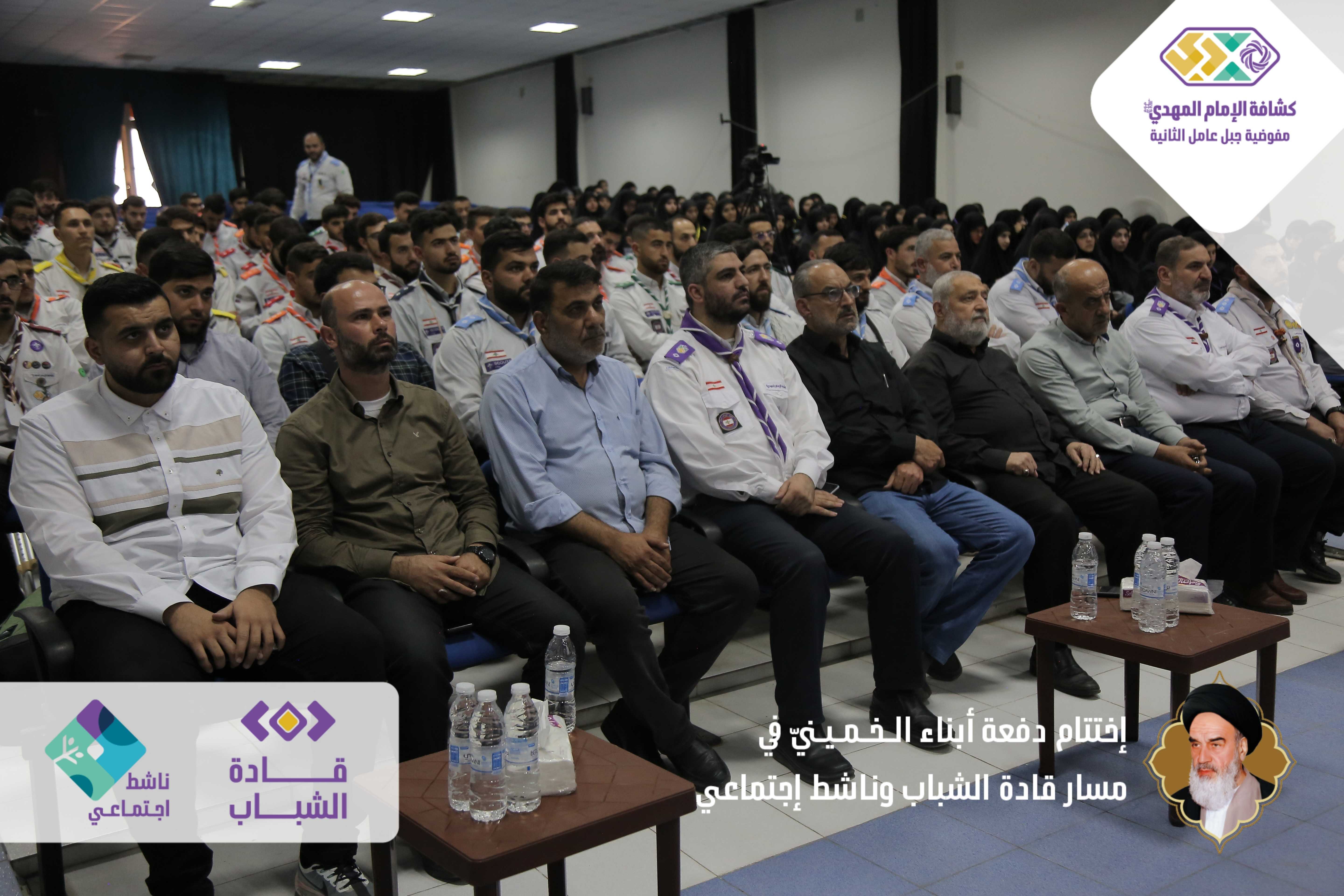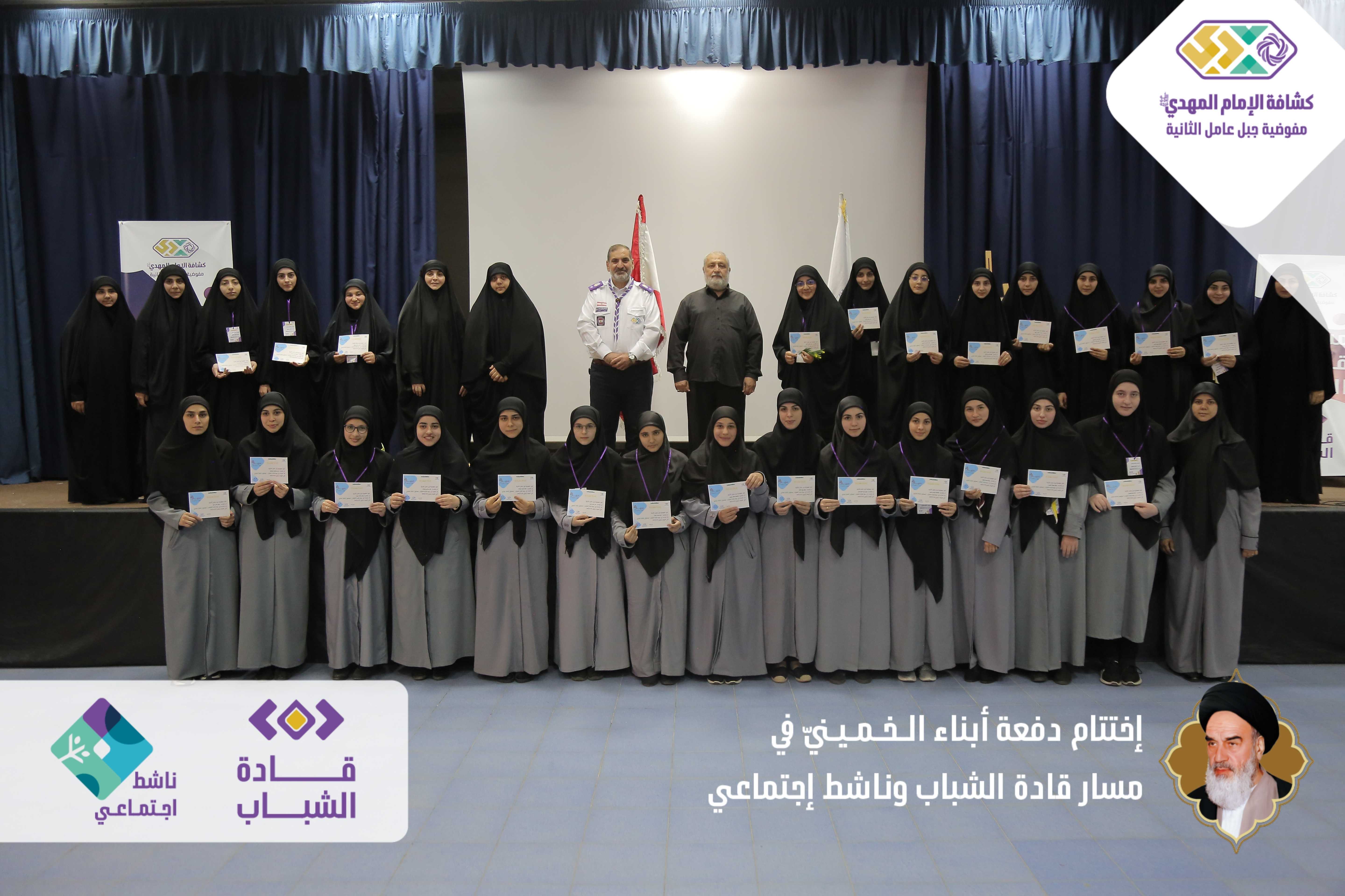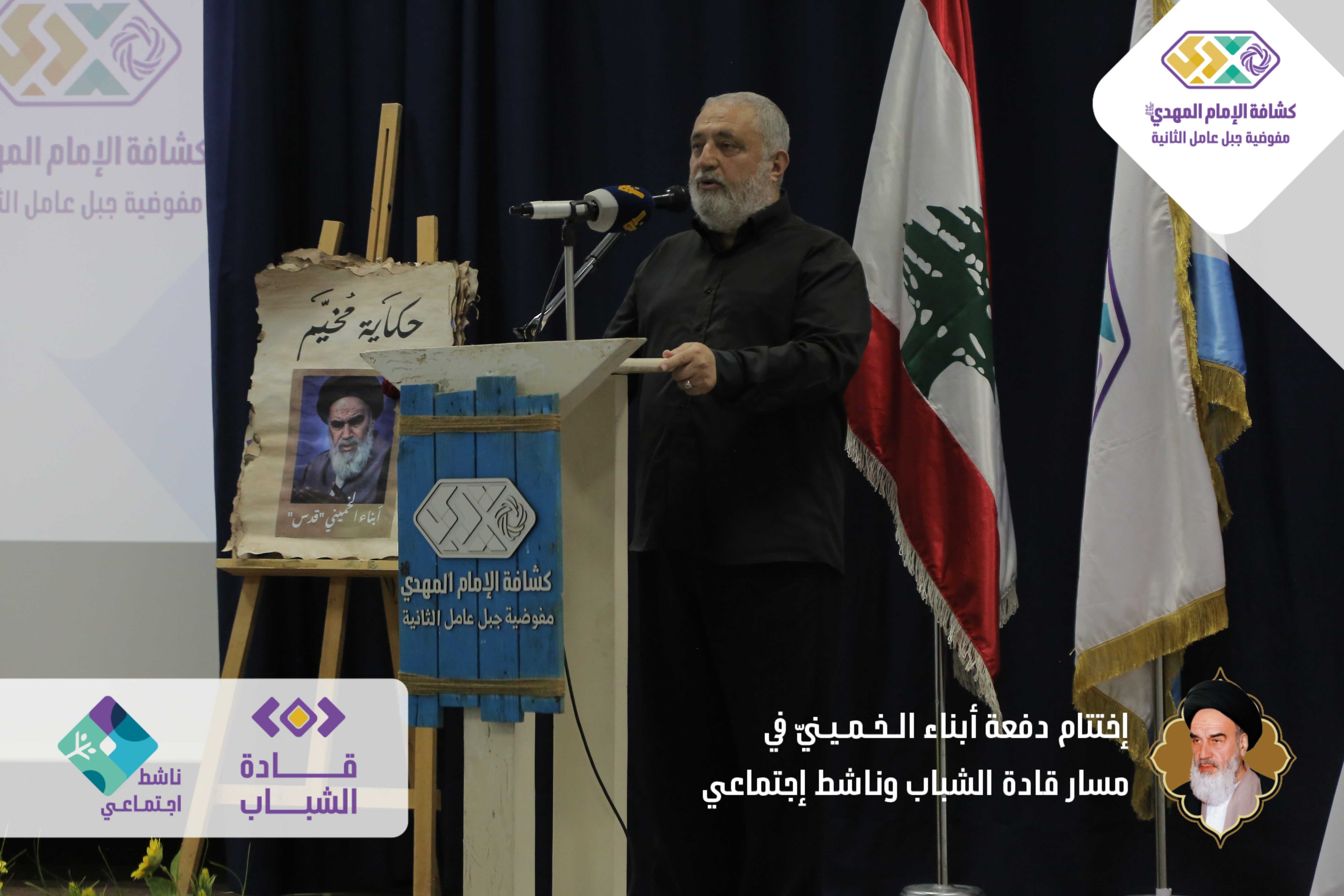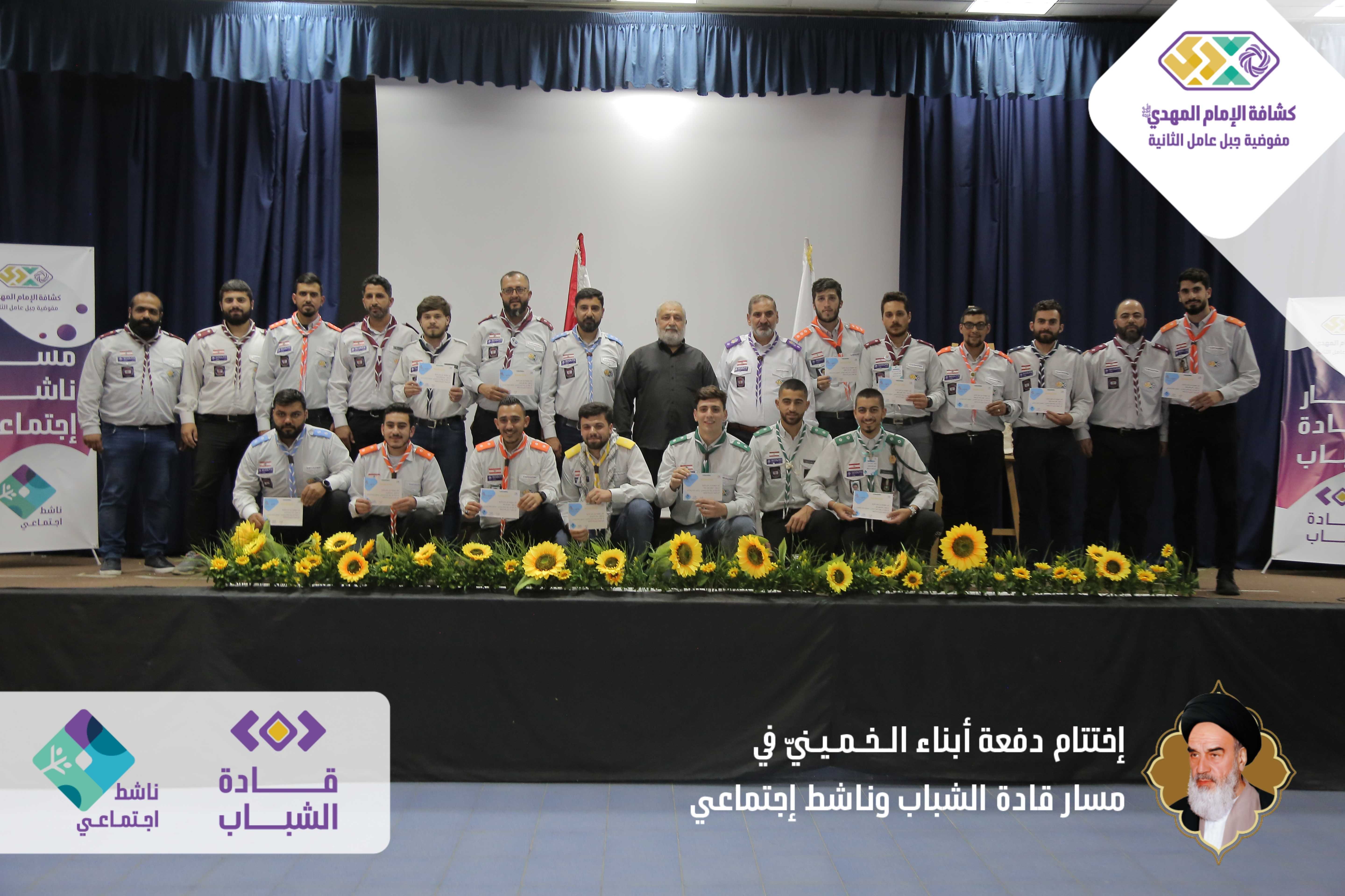 دفعةٌ خمينيةٌ خامنئيةٌ ولائية شبابيةٌ حاضرةٌ وواعدة، بدأت أولى خطوات مسارها اليوم بعدما اختتمت مفوضية جبل عامل الثانية الدفعة الأولى من مساري قادة الشباب وناشط اجتماعيّ في حفلٍ أقيم برعاية مسؤول منطقة جبل عامل الثانية الحـاج عـلـي ضـعـون. شهدَ الحفل الذي أقيم في قاعة تجار مدينة النبطية حضورًا فاعلًا للشخصيات ومدرّبي دورات المسارين، وتخلله عرض تقرير إعلامي مصور عن المسارين، وكلمة باسم المتدربين كانت عبارة عن فقرة فنّية مميّزة بعنوان - حكاية مخيم أبناءُ الـخـمـيـنيّ. وفي كلمتهِ باركَ الحاج علي ضعون الخطوة المميزة للمسارات والتي اعتبرها أمل كبير في الساحات المتعددة، والتي ترسمُ المستقبل القادم والزاهر والناجح. وفي ختام الحفل وزّع مسؤول منطقة جبل عامل الثانية ومفوض جبل عامل الثانية الدروع التقديرية على المدربين والمدربات، وباركوا الصور التّذكارية التي التقطت مع قادة الشباب والناشطين الاجتماعيين.