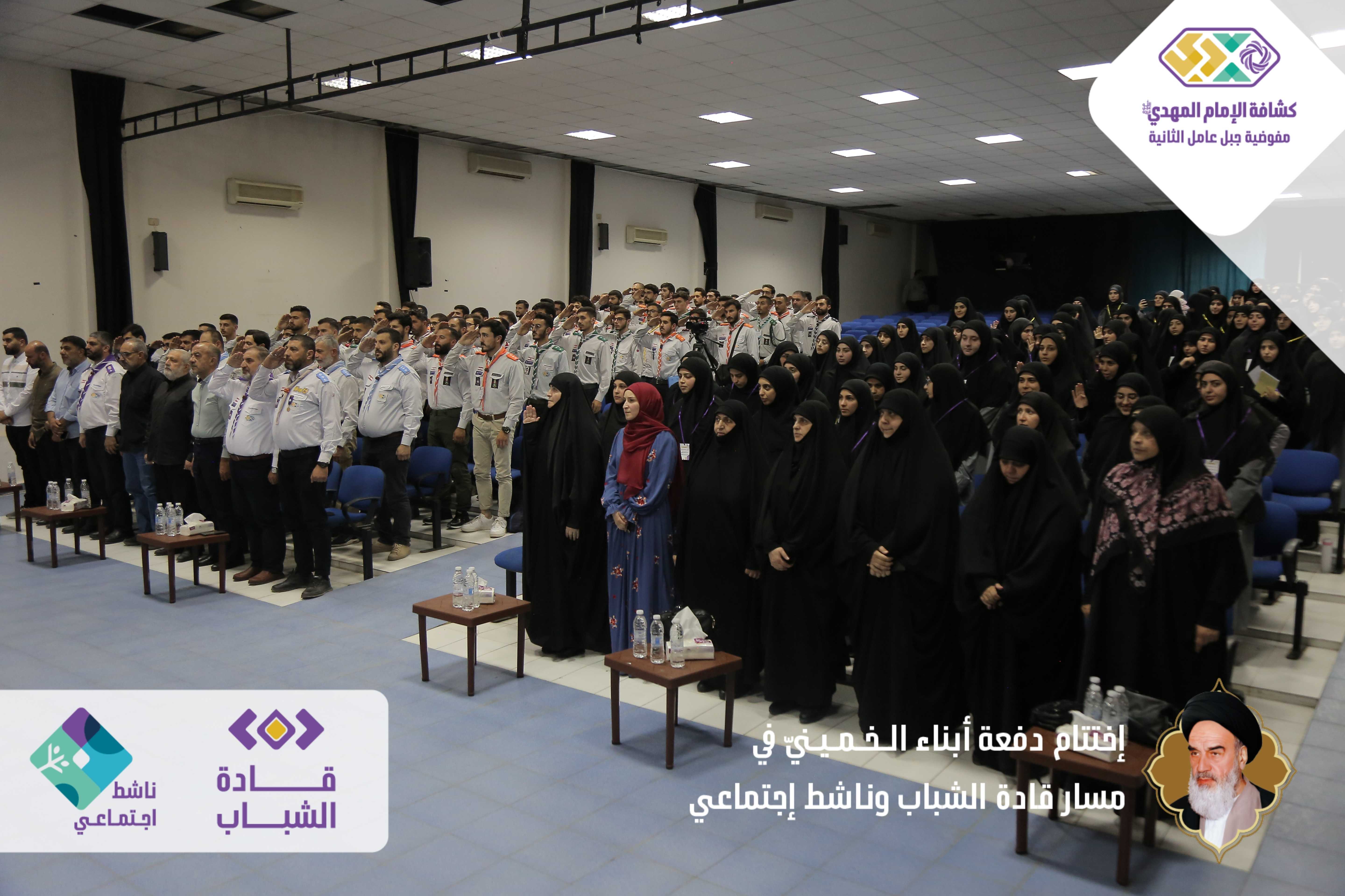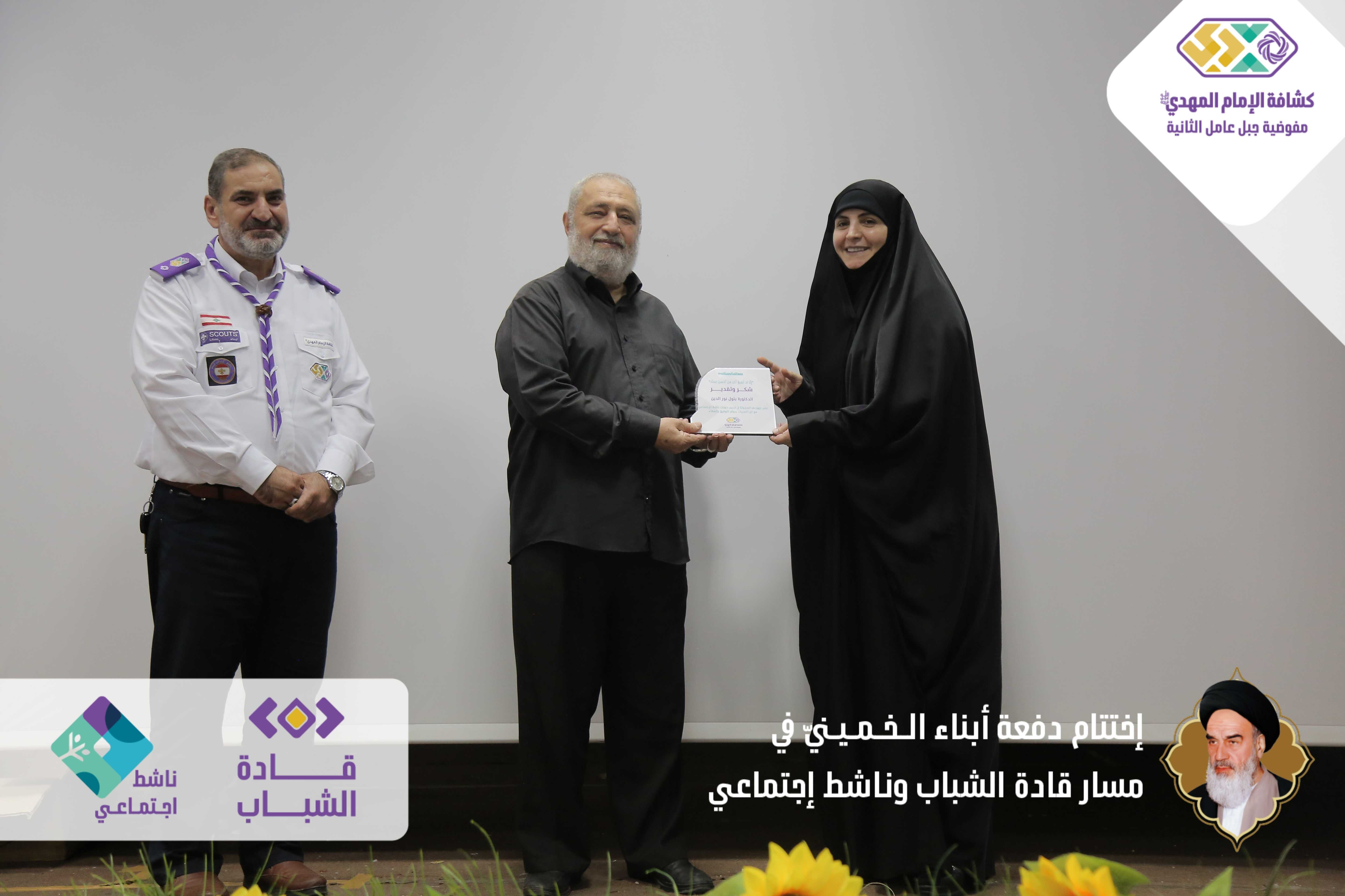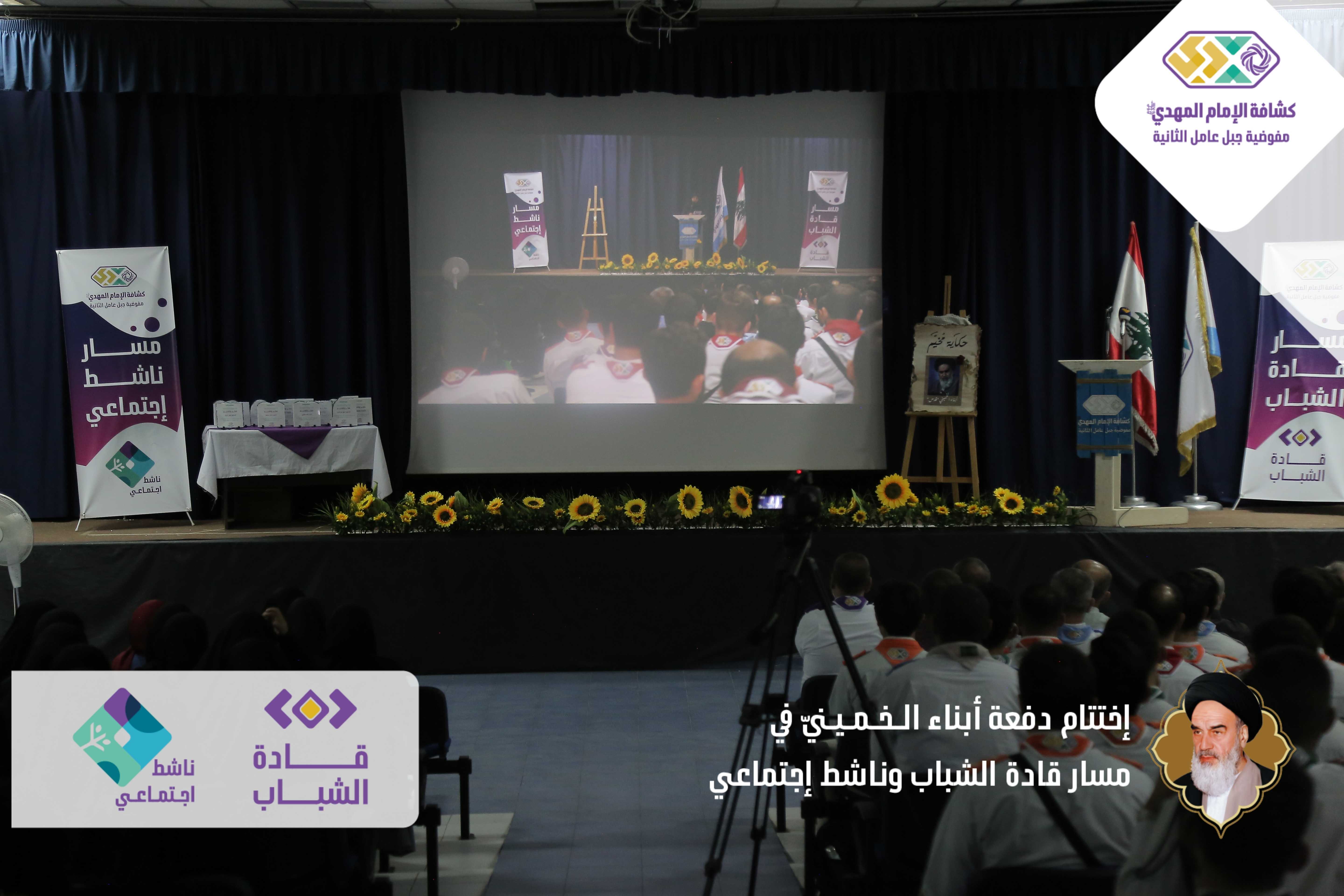 دفعةٌ خمينيةٌ خامنئيةٌ ولائية شبابيةٌ حاضرةٌ وواعدة، بدأت أولى خطوات مسارها اليوم بعدما اختتمت مفوضية جبل عامل الثانية الدفعة الأولى من مساري قادة الشباب وناشط اجتماعيّ في حفلٍ أقيم برعاية مسؤول منطقة جبل عامل الثانية الحـاج عـلـي ضـعـون. شهدَ الحفل الذي أقيم في قاعة تجار مدينة النبطية حضورًا فاعلًا للشخصيات ومدرّبي دورات المسارين، وتخلله عرض تقرير إعلامي مصور عن المسارين، وكلمة باسم المتدربين كانت عبارة عن فقرة فنّية مميّزة بعنوان - حكاية مخيم أبناءُ الـخـمـيـنيّ. وفي كلمتهِ باركَ الحاج علي ضعون الخطوة المميزة للمسارات والتي اعتبرها أمل كبير في الساحات المتعددة، والتي ترسمُ المستقبل القادم والزاهر والناجح. وفي ختام الحفل وزّع مسؤول منطقة جبل عامل الثانية ومفوض جبل عامل الثانية الدروع التقديرية على المدربين والمدربات، وباركوا الصور التّذكارية التي التقطت مع قادة الشباب والناشطين الاجتماعيين.