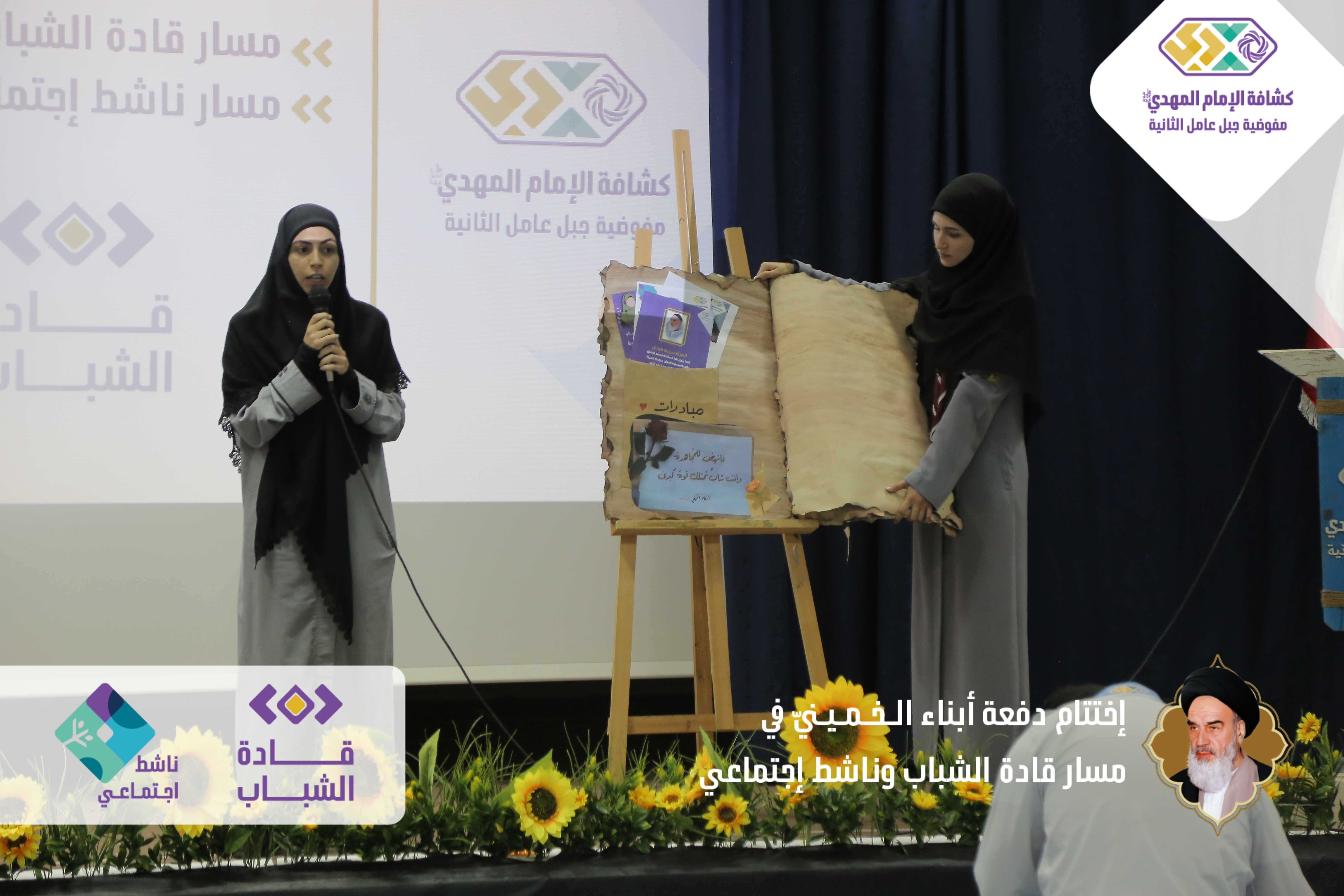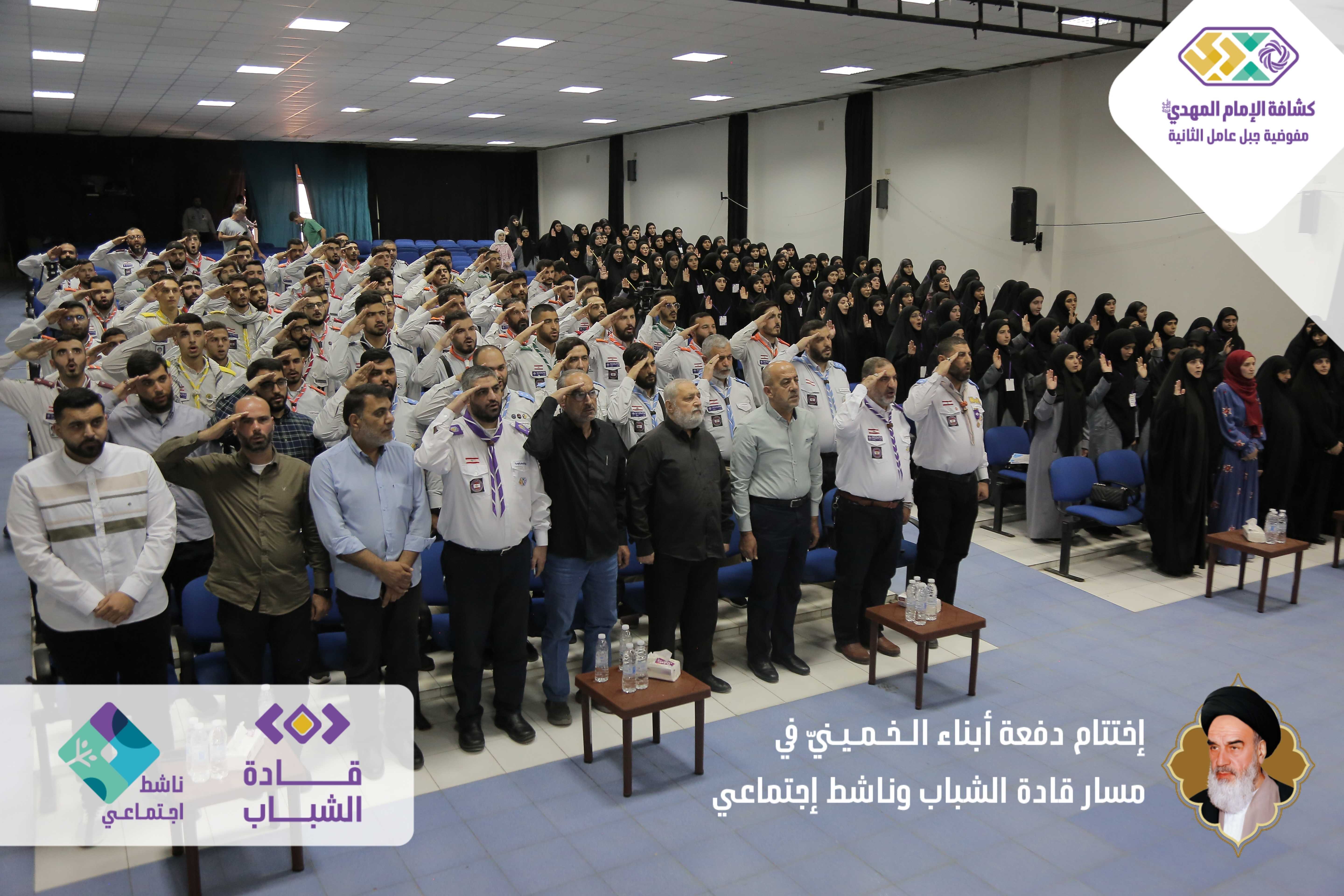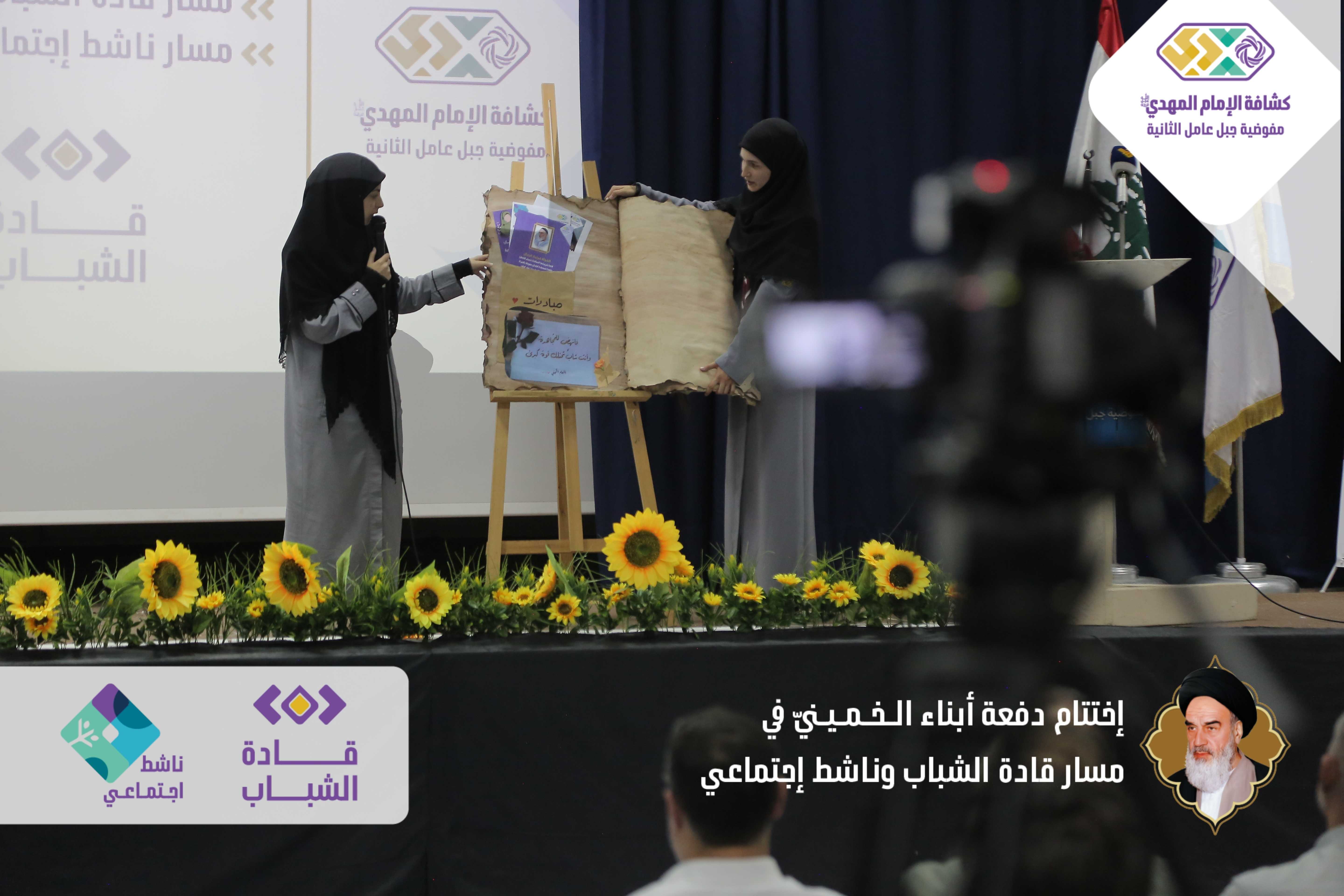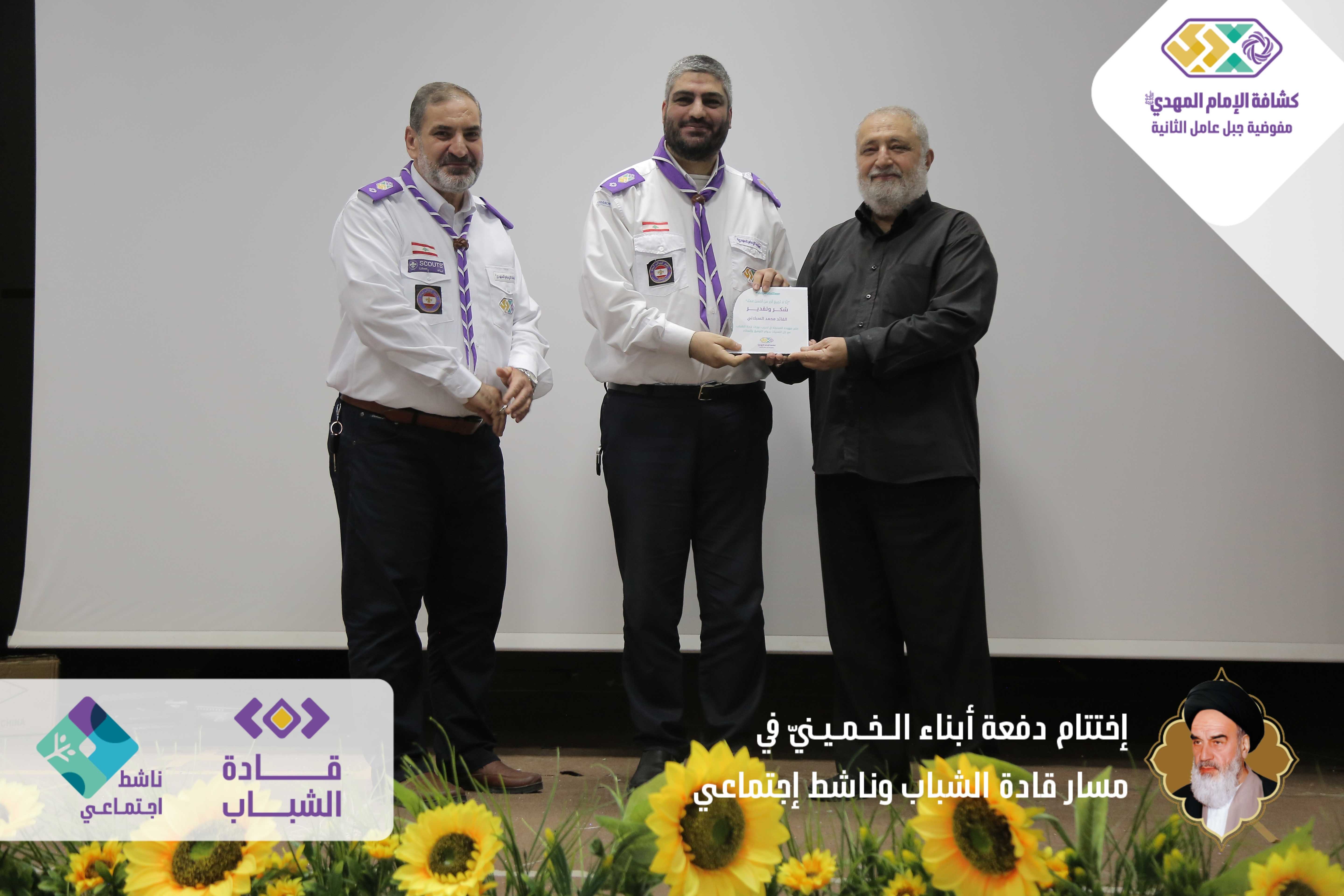 دفعةٌ خمينيةٌ خامنئيةٌ ولائية شبابيةٌ حاضرةٌ وواعدة، بدأت أولى خطوات مسارها اليوم بعدما اختتمت مفوضية جبل عامل الثانية الدفعة الأولى من مساري قادة الشباب وناشط اجتماعيّ في حفلٍ أقيم برعاية مسؤول منطقة جبل عامل الثانية الحـاج عـلـي ضـعـون. شهدَ الحفل الذي أقيم في قاعة تجار مدينة النبطية حضورًا فاعلًا للشخصيات ومدرّبي دورات المسارين، وتخلله عرض تقرير إعلامي مصور عن المسارين، وكلمة باسم المتدربين كانت عبارة عن فقرة فنّية مميّزة بعنوان - حكاية مخيم أبناءُ الـخـمـيـنيّ. وفي كلمتهِ باركَ الحاج علي ضعون الخطوة المميزة للمسارات والتي اعتبرها أمل كبير في الساحات المتعددة، والتي ترسمُ المستقبل القادم والزاهر والناجح. وفي ختام الحفل وزّع مسؤول منطقة جبل عامل الثانية ومفوض جبل عامل الثانية الدروع التقديرية على المدربين والمدربات، وباركوا الصور التّذكارية التي التقطت مع قادة الشباب والناشطين الاجتماعيين.