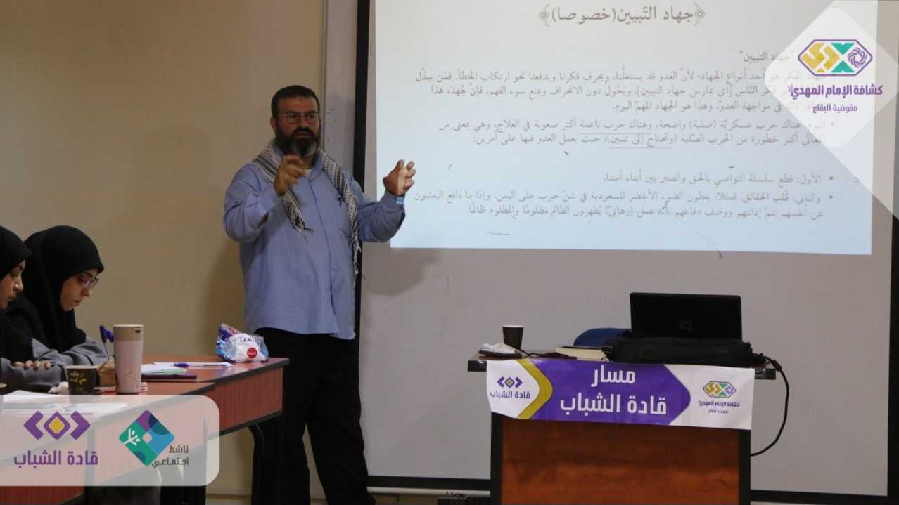 أما قادة الشباب فقد تعرفوا ضمن دورة ناشط شبابي على المونتاج عبر الهاتف مع المدرب المخرج حسين عباس زين، وقدّم الدكتور حسين علي حمية تاريخ الشيعة في لبنان، ورشة السيادة الشعبية الدينية مع الشيخ أحمد عرار، جهاد التبيين مع الشيخ عبدالله حمية وقدم الدكتور علي جعفر ورشة المؤسسات والسلطات ليكون القراءة في كتاب فقرة محفزة وجاذبة في ختام يومهم.