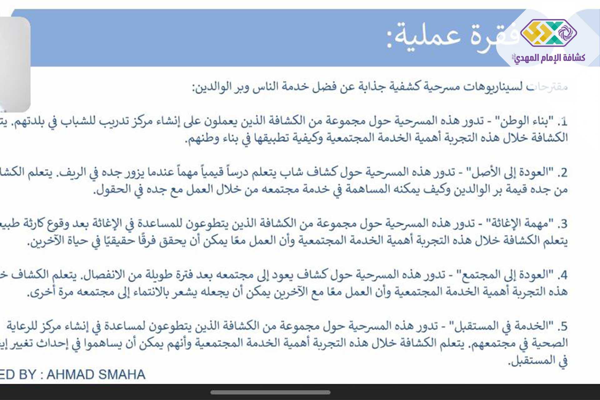 أقامت مفوضية الفنون و المواهب ورشة افتراضية تطبيقية حول استخدام الذكاء الاصطناعي في الفن. قدّم الورشة الخبير في مجال الذكاء الاصطناعي " أحمد سماحة " لِ ١٦ مشترك من الكشفيين و العموم. قام المشتركين بتنفيذ أنشطة مختلفة على تطبيقات " chatgpt bing creator dall.e وتمحورت نتاجاتهم حول العمل الفني الكشفي .