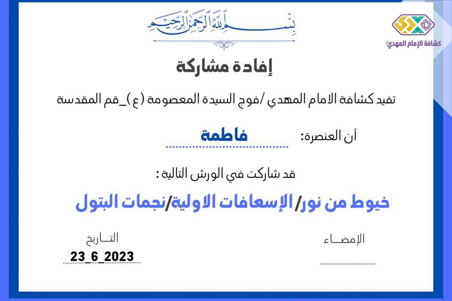 ضمن سلسلة الورش الاختصاصيَّة في إعداد وتأهيل قائدات فوج السیدة المعصومة عيها السلام في قم، نفَّذت مفوَّضية التدريب في جمعية كشافة الإمام المهدي (عجل الله فرجه) بالتعاون مع مفوضية العلاقات الدولية الورش الاختصاصيّة الآتية: