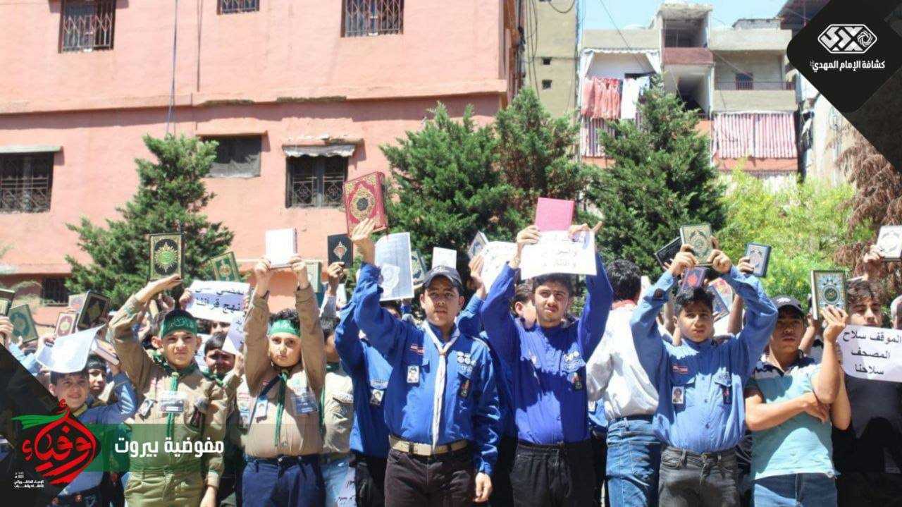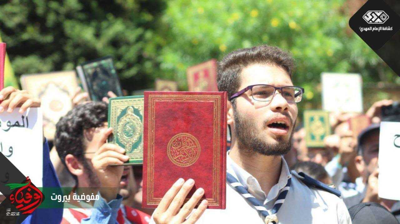 { إِنّ هَذَا الْقُرْآنَ يِهْدِي لِلّتِي هِيَ أَقْوَمُ… } [الإسراء: 9]، احتجاجاً على تدنيس القرآن الكريم ودفاعاً عن كتابنا المقدس شاركت أفواج مفوضية بيروت في مراسم تعظيم القرآن الكريم في المجلس العاشورائي المركزي في بيروت والوقفات الاحتجاجية امام المساجد كما تم تلاوة آيات بينات من القرآن الكريم في بداية المجالس العاشورائية للناشئة وسط مشاركة واسعة.
