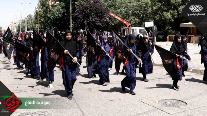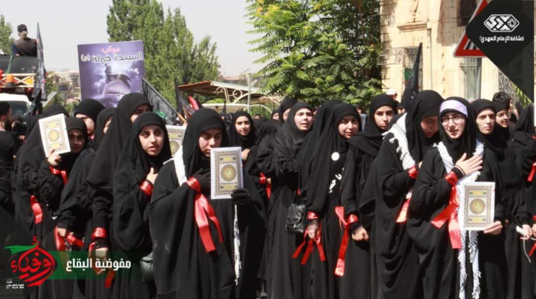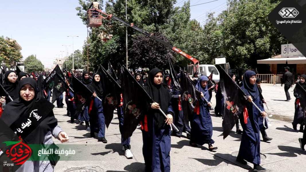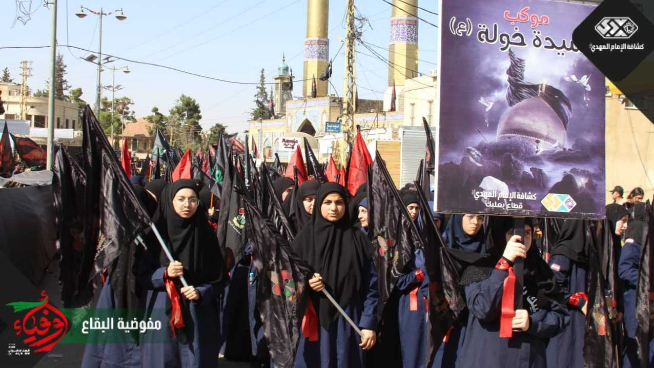 وفي بعلبك ومن مقام ابنة الحسين عليها السلام انطلقت مسيرة العاشر والتي جمعت حسينيو وزينبيات قطاعي بعلبك وبريتال، حيث رفعت الرايات والهتافات بلبيك يا حسين