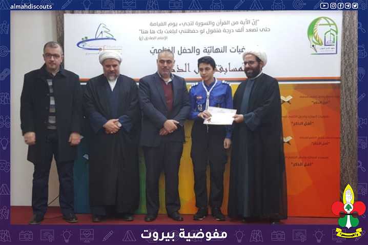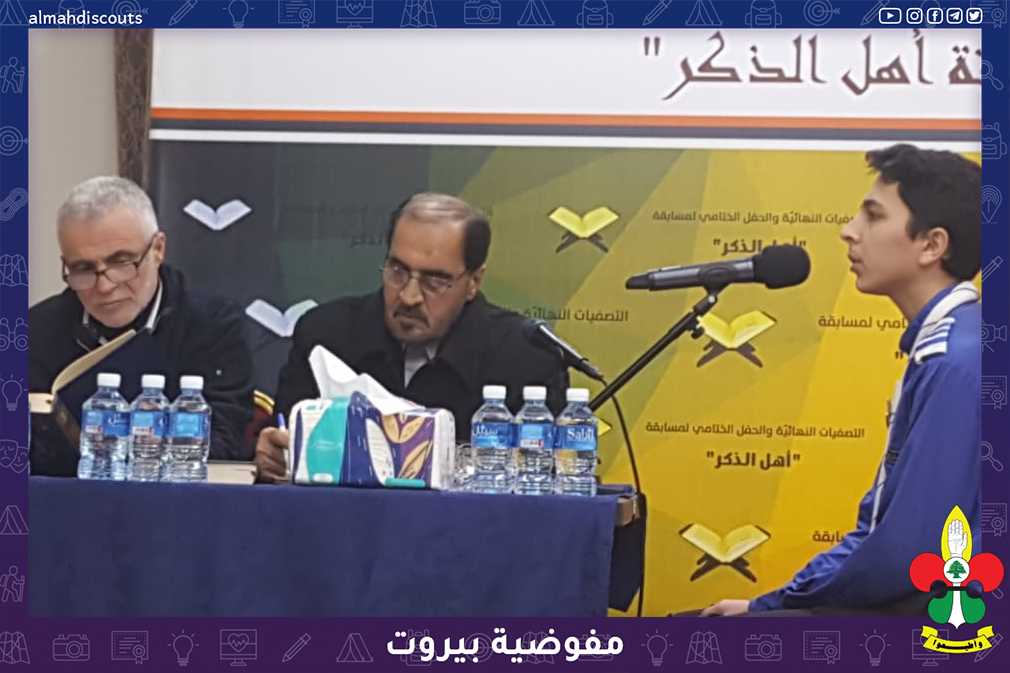 بأجواء ولادة الامام العسكري عليه السلام وبرعاية نائب رئيس المجلس التنفيذي فضيلة الشيخ علي دعموش ورعاية بلدية الغبيري ممثلة برئيسها الاستاذ معن خليل. أقيمت التصفيات النهائية لمسابقة "أهل الذكر" حيث فاز الجوال حسن محمد محي الدين من فوج سيد الاوصياء (ع)- القطاع الثاني لمفوضية بيروت بدرجة ممتاز من الفئة الاولى.