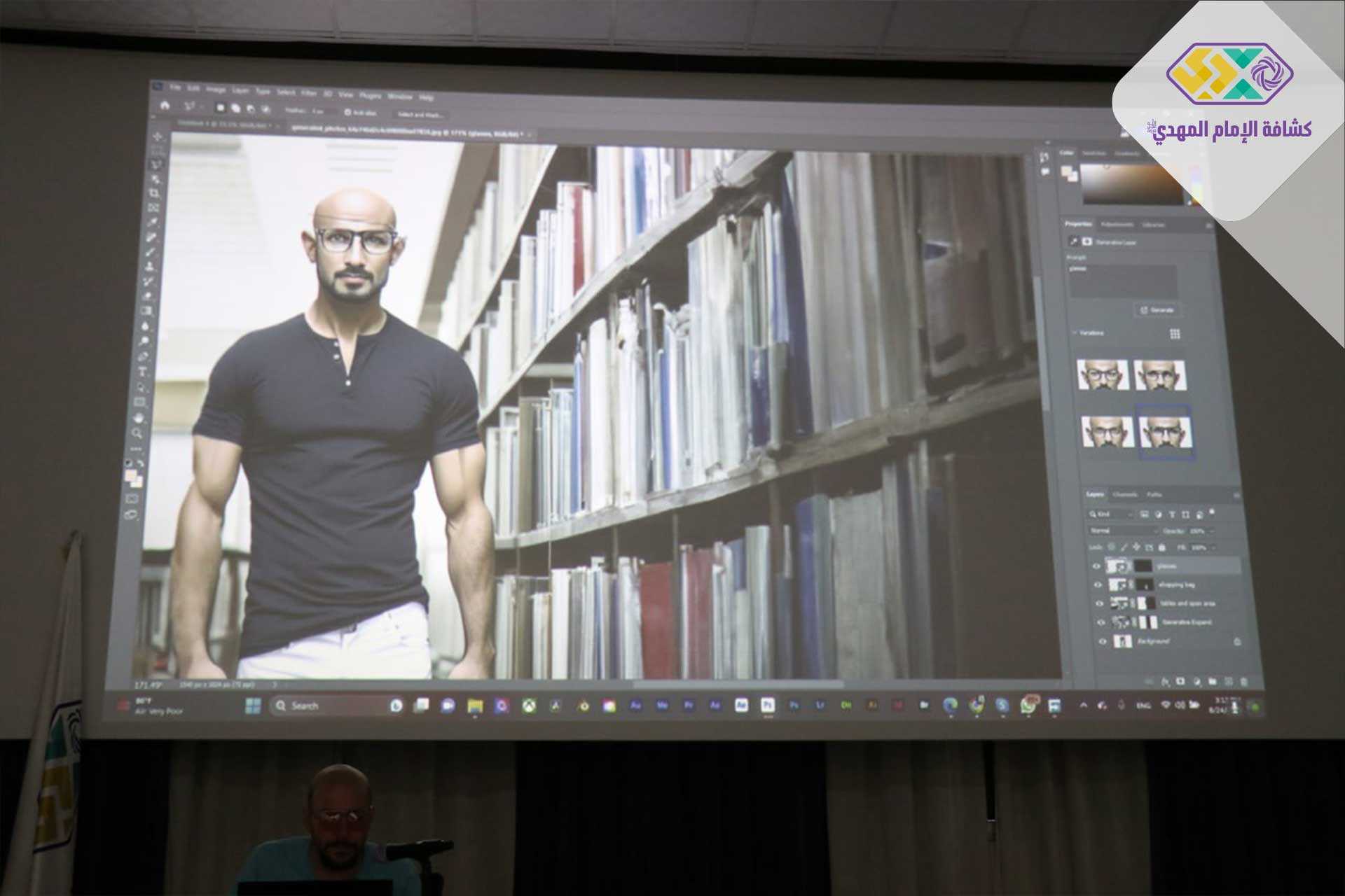 وفي اللقاء الثاني تطرق البحث إلى الذكاء الاصطناعي في الفنون وإمكانيات الاستفادة الحاليّة والآفاق المستقبليّة، مع المدرّب الأستاذ هادي شاتيلا الذي تناول دور الذكاء الاصطناعي واستعمالاته في مجال التصميم الغرافيكي والاتصال البصري، كما استعرض أمثلة تطبيقية لتقنيات الذكاء الاصطناعي في مشاريع التصميم الغرافيكي.