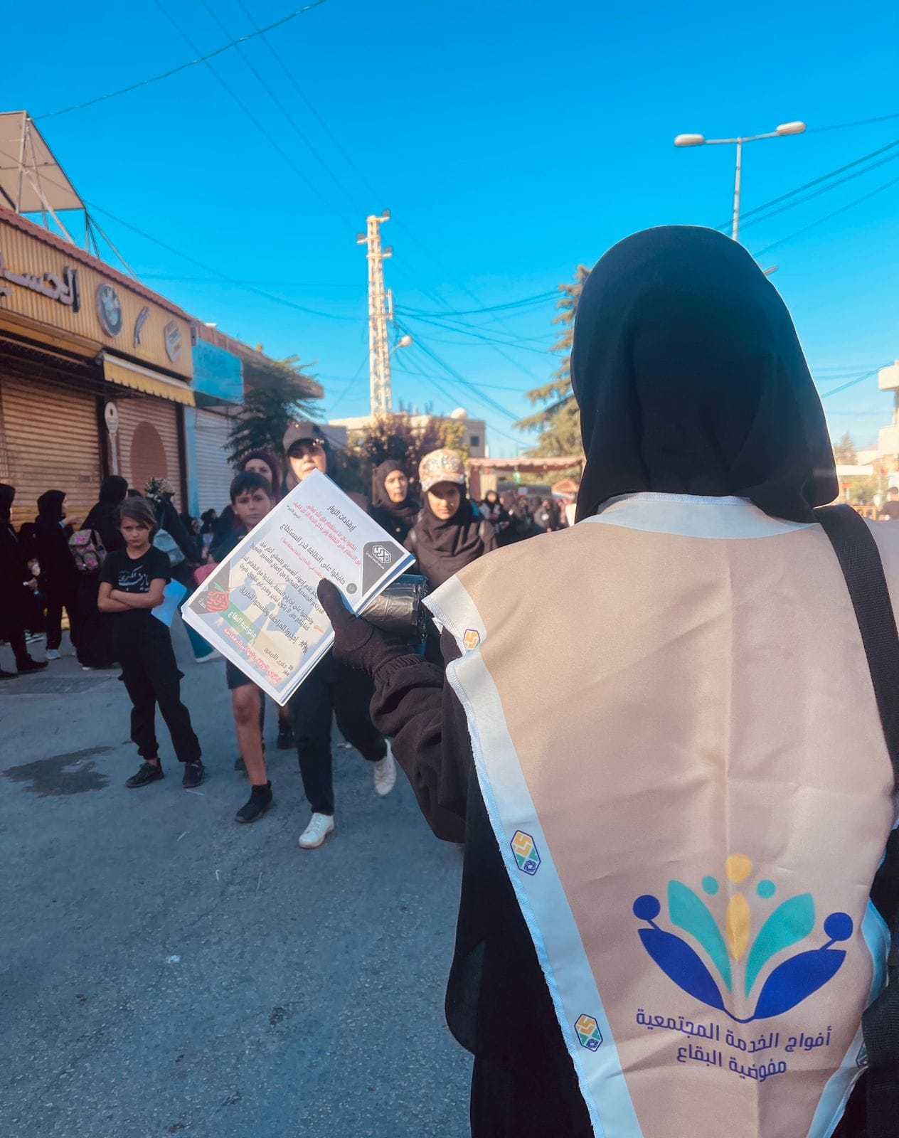 نظمت أفواج الخدمة المجمعية في كشافة الإمام المهدي عج مفوضية البقاع حملة بيئية حضارية تحت شعار خدام الحسين حيث انتشر الناشطون والناشطات من أفواج الخدمة المجمعية ومنذ الصباح الباكر تمام الساعة السادسة والنصف في محيط مقام السيدة خولة بنت الإمام الحسين ع وعلى امتداد الشوارع المحيطة بالمكان باتجاه طريق المشاية بجهتيها يحملون في أيديهم منشورات التوعية لإرشاد الزوار وخدمتهم والتي هي شرف كبير لكل زائر وقاموا بنشر مفاهيم النظافة والحفاظ على بيئة سليمة ومظهر حضاري لائق واختتموا مشاركتهم بحملة نظافة واسعة وشاملة بالاشتراك مع الزوار.