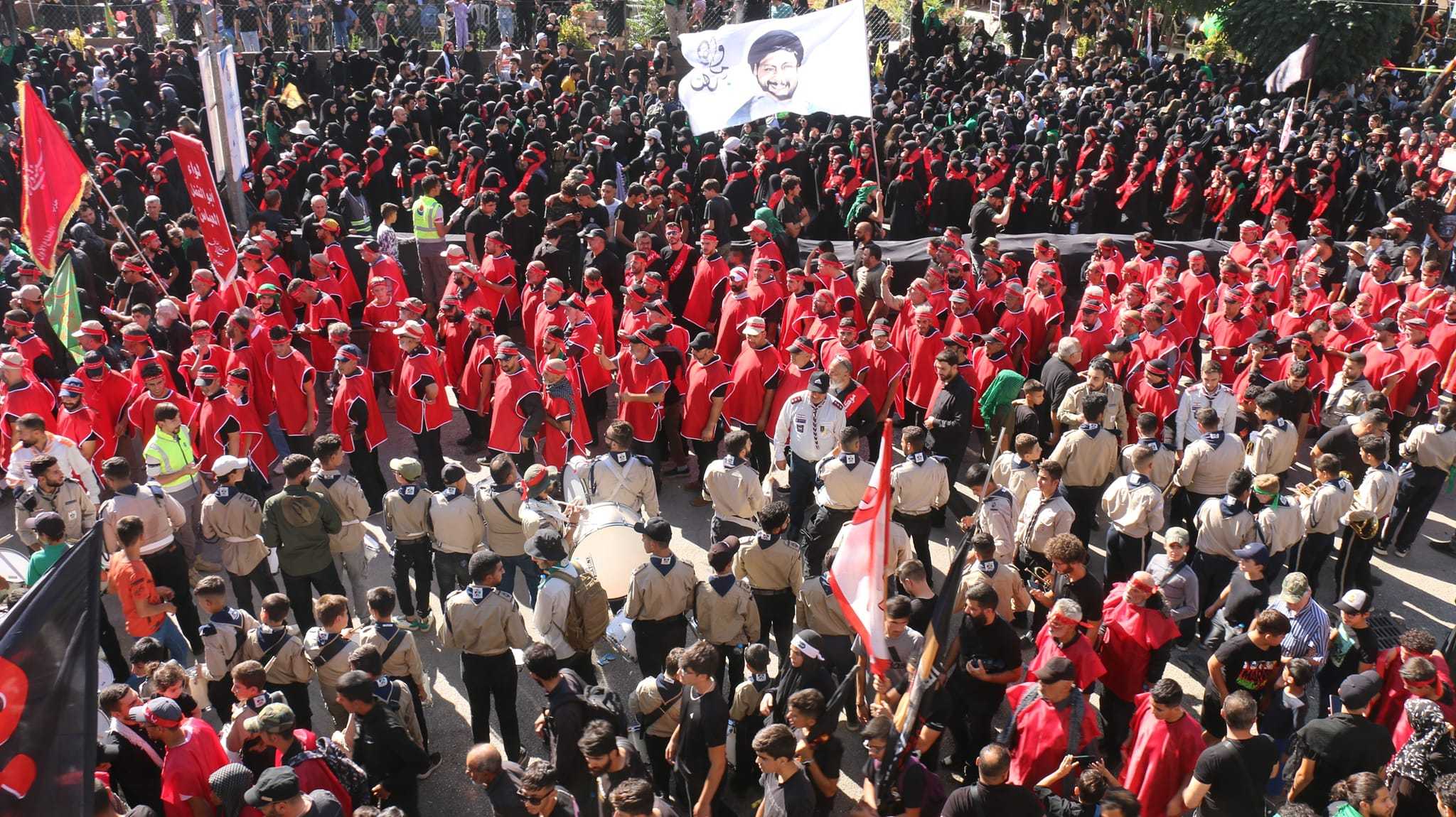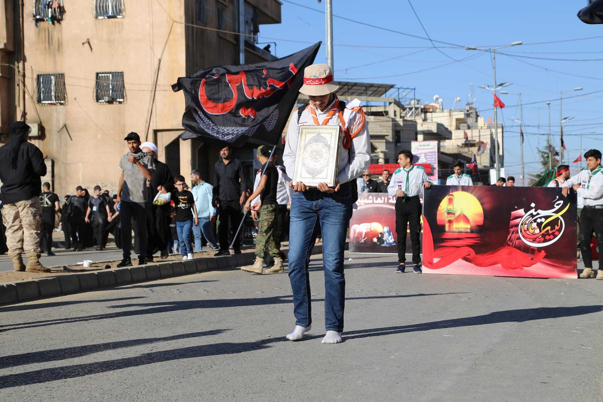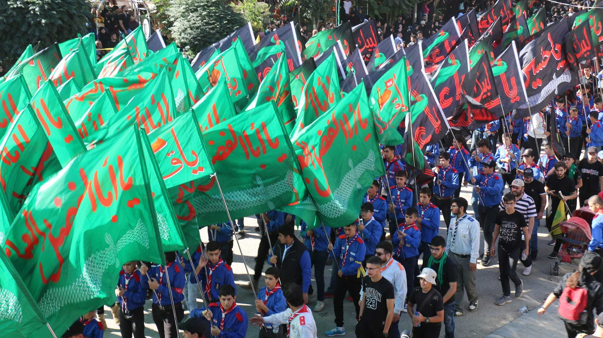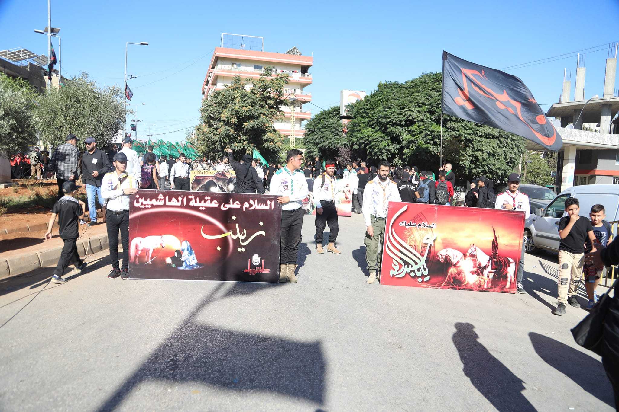 كما وفي كل عام تتجدد الاحزان وتفيض الدموع مواساة لابي الاحرار الامام الحسين عليه السلام ، انطلقت مسيرة ضخمة من دوار الجبلي باتجاه مقام السيدة خولة عليها السلام تقدمتها فرق كشافة الامام المهدي عجل الله فرجه الشريف فرقة القادة التي تحمل الصور العاشورائية والفرقة الموسيقية التابعة لكشافة الامام المهدي عج وفرق لعشائر الجوالة حملة الرايات وكان على طول الطريق الهتافات الحسينية ولبيك يا حسين .