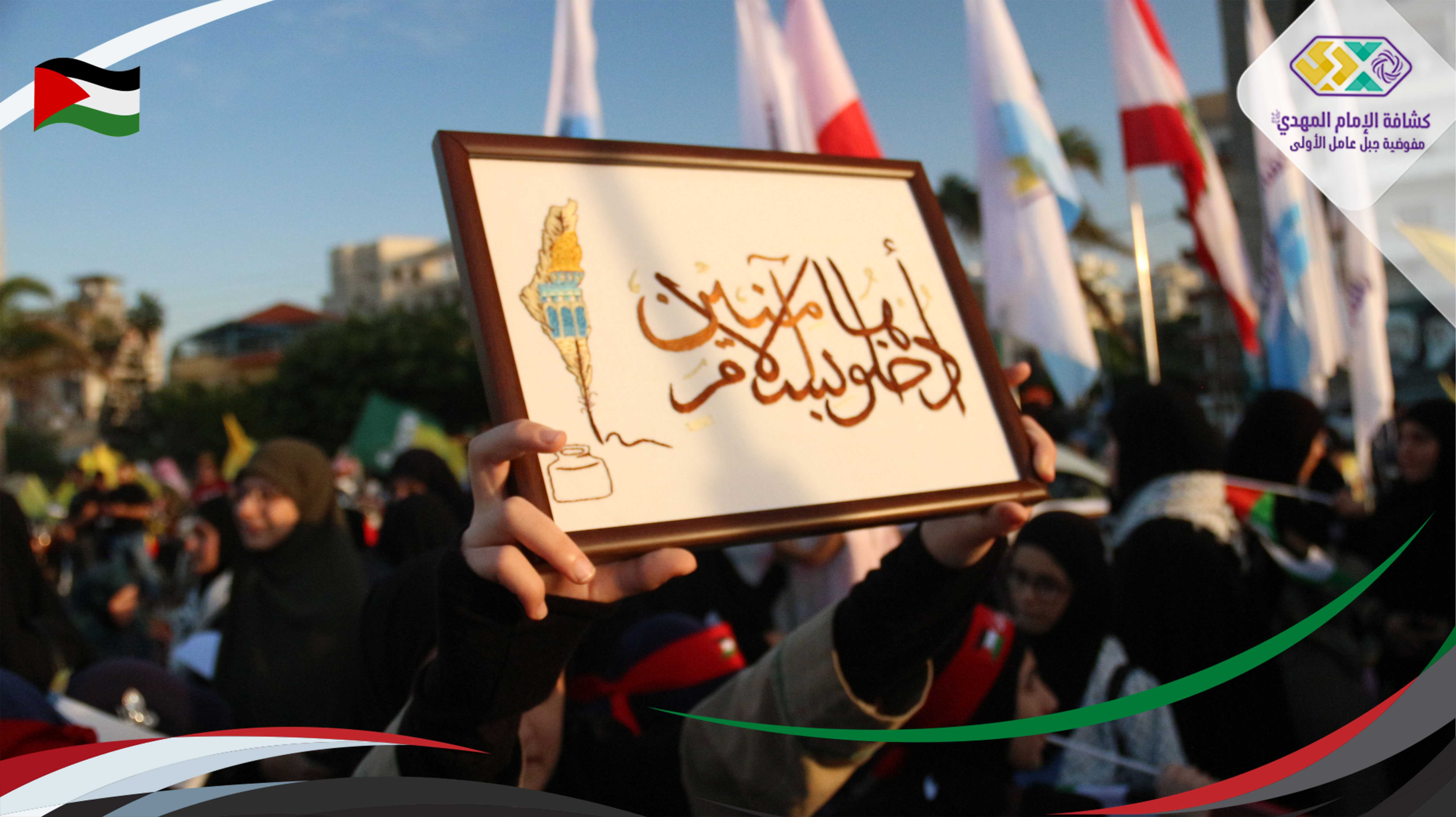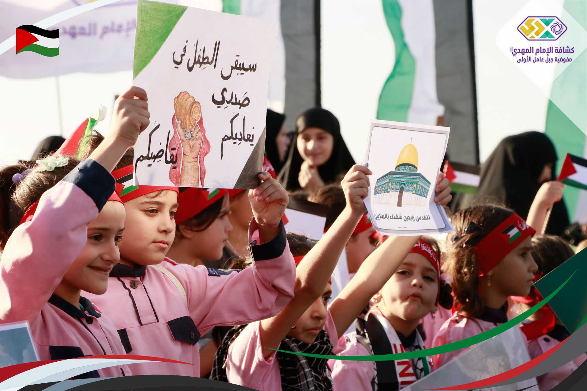 فلسطـ.ين وجهة الأحرار.. إليها تهفو القلوب، ومنها تستقي الأرواح عزتها، وتسمو بالنضال. تنديدًا بجرائم العدو الصهيوني في فلسطـ.ين وتضامنًا مع أطفال غـ.زة، نظمت #مفوضية_جبل_عامل_الأولى وقفة تضـ.امنية، جمعت أطفال لبنان إلى جانب إخوتهم من أبناء المخيمات الفلسطـ.ينية، ليشكلوا لوحة من الوحدة والصمود بمواجهة عدو الأمة.