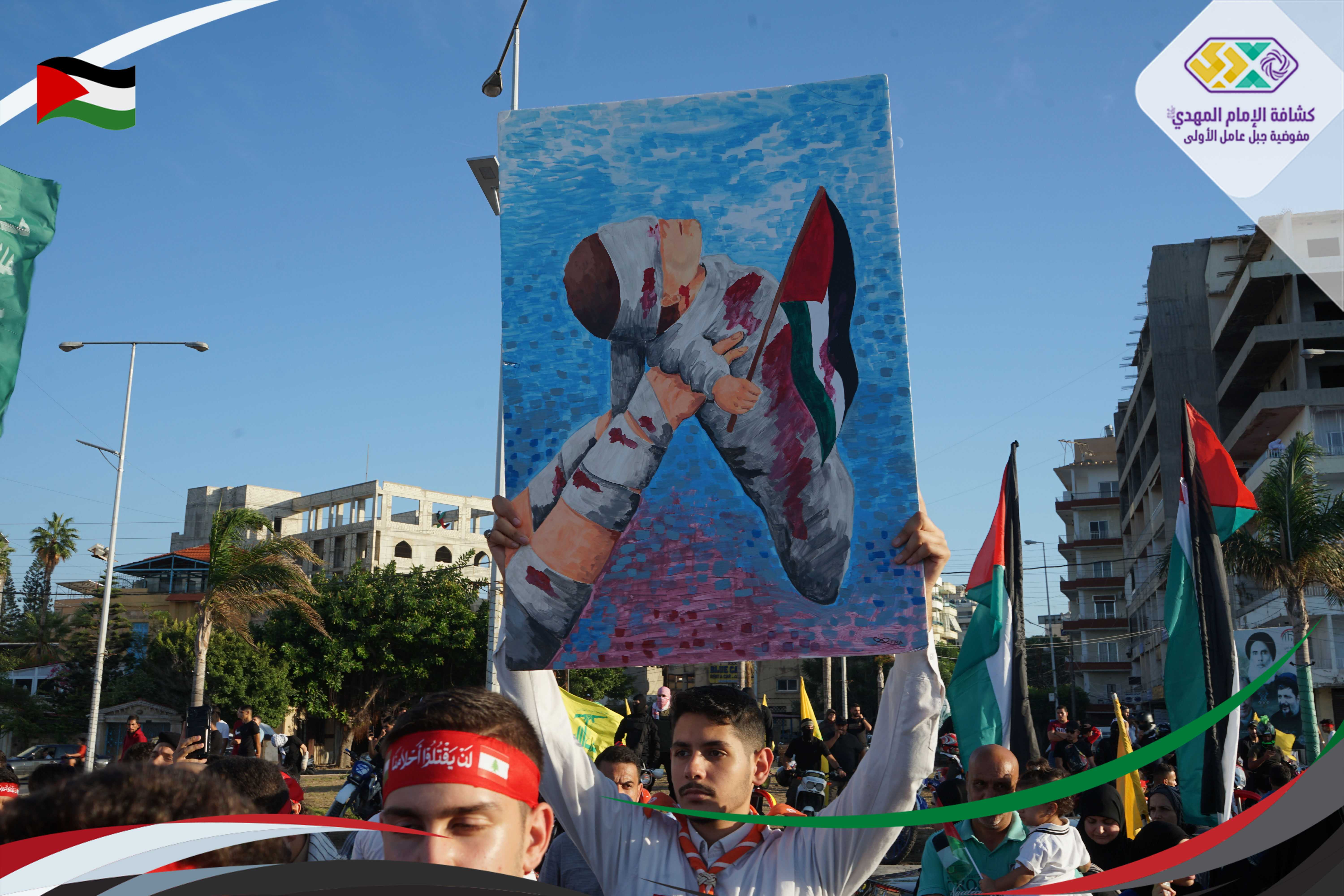 الوقفة التي أقيمت على دوار الشهـ.يد هيثم دبوق عند الكورنيش البحري لمدينة صور، شارك بها النائب الحاج حسين جشي و شخصيات كشفية، تربوية وحزبية، وقد رفع خلالها الكشفيون الرايات، ورددوا الصرخات والشعارات الداعمة لأطفال الصمود والمواجهة في غـ.زة. كما تضمنت الوقفة مرسمًا فنيًا، صاغت خلالها الكشفيات لوحات تحاكي المأساة التي يعيشها الأطفال هناك، وتحاكي كذلك صمودهم الاستثنائي. إلى ذلك، ألقى الفتية والفتيات الكشفيون والفلسطـ.نيون كلمات عبروا خلالها عن دعمهم لأطفال فلسطـ.ين والوقوف بجانبهم، ونددوا بجرائم هذا العدو الوحشية، والتي تطال الأبرياء في قطاع غـ.زة المحاصر . وخلال الوقفة، ندد النائب الحاج حسين جشي في كلمته بهمجية العـ.دوان الإسرائيلي، مؤكدا الدعم الكامل للفلسطيـ.نيين، و أن النصر آت لا محال.