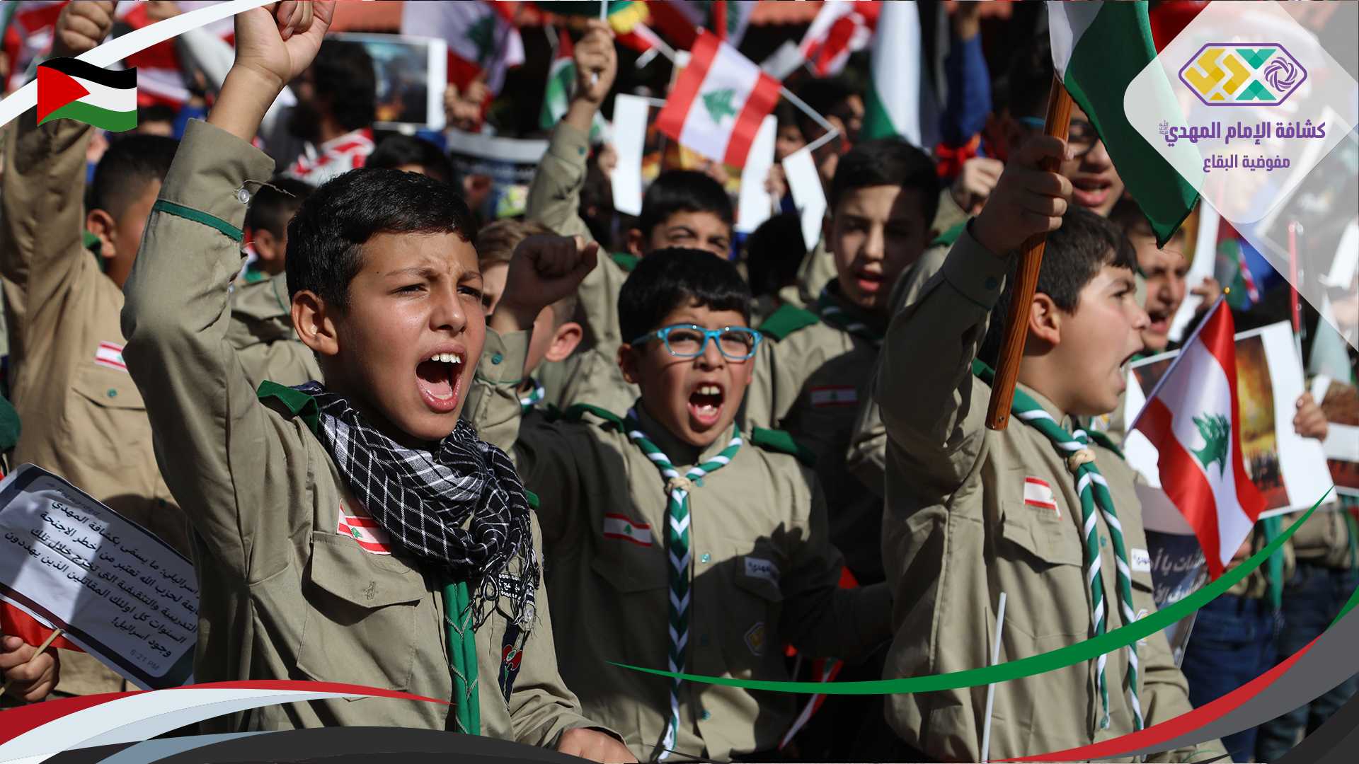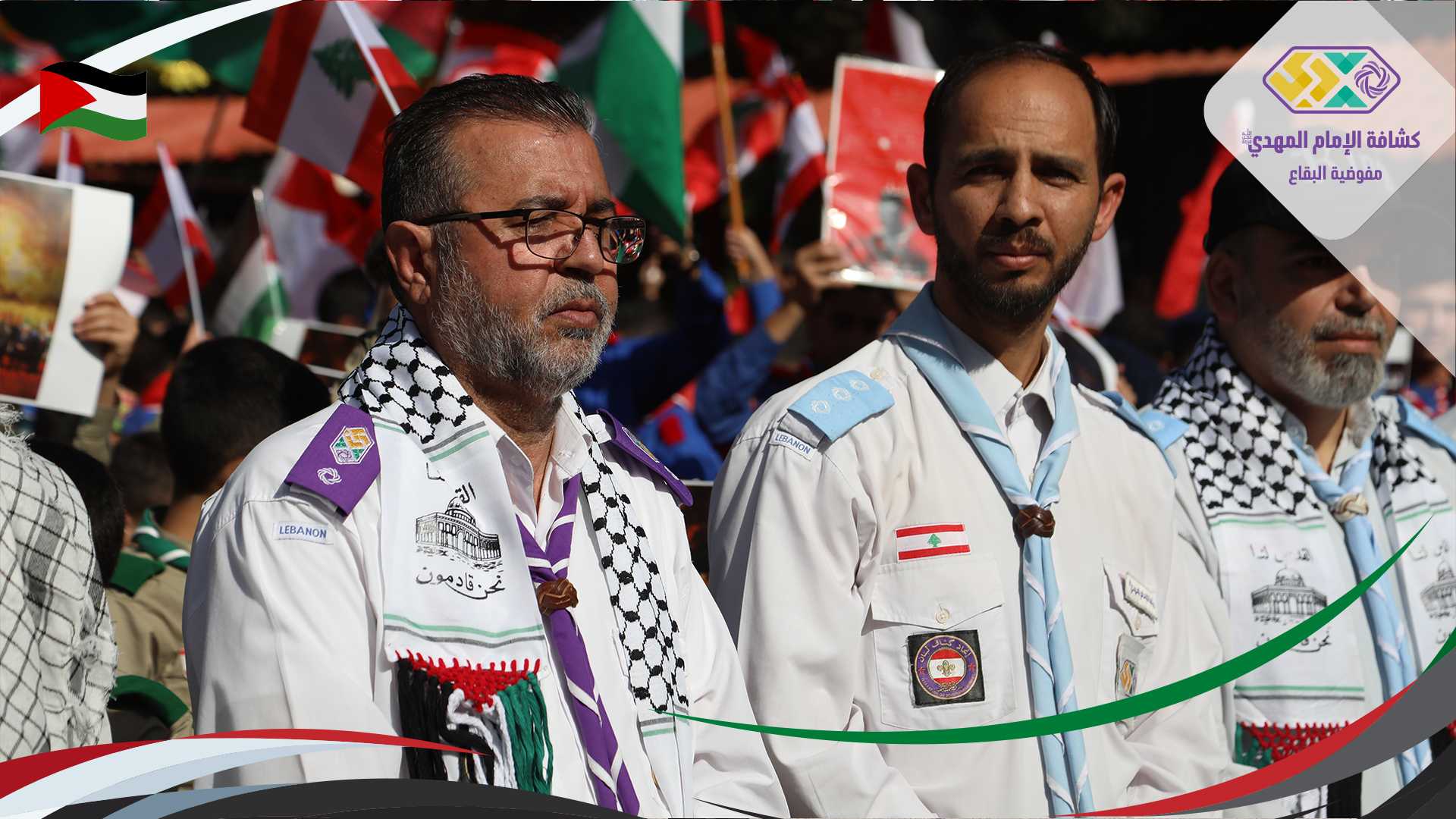نظمت مفوضية البقاع في كشافة الامام المهدي (عج) وقفة تضامنية مع اطفال غزة في مدينة بعلبك_راس العين عند مدخل مسجد راس الامام الحسين عليه السلام حيث شارك حشد كبير من العناصر الكشفيين والكشفيات بالاضافة الى حضور مفوض البقاع واعضاء المفوضية وقادة القطاعات الكشفية والقادة والقائدات والمسؤول الاعلامي الحاج مالك ياغي. وفعاليات المنطقة،وحضور عدد من الاعلاميين.