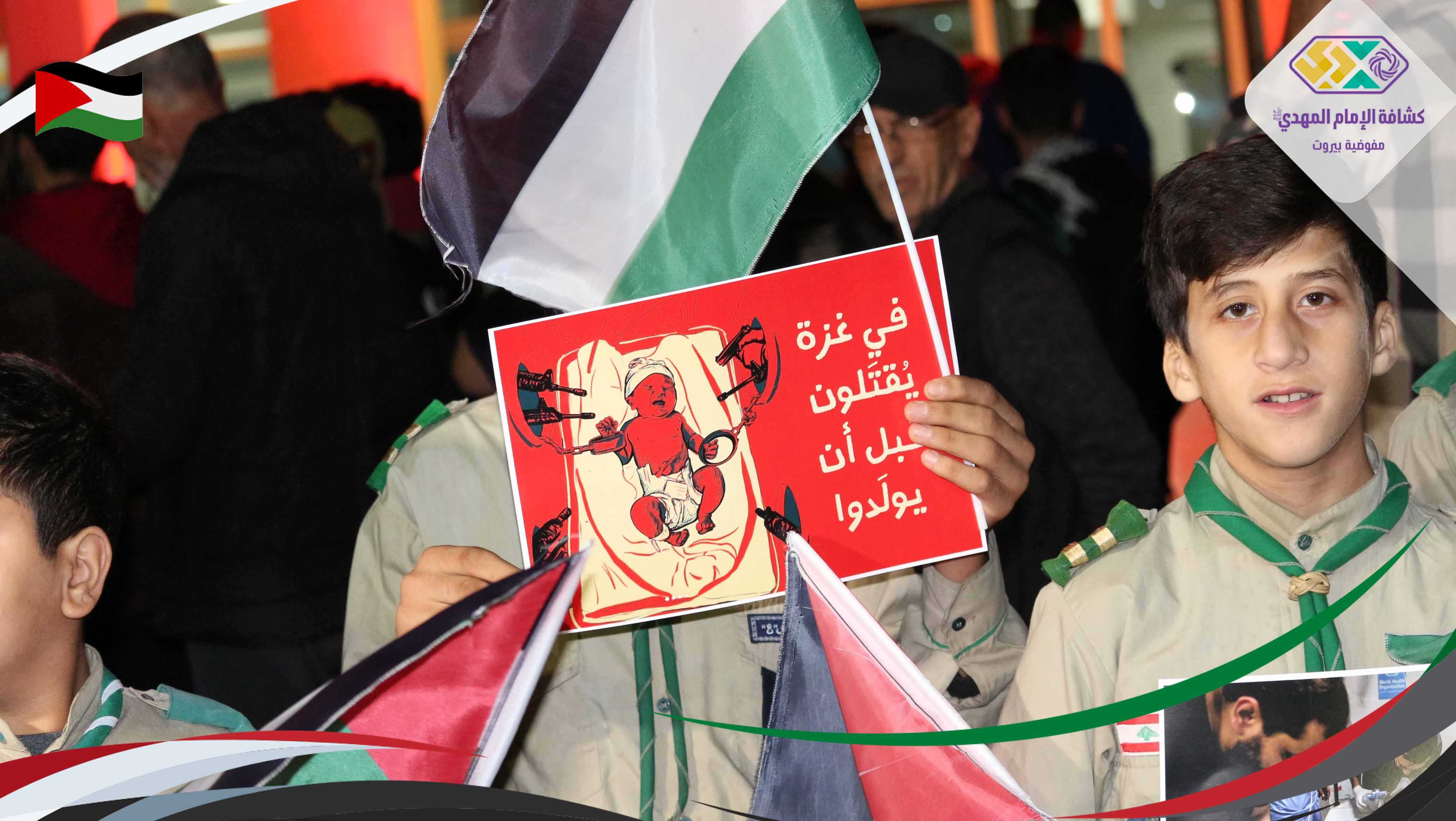 كي لا يصبح انتهاك الطفولة، قتلُ الأحلام، واغتيال الخدّج خبرًا عاديًّا. شارك القطاع الخامس - بيروت في الوقفة التضامنية دعمًا لصمود الشعب الفلسطيني