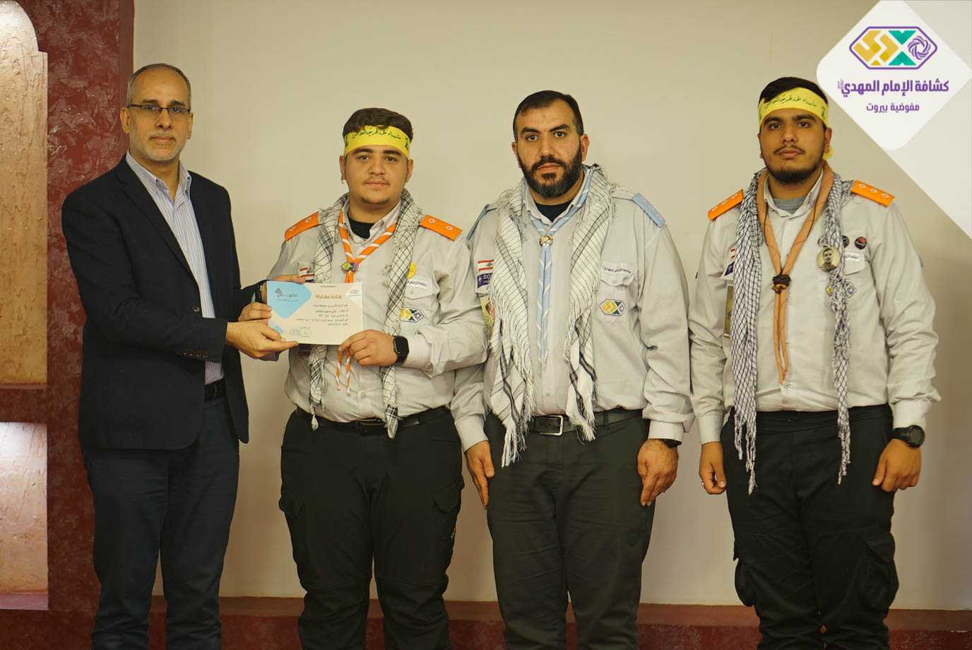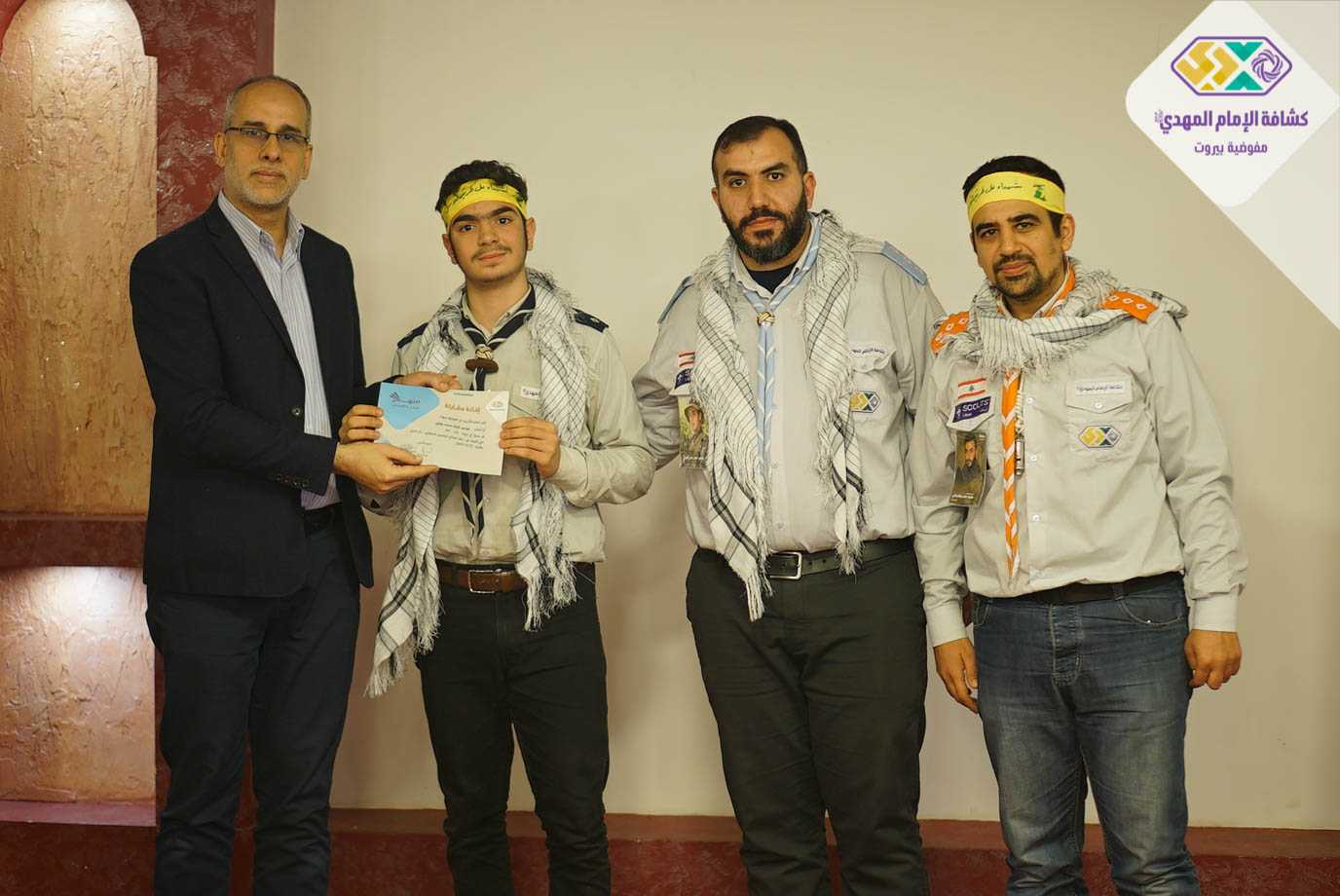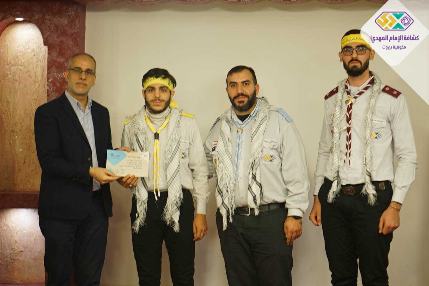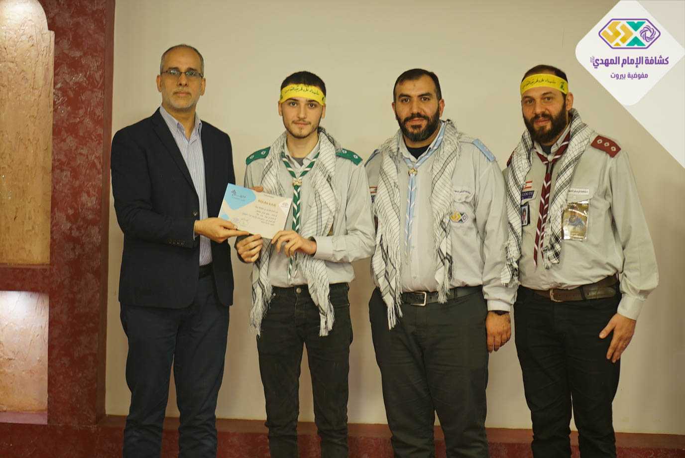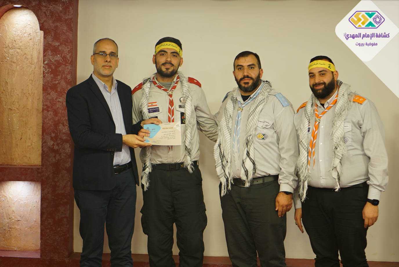 برعاية وحضور مسؤول منطقة بيروت السيد حسين فضل الله، اختتمت مفوضية بيروت دفعتها التدريبية على طريق القدس والتي ضمت عشر دورات بمشاركة ٣٠٠ قيادي ومتدرب ،حيث نفذ لهم مبيت كشفي في مدينة السيد عباس الموسوي- رياق وكان مسك الاختتام حفل مهيب استهلّ بقراءة القرآن الكريم والنشيدين وكلمة ترحيبية لقائد المخيم وتقرير مصور عن الدفعة وبعدها كلمة لراعي الحفل أكد على أهمية التدريب للقادة الكشفيين ونوه بجهود مفوضية بيروت واختتم الحفل بتوزيع الافادات على المجليين في العشر دورات حيث نالو زيارة تكريمية الى مقام السيدة زينب (ع) وتم سحب قرعة لزيارة الى المقامات المقدسة في العراق.