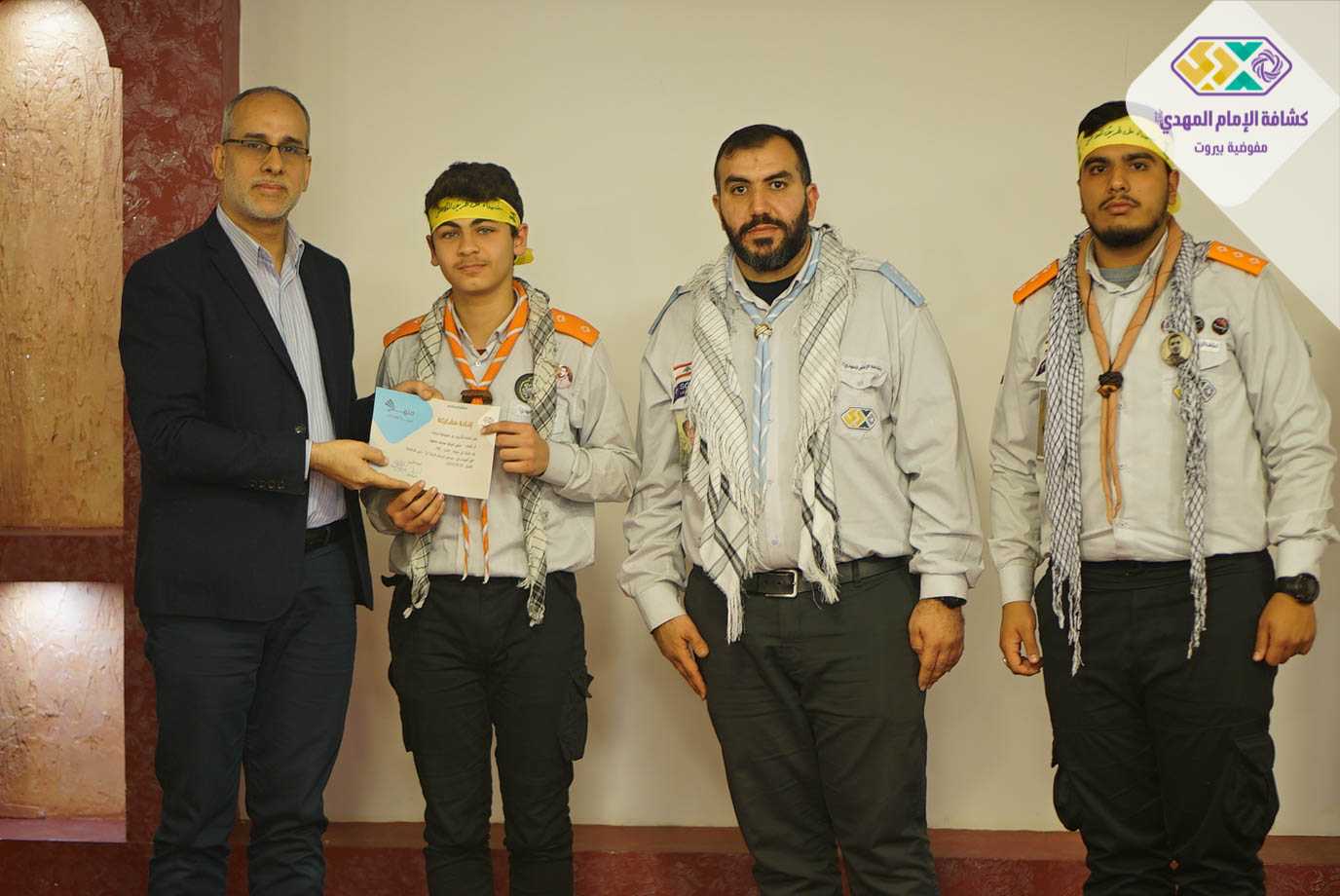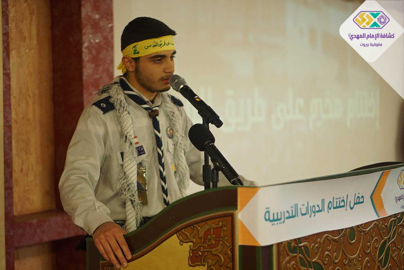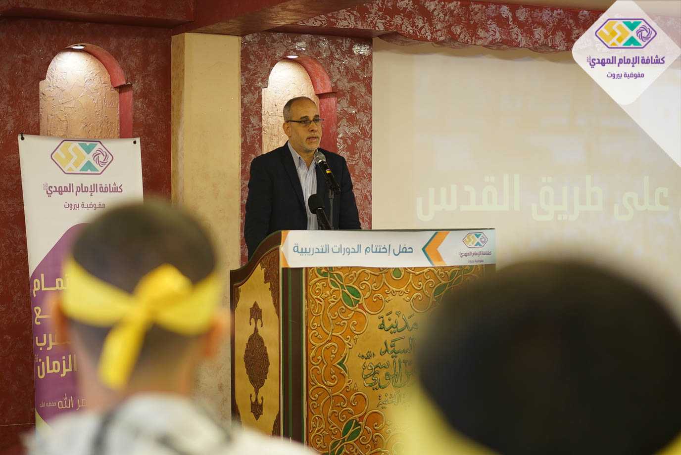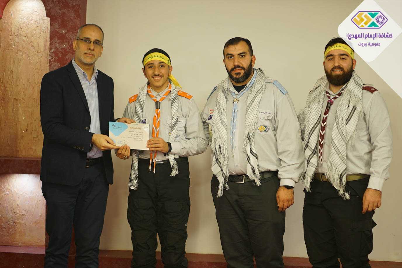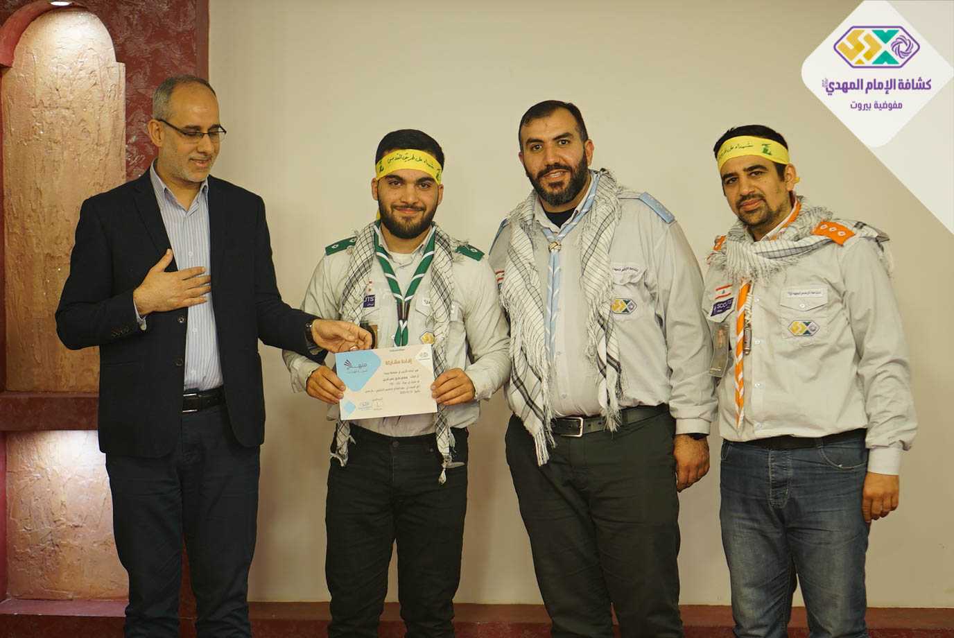 برعاية وحضور مسؤول منطقة بيروت السيد حسين فضل الله، اختتمت مفوضية بيروت دفعتها التدريبية على طريق القدس والتي ضمت عشر دورات بمشاركة ٣٠٠ قيادي ومتدرب ،حيث نفذ لهم مبيت كشفي في مدينة السيد عباس الموسوي- رياق وكان مسك الاختتام حفل مهيب استهلّ بقراءة القرآن الكريم والنشيدين وكلمة ترحيبية لقائد المخيم وتقرير مصور عن الدفعة وبعدها كلمة لراعي الحفل أكد على أهمية التدريب للقادة الكشفيين ونوه بجهود مفوضية بيروت واختتم الحفل بتوزيع الافادات على المجليين في العشر دورات حيث نالو زيارة تكريمية الى مقام السيدة زينب (ع) وتم سحب قرعة لزيارة الى المقامات المقدسة في العراق.