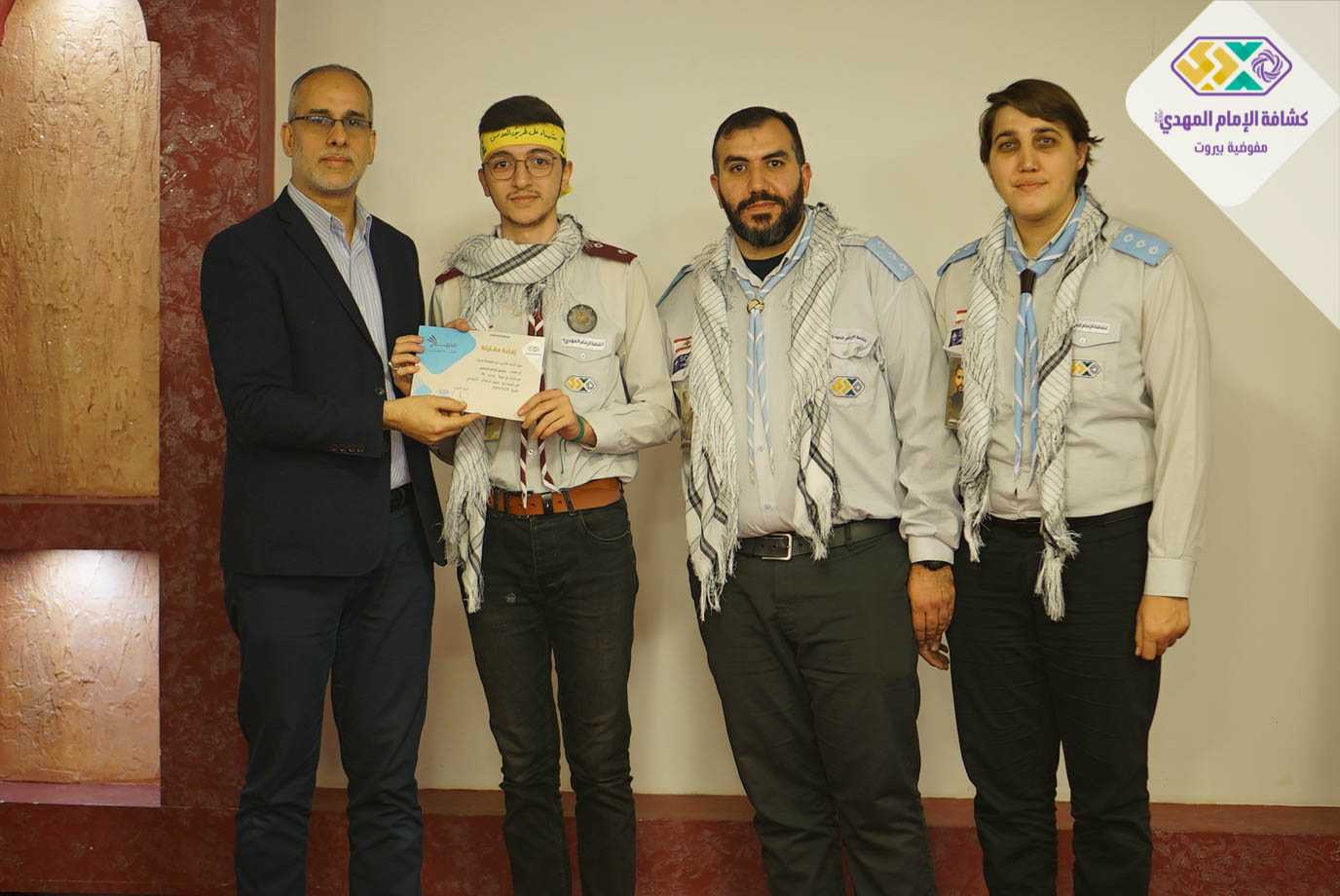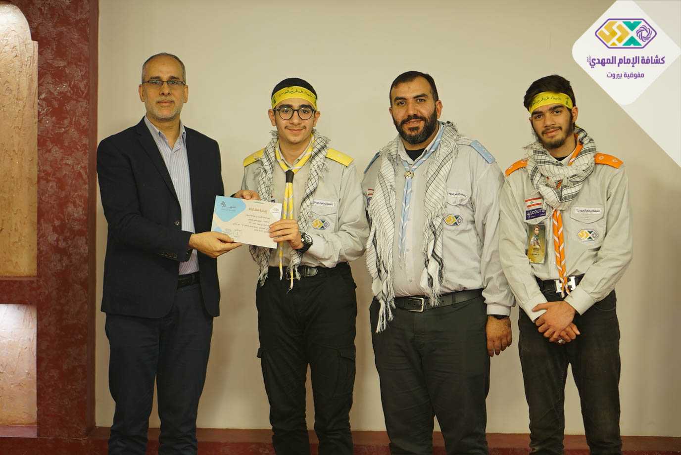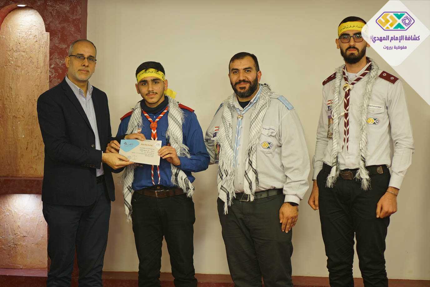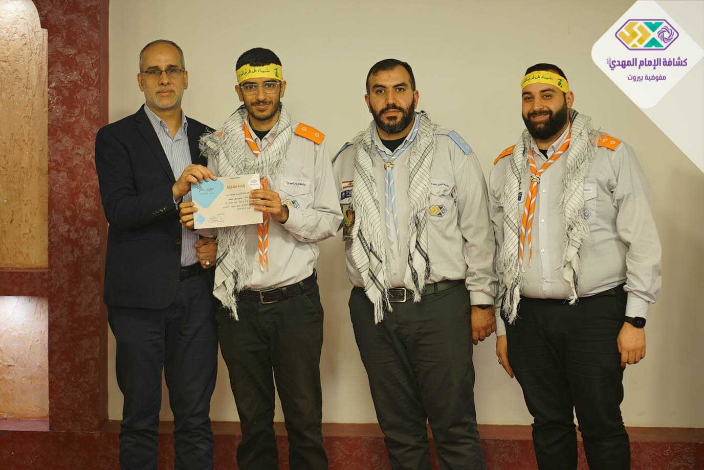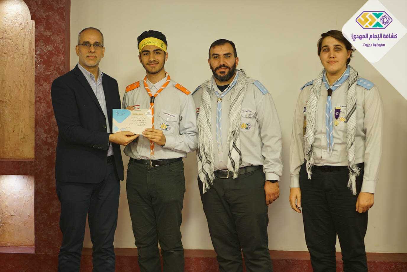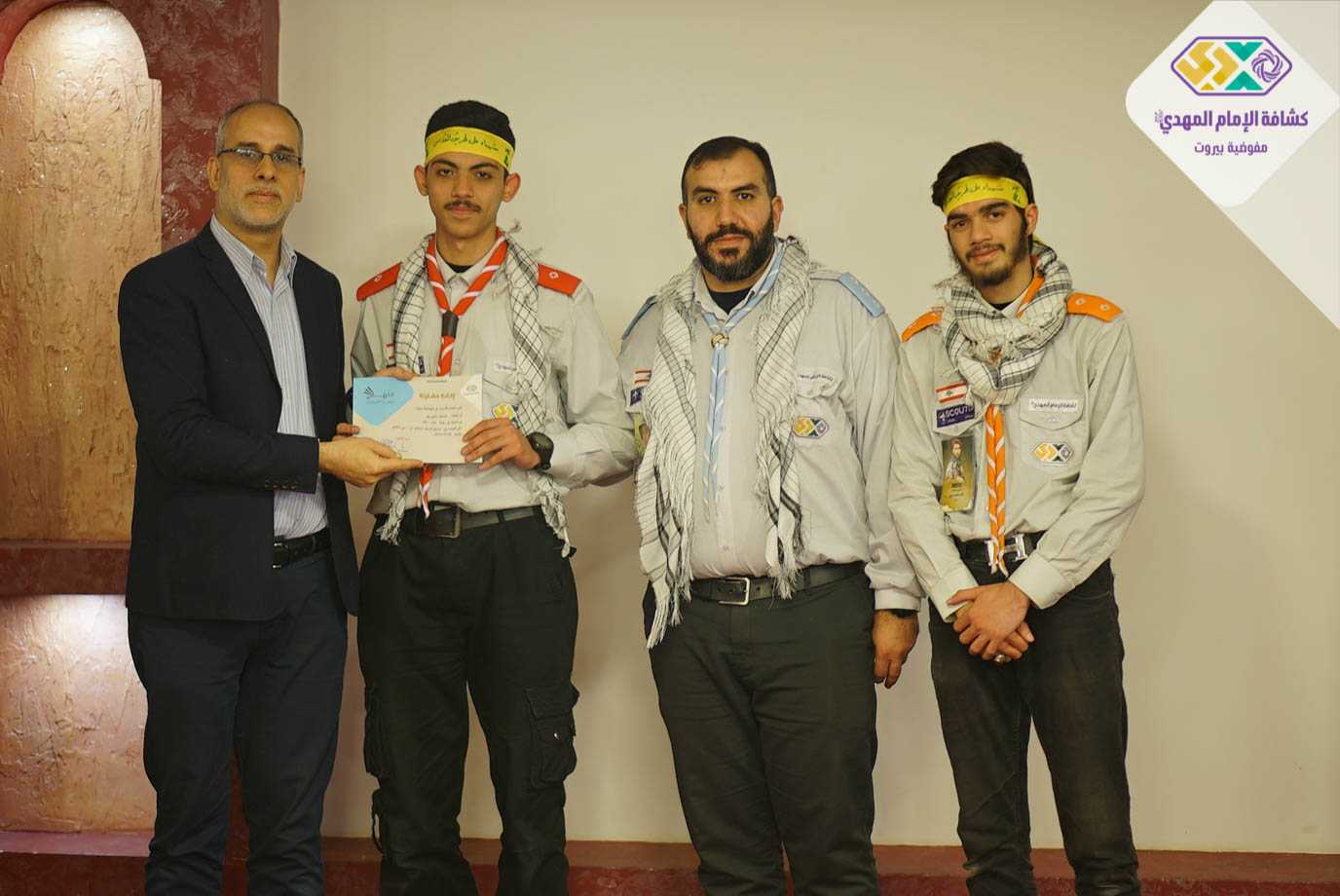 برعاية وحضور مسؤول منطقة بيروت السيد حسين فضل الله، اختتمت مفوضية بيروت دفعتها التدريبية على طريق القدس والتي ضمت عشر دورات بمشاركة ٣٠٠ قيادي ومتدرب ،حيث نفذ لهم مبيت كشفي في مدينة السيد عباس الموسوي- رياق وكان مسك الاختتام حفل مهيب استهلّ بقراءة القرآن الكريم والنشيدين وكلمة ترحيبية لقائد المخيم وتقرير مصور عن الدفعة وبعدها كلمة لراعي الحفل أكد على أهمية التدريب للقادة الكشفيين ونوه بجهود مفوضية بيروت واختتم الحفل بتوزيع الافادات على المجليين في العشر دورات حيث نالو زيارة تكريمية الى مقام السيدة زينب (ع) وتم سحب قرعة لزيارة الى المقامات المقدسة في العراق.