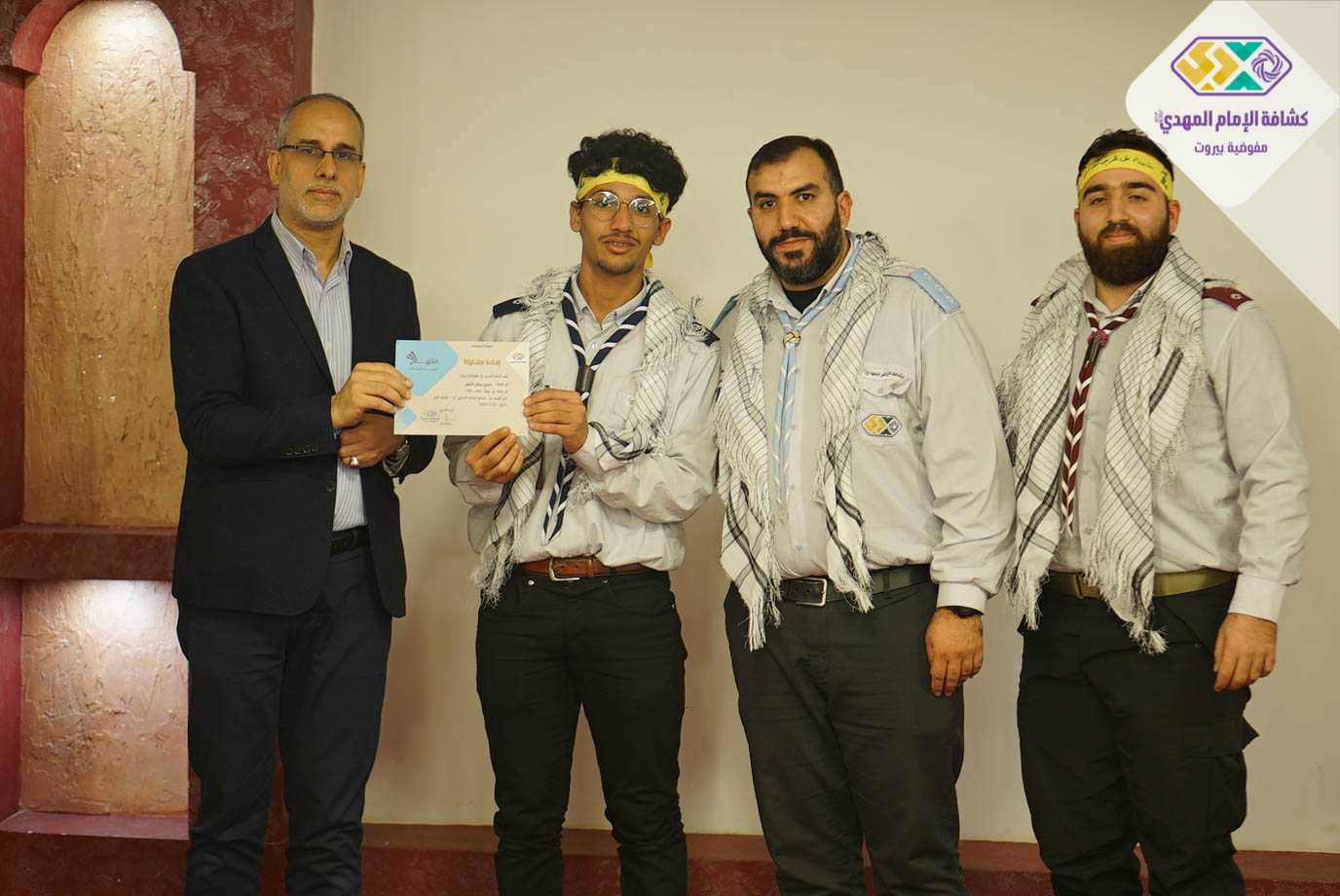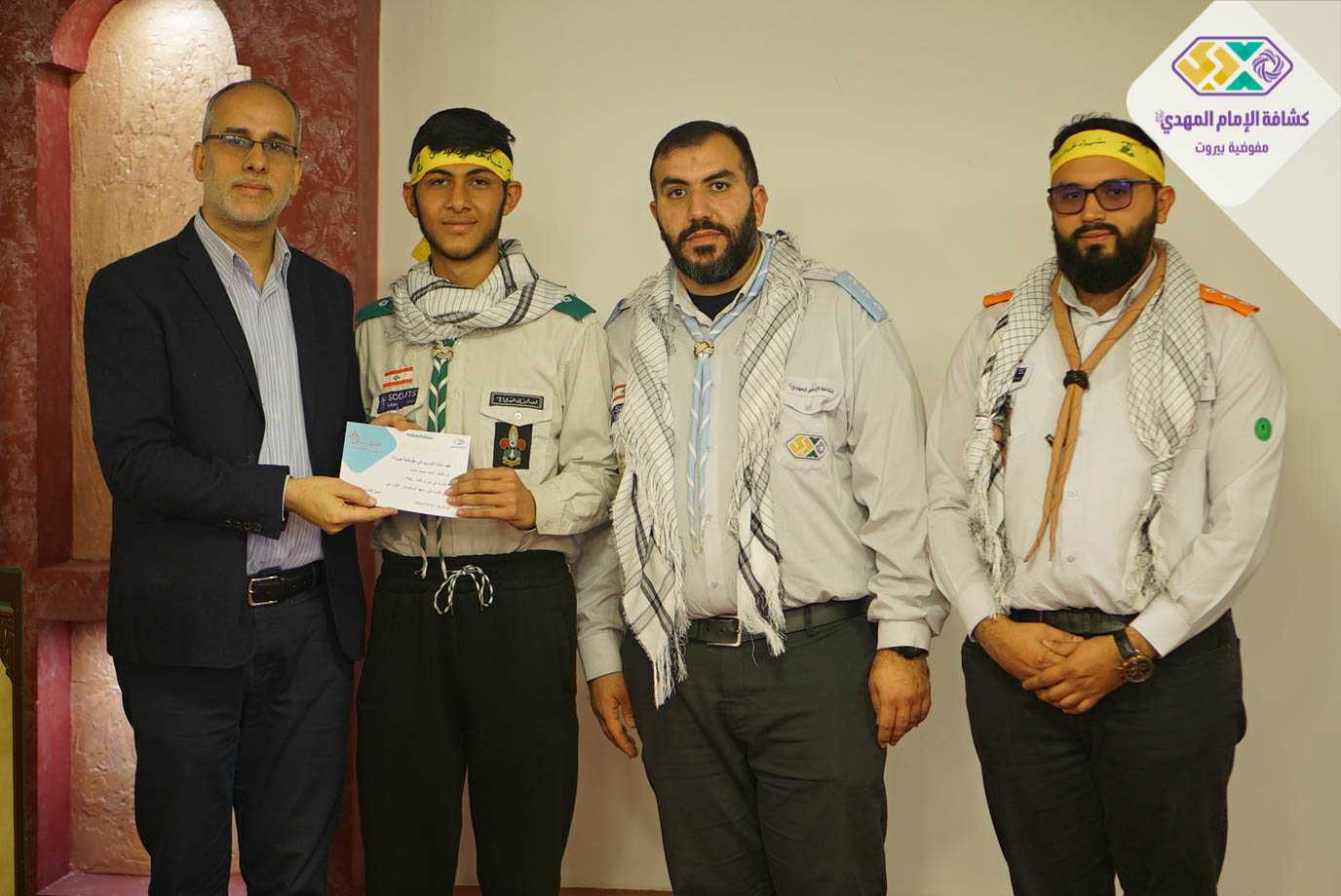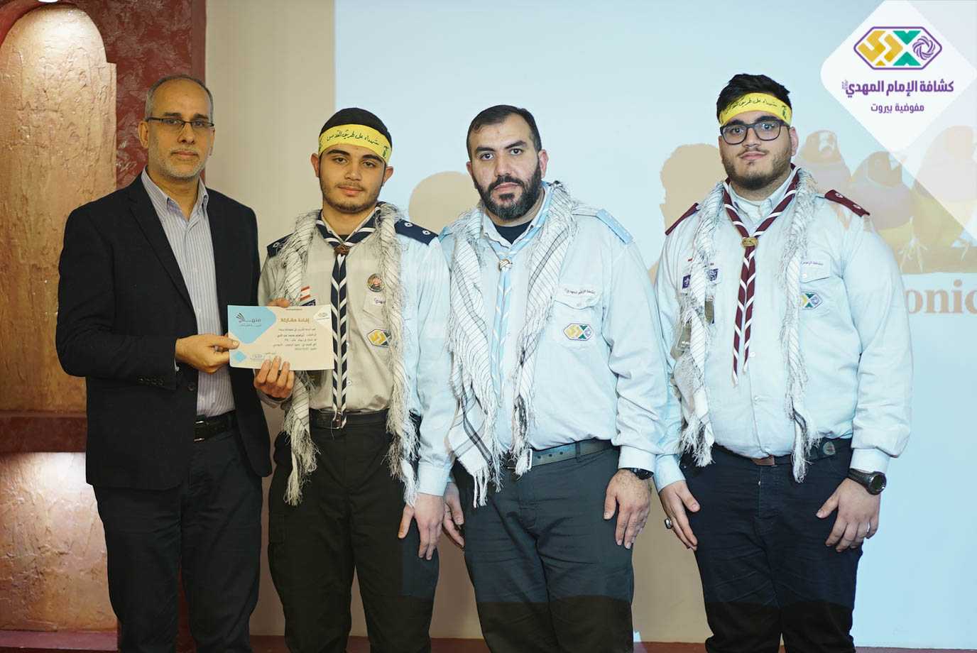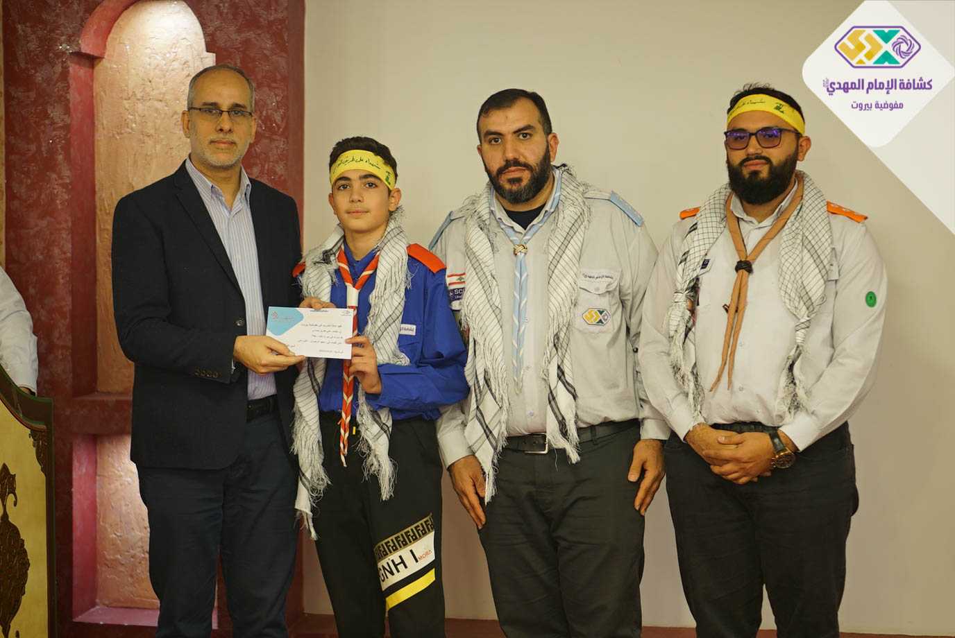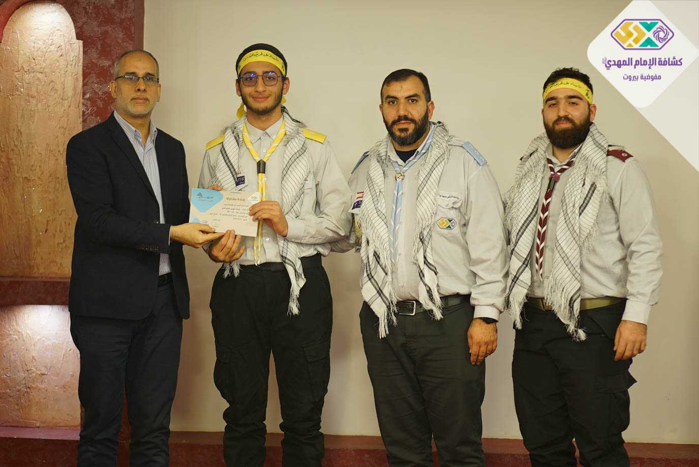برعاية وحضور مسؤول منطقة بيروت السيد حسين فضل الله، اختتمت مفوضية بيروت دفعتها التدريبية على طريق القدس والتي ضمت عشر دورات بمشاركة ٣٠٠ قيادي ومتدرب ،حيث نفذ لهم مبيت كشفي في مدينة السيد عباس الموسوي- رياق وكان مسك الاختتام حفل مهيب استهلّ بقراءة القرآن الكريم والنشيدين وكلمة ترحيبية لقائد المخيم وتقرير مصور عن الدفعة وبعدها كلمة لراعي الحفل أكد على أهمية التدريب للقادة الكشفيين ونوه بجهود مفوضية بيروت واختتم الحفل بتوزيع الافادات على المجليين في العشر دورات حيث نالو زيارة تكريمية الى مقام السيدة زينب (ع) وتم سحب قرعة لزيارة الى المقامات المقدسة في العراق.
