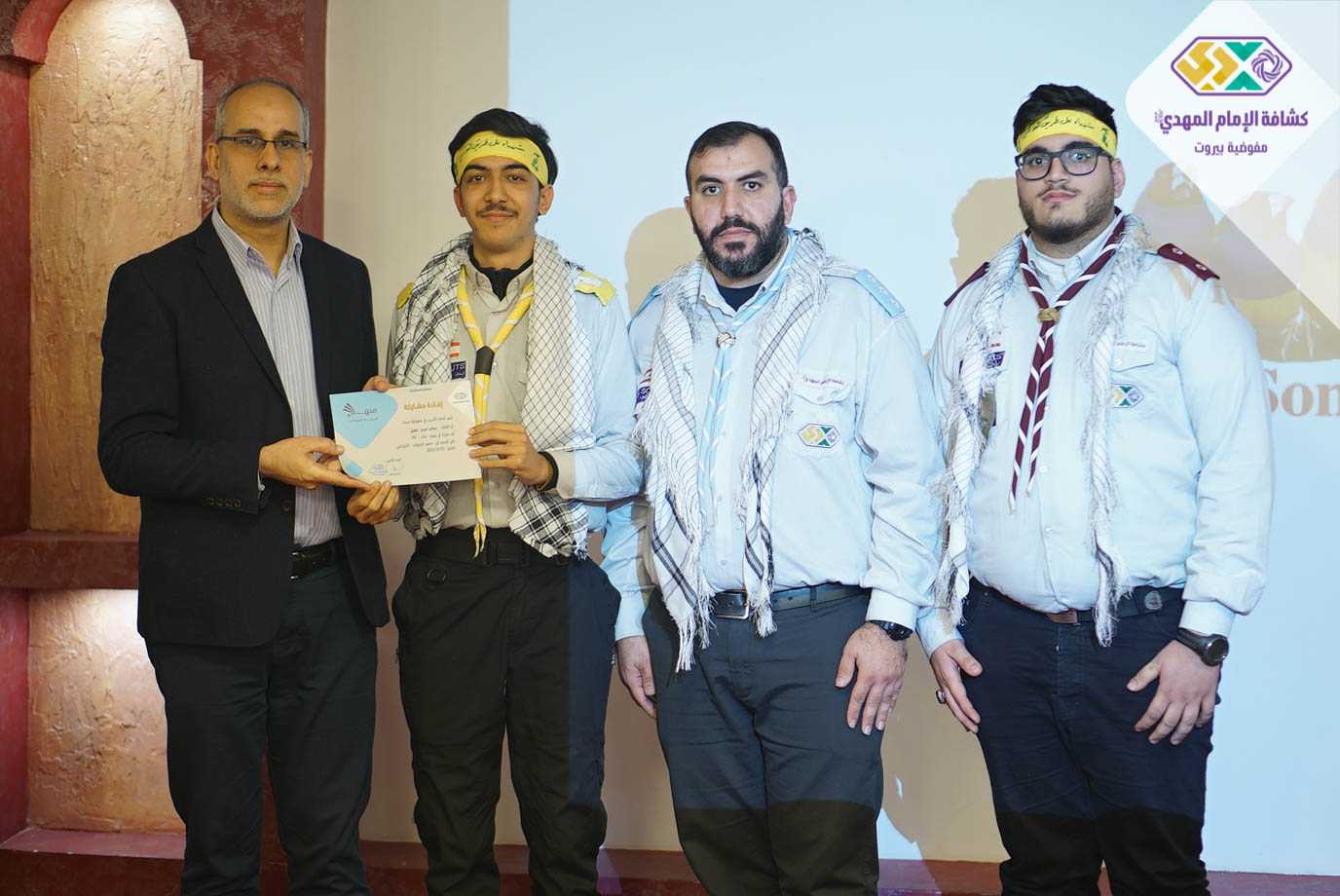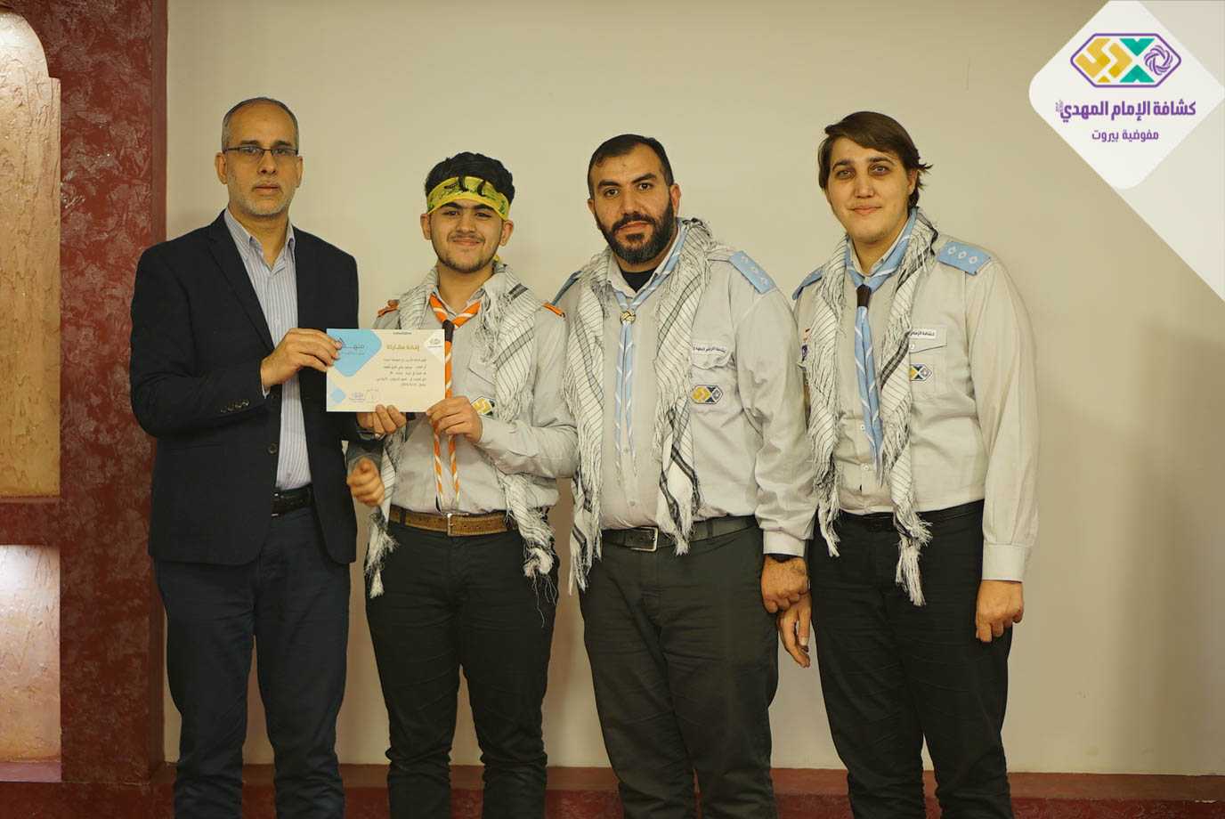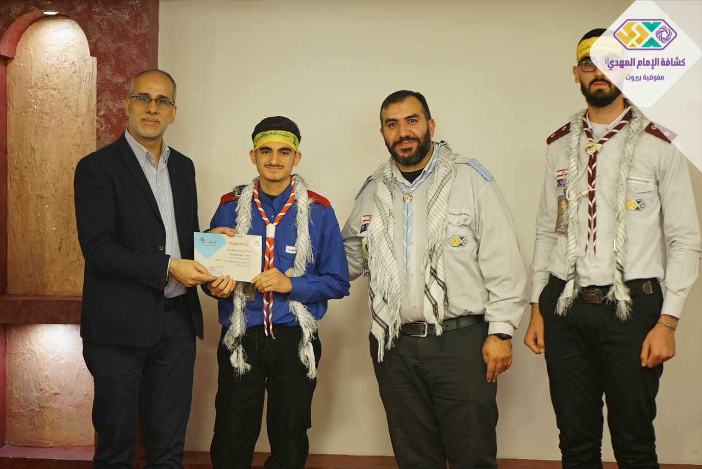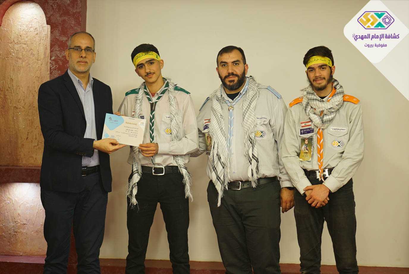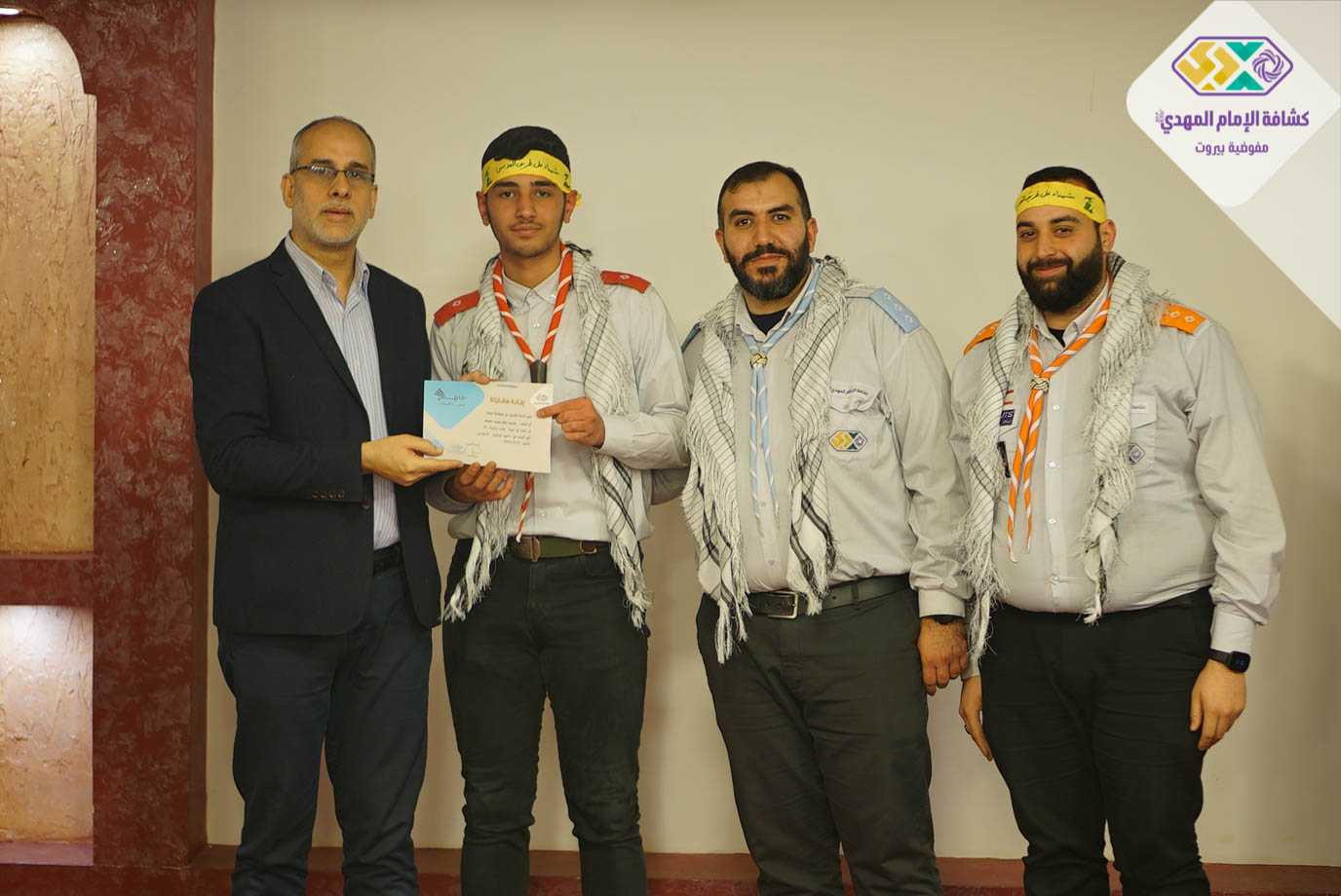 برعاية وحضور مسؤول منطقة بيروت السيد حسين فضل الله، اختتمت مفوضية بيروت دفعتها التدريبية على طريق القدس والتي ضمت عشر دورات بمشاركة ٣٠٠ قيادي ومتدرب ،حيث نفذ لهم مبيت كشفي في مدينة السيد عباس الموسوي- رياق وكان مسك الاختتام حفل مهيب استهلّ بقراءة القرآن الكريم والنشيدين وكلمة ترحيبية لقائد المخيم وتقرير مصور عن الدفعة وبعدها كلمة لراعي الحفل أكد على أهمية التدريب للقادة الكشفيين ونوه بجهود مفوضية بيروت واختتم الحفل بتوزيع الافادات على المجليين في العشر دورات حيث نالو زيارة تكريمية الى مقام السيدة زينب (ع) وتم سحب قرعة لزيارة الى المقامات المقدسة في العراق.