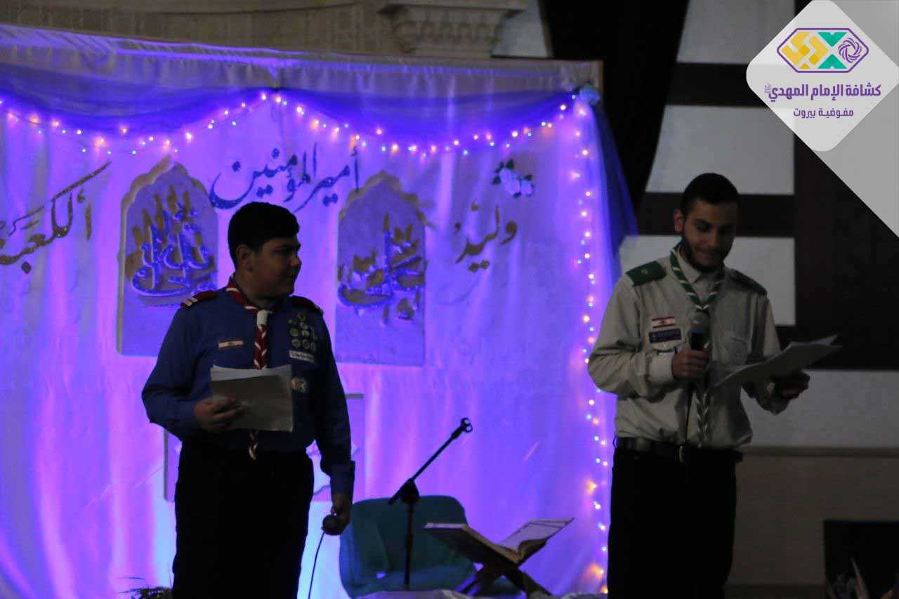 بمناسبة ولادة أمير المؤمنين الإمام علي (ع) أقام فوج الإمام الكاظم(ع)_حي الجامعة بالتعاون مع شعبة الجامعة إحتفالاً تخلله تلاوة للقرآن الكريم وقصيدة ومولد من وحي المناسبة بمشاركة 256 كشفي وعموم.