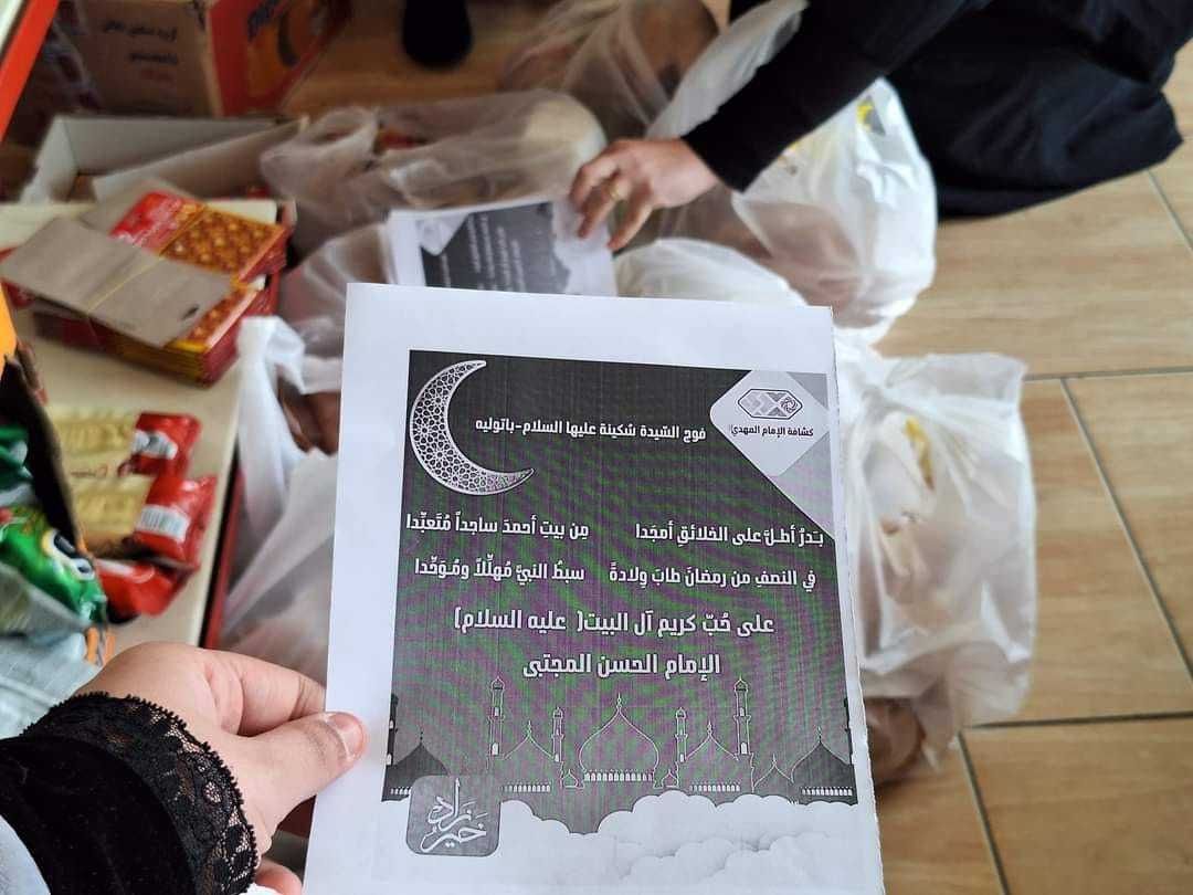 في أجواء الولادة المُباركة لكريم آل محمد الإمام الحسن (عليه السلام)، وزع فوج السّيدة سُكينة (عليها السلام)/باتوليه حصصاً غذائية على مجموعة من الكشفيات.