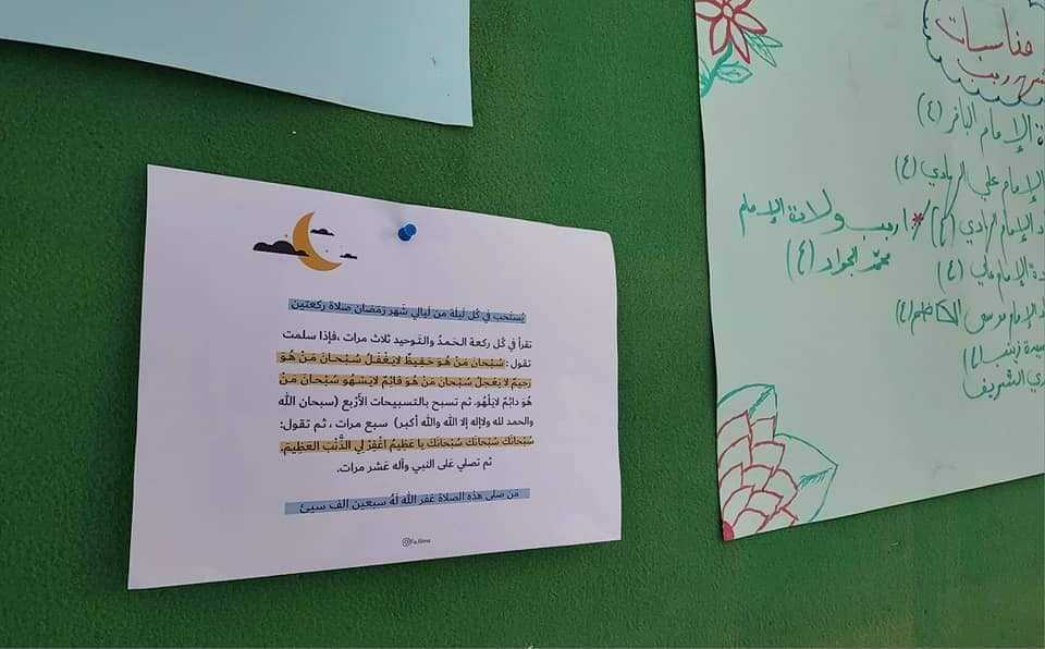 تعرفت فرقة المرشدات في فوج السيدة المعصومة (عليها السلام)/مفرق العباسية، على فضل شهر رمضان المبارك، و على بعض الأعمال العبادية في هذا الشهر، و اختتمت الورشة بتزيين المصلى.