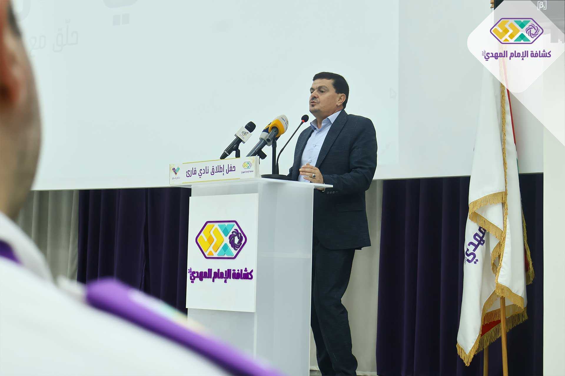 بعدها ألقى راعي الحفل رئيس كشافة الإمام المهدي (عجل الله فرجه الشريف) الشيخ نزيه فياض كلمةً عبر فيها عن ثناء الجمعيّة واحتفائها بكل المبادرات الطيبة التي تساهم في بناء الانسان وهدايته إلى ربه ومنها نادي قارئ، هذه المبادرة التي تنضم إلى برامج كشافة الإمام المهدي (عجل الله فرجه) لتشجيع القراءة والمعرفة، كما وأثنى فيها على جهود الأخوة والأخوات إداريي النادي، وفي الختام كرّمهم بدروع تقديرية.
