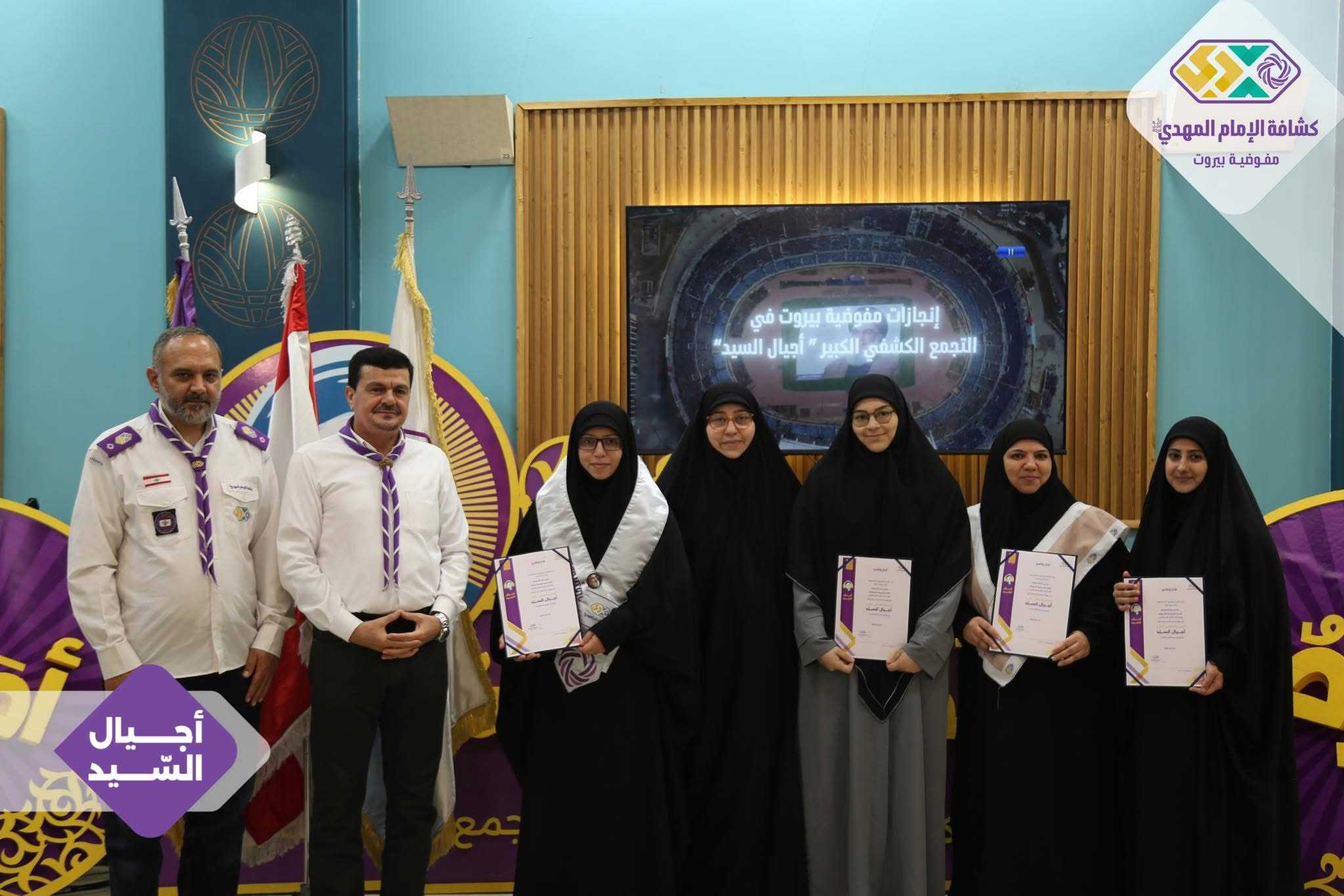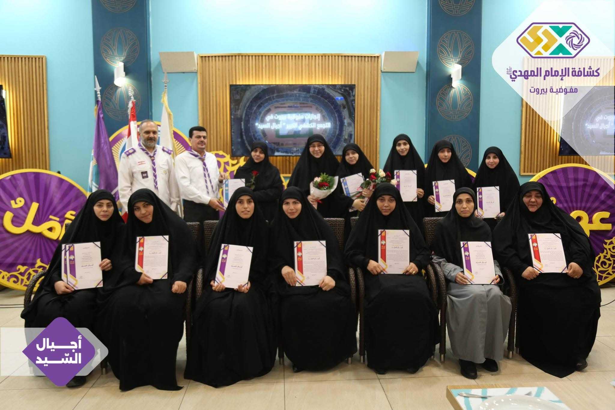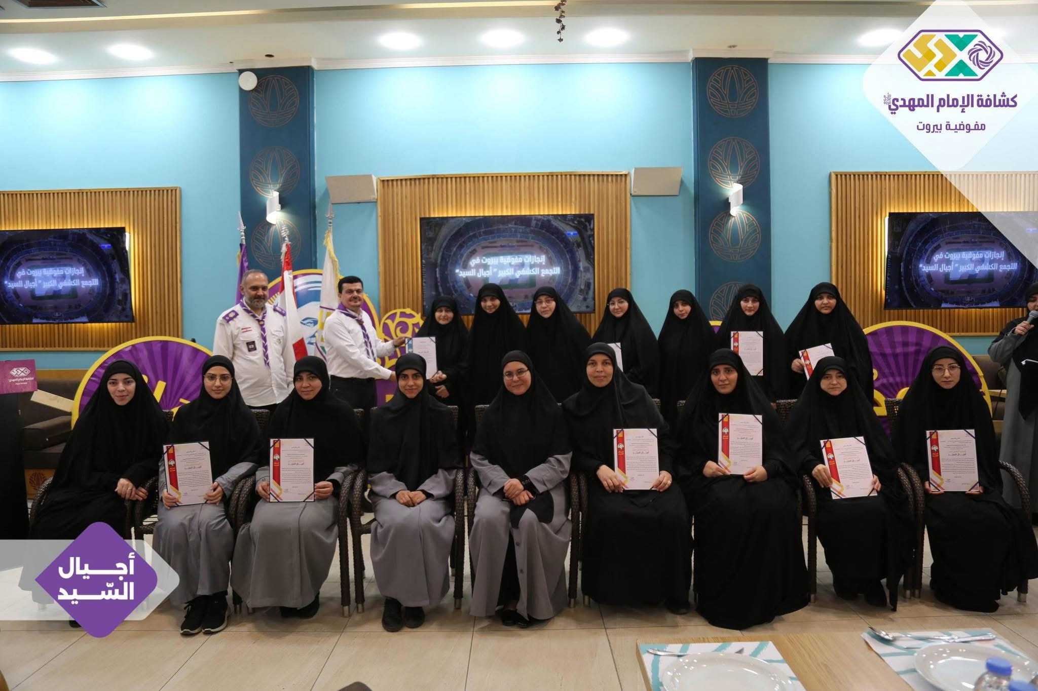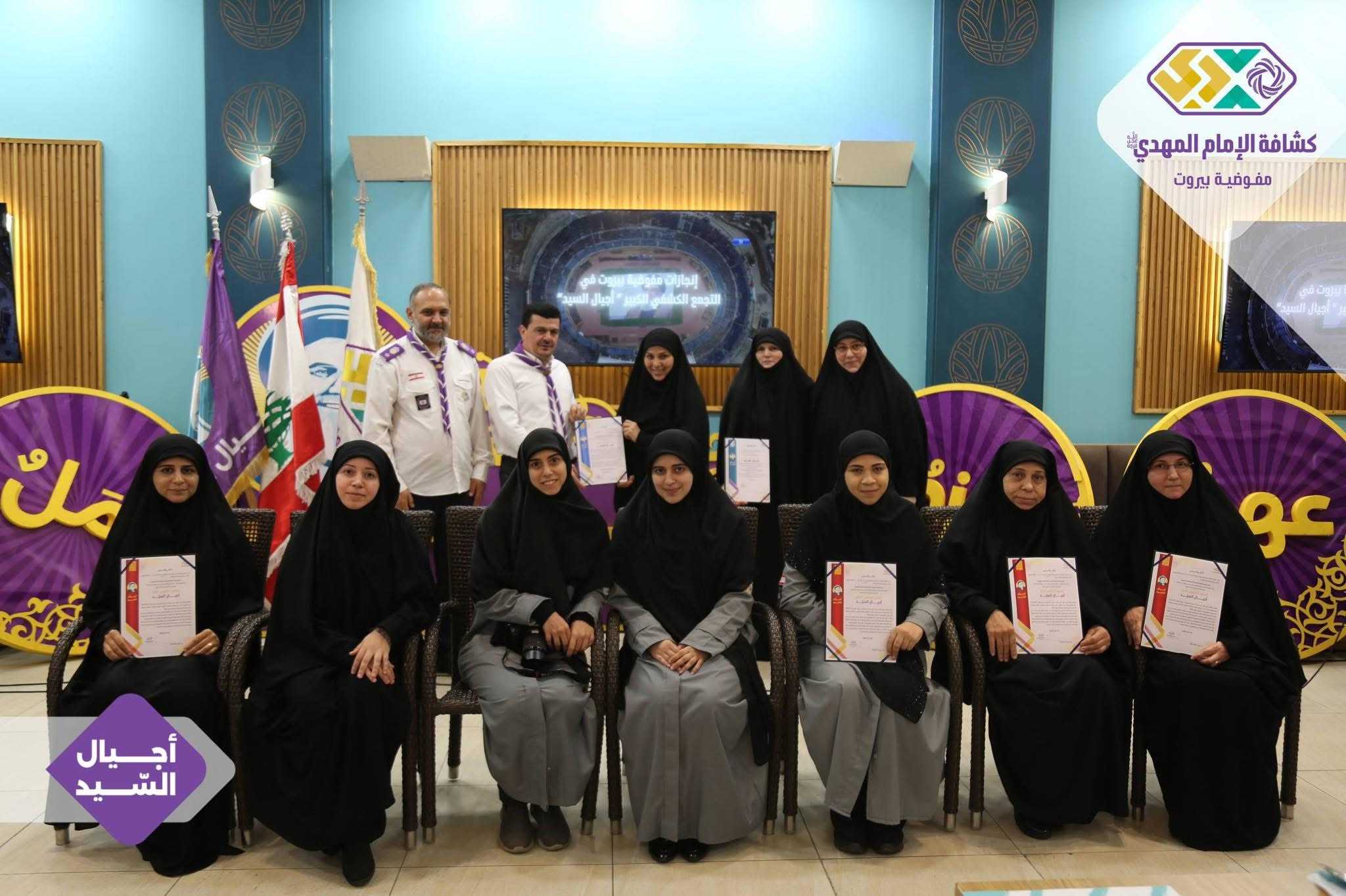 برعايةٍ وحضور رئيس الجمعيّة الشّيخ نزيه فياض، أقامت مفوضيّة بيروت لقاءً تكريميًّا خاصًّا بالتّجمّع الكشفيّ الكبير “أجيال السّيد”، وذلك في قاعة مطعم الصّنوبرة في المشرفيّة، بحضور مسؤولة الهيئات النّسائية في منطقة بيروت، ومسؤولات الهيئات النّسائية في القطاعات، فضلًا عن أعضاء مفوضيّة مرشدات بيروت، وعميدات الأفواج، وأعضاء اللّجان العاملة في التّجمّع الكشفيّ الكبير.