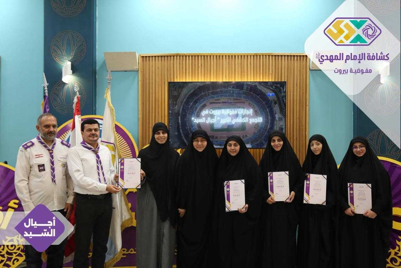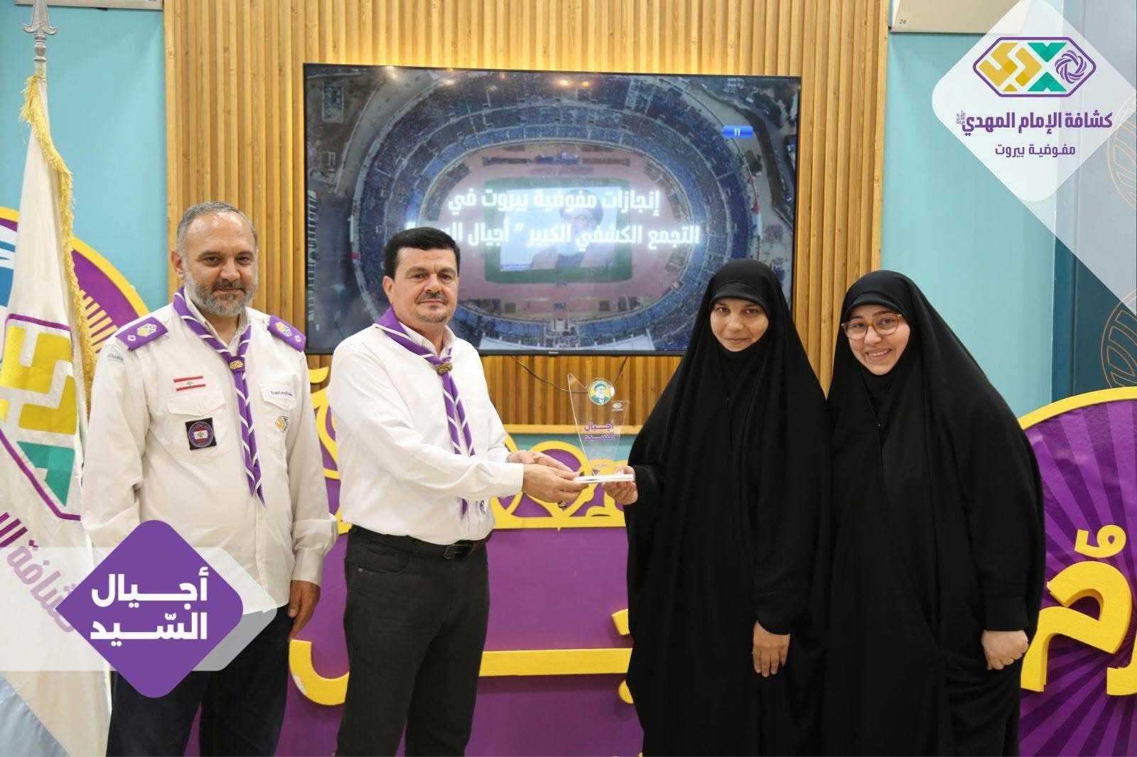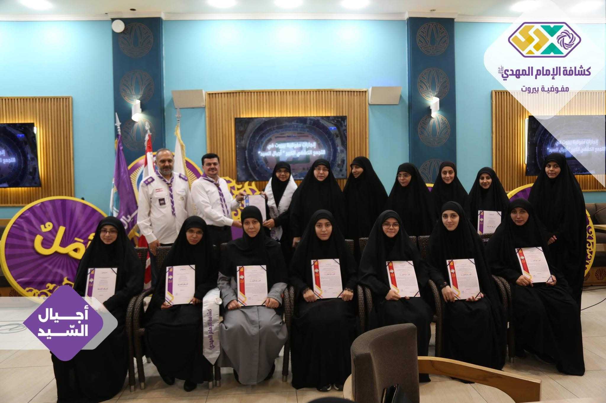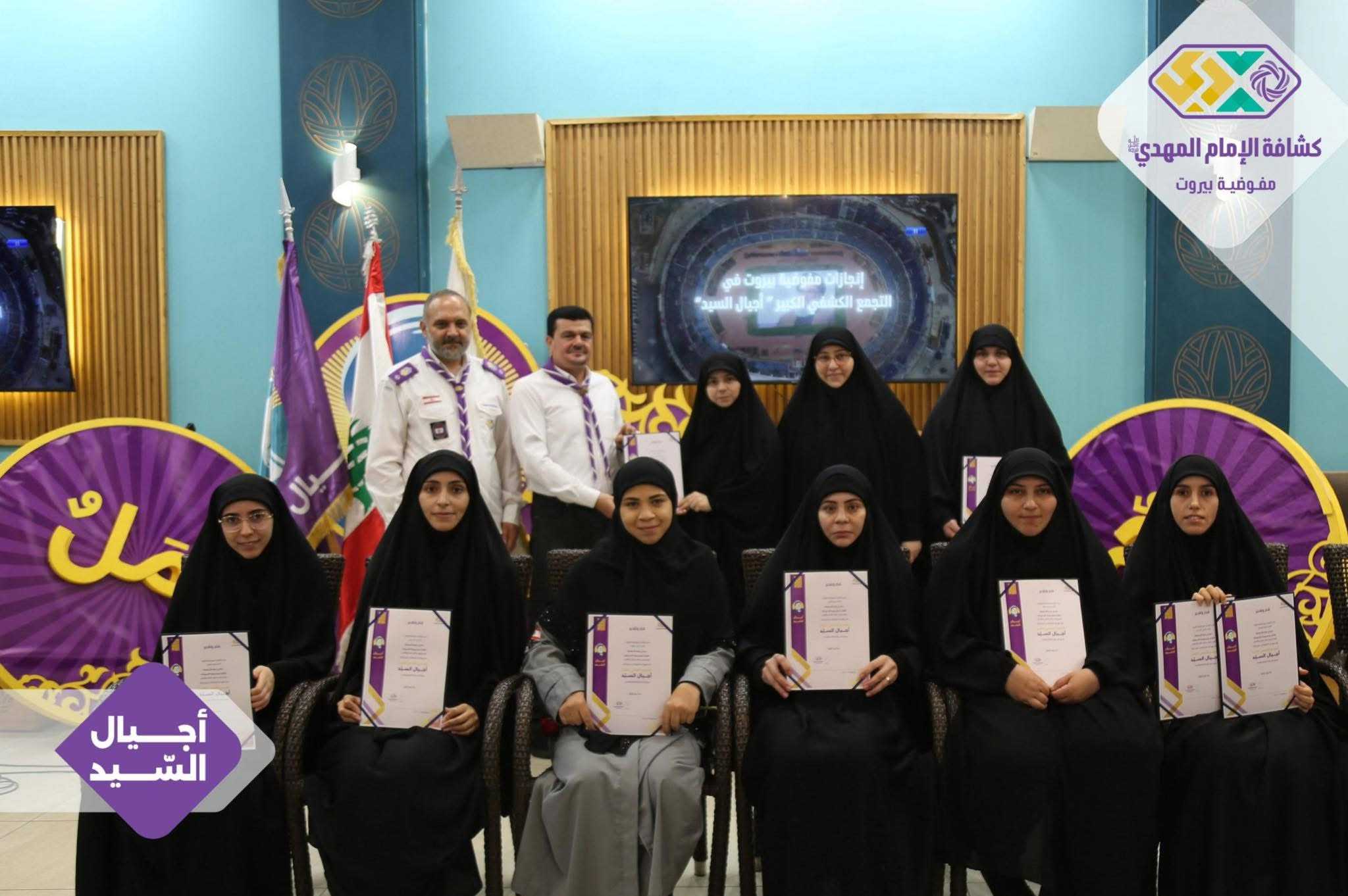 برعايةٍ وحضور رئيس الجمعيّة الشّيخ نزيه فياض، أقامت مفوضيّة بيروت لقاءً تكريميًّا خاصًّا بالتّجمّع الكشفيّ الكبير “أجيال السّيد”، وذلك في قاعة مطعم الصّنوبرة في المشرفيّة، بحضور مسؤولة الهيئات النّسائية في منطقة بيروت، ومسؤولات الهيئات النّسائية في القطاعات، فضلًا عن أعضاء مفوضيّة مرشدات بيروت، وعميدات الأفواج، وأعضاء اللّجان العاملة في التّجمّع الكشفيّ الكبير.