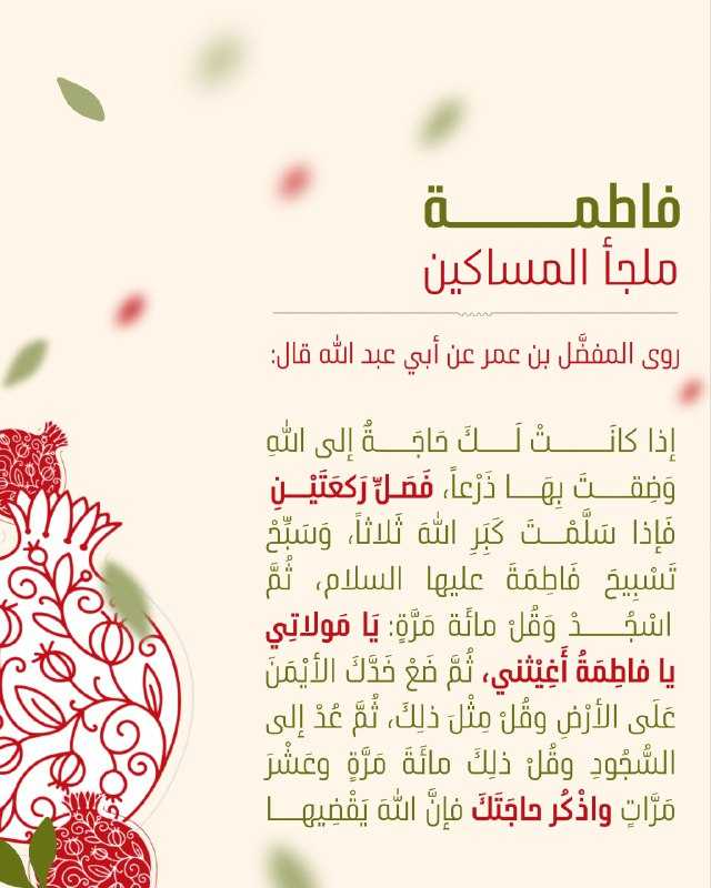 ♦️ فاطمة (عليها السلام) ملجأ السالكين…