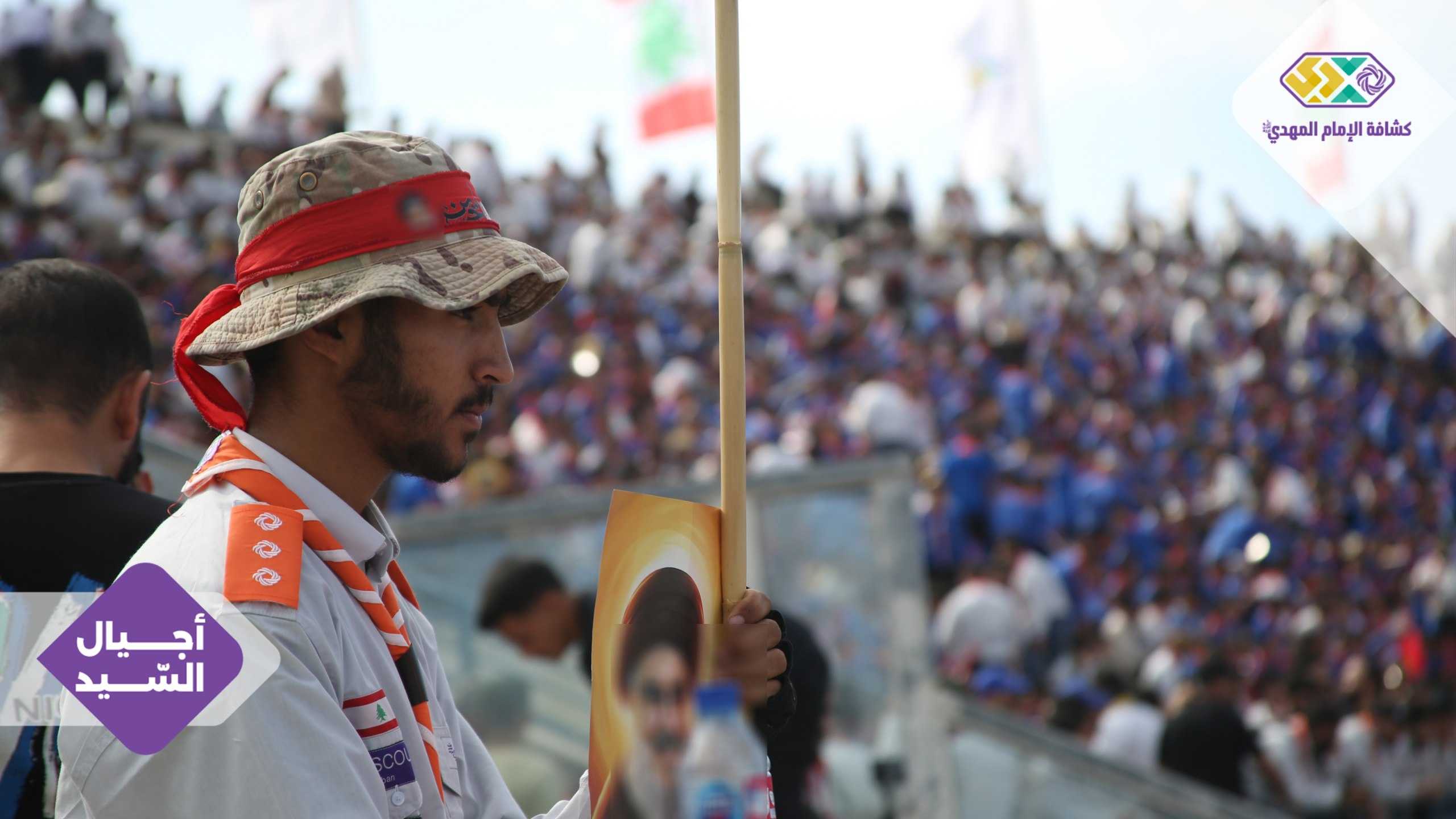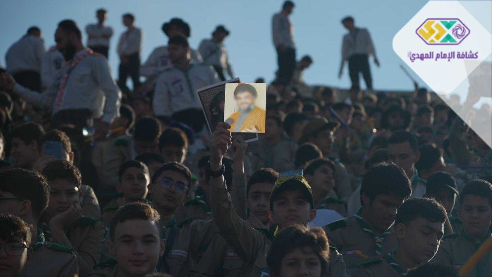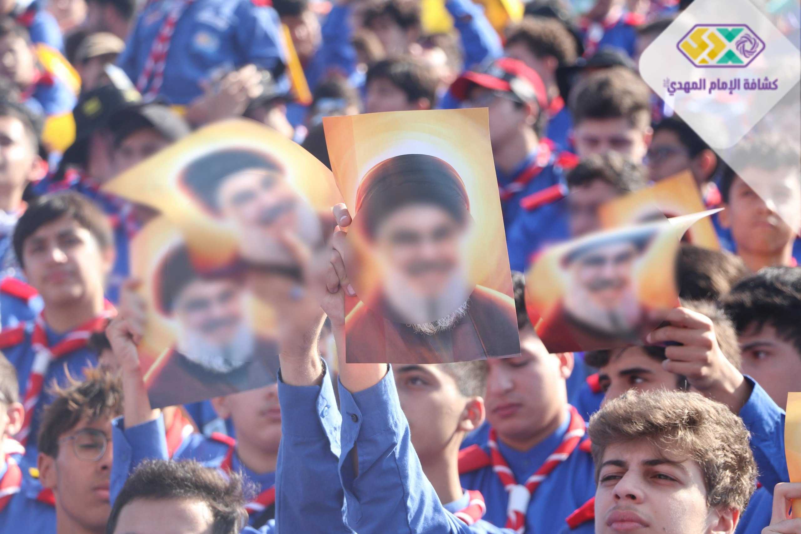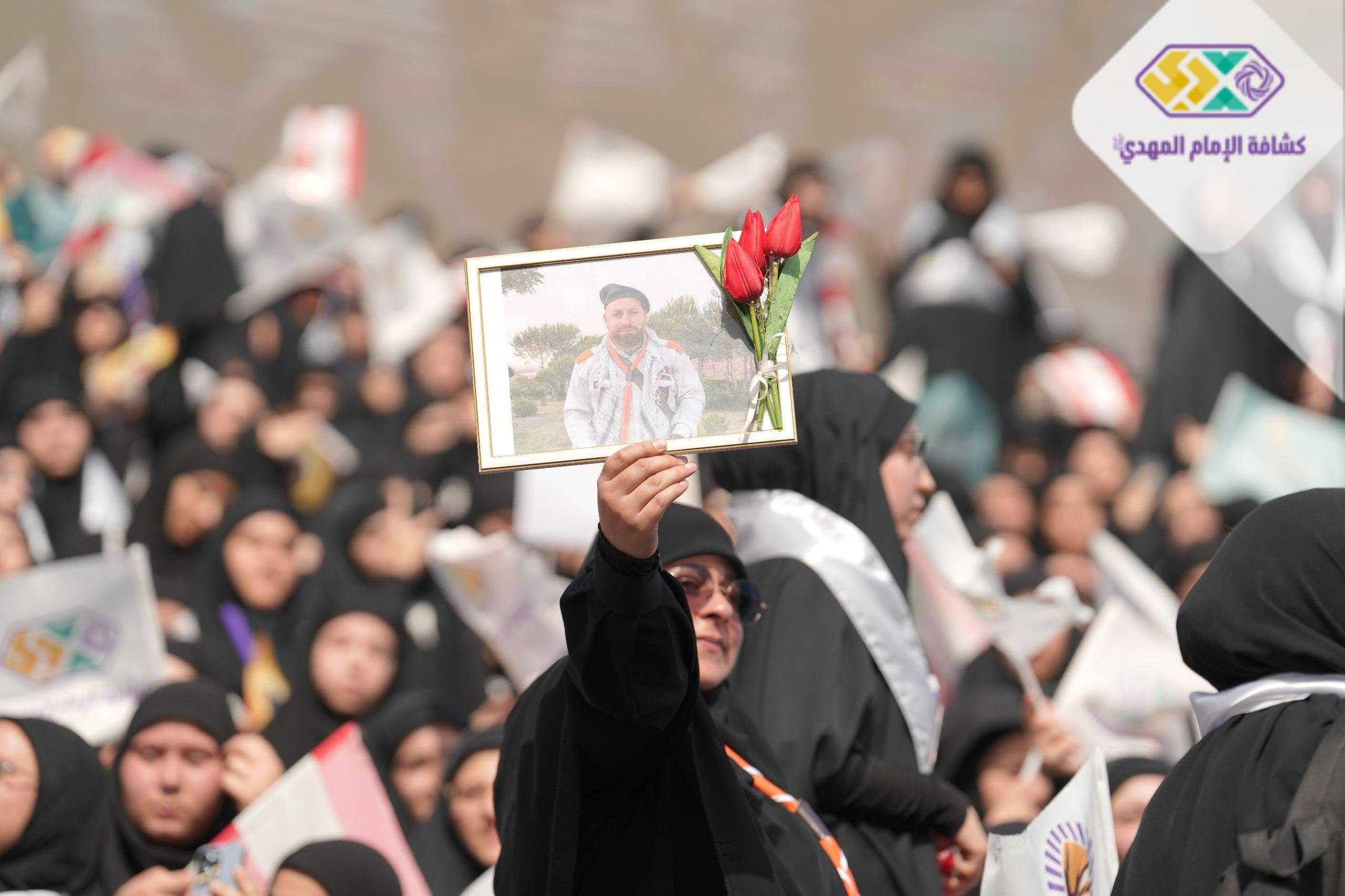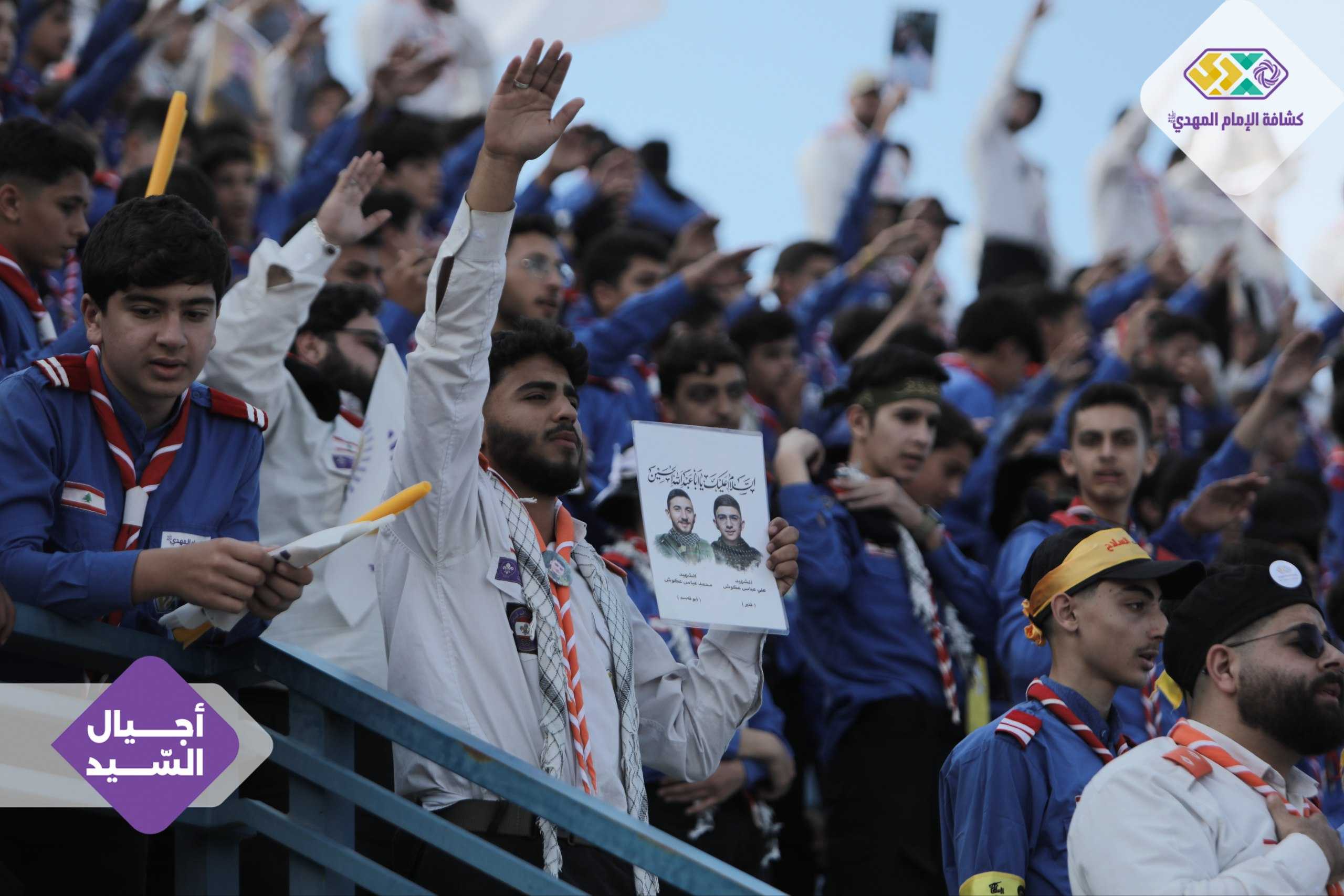 من صور المشاركين في التجمع الكشفي الكبير "أجيال السيد"، حاملين صور السعداء