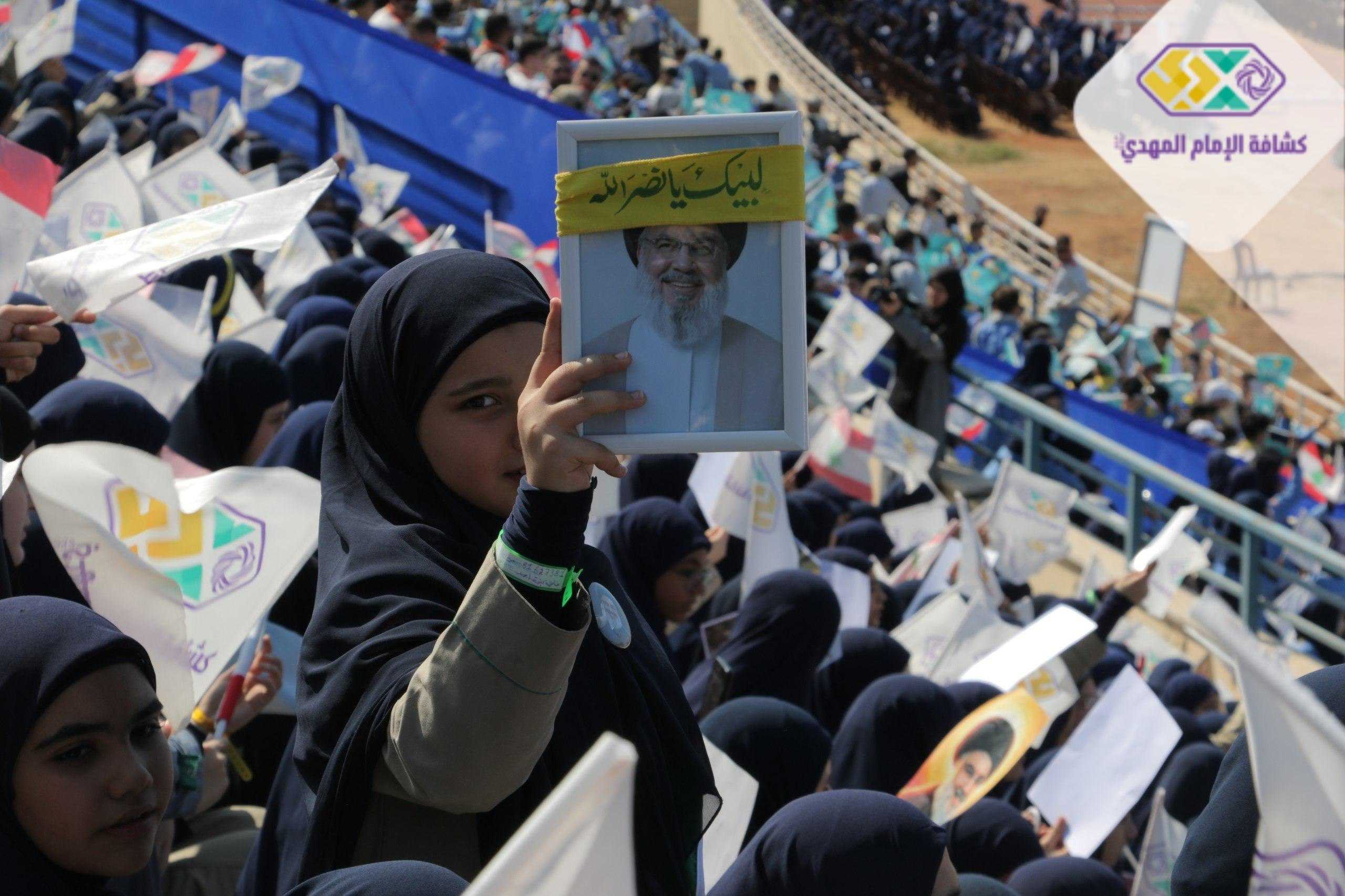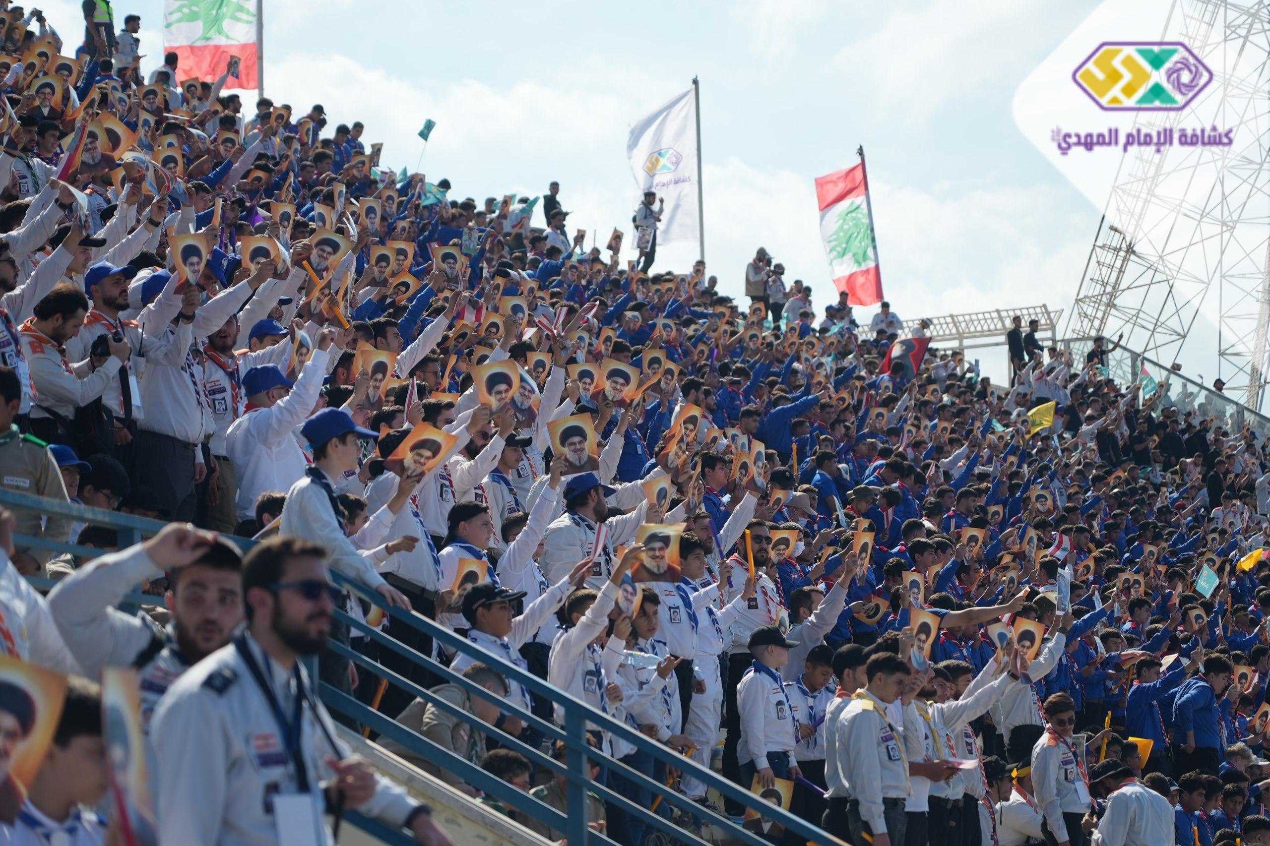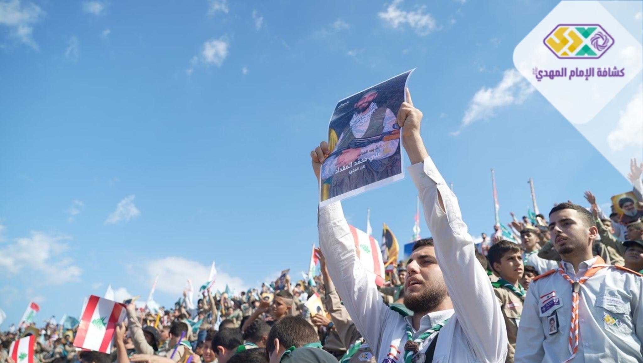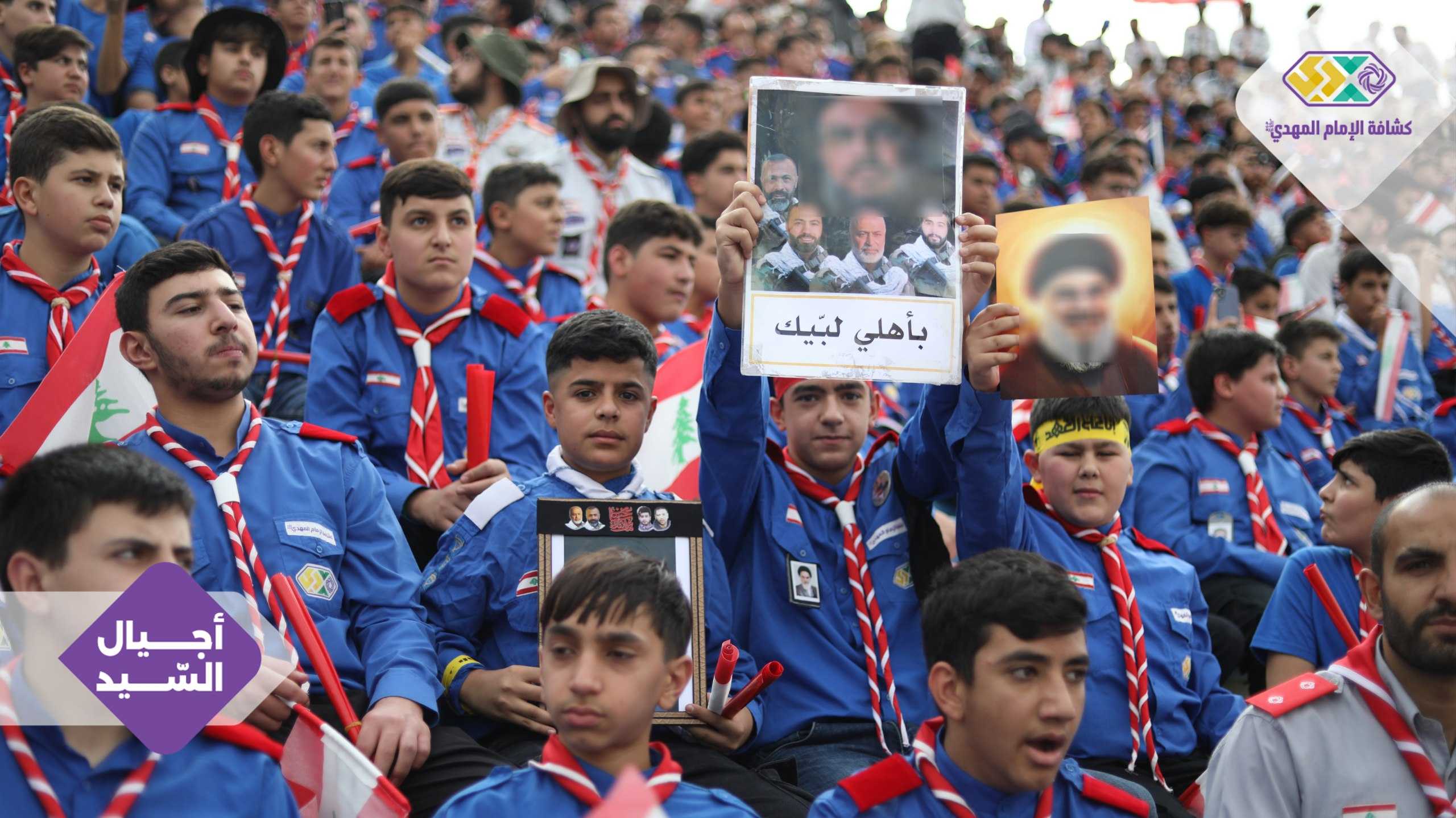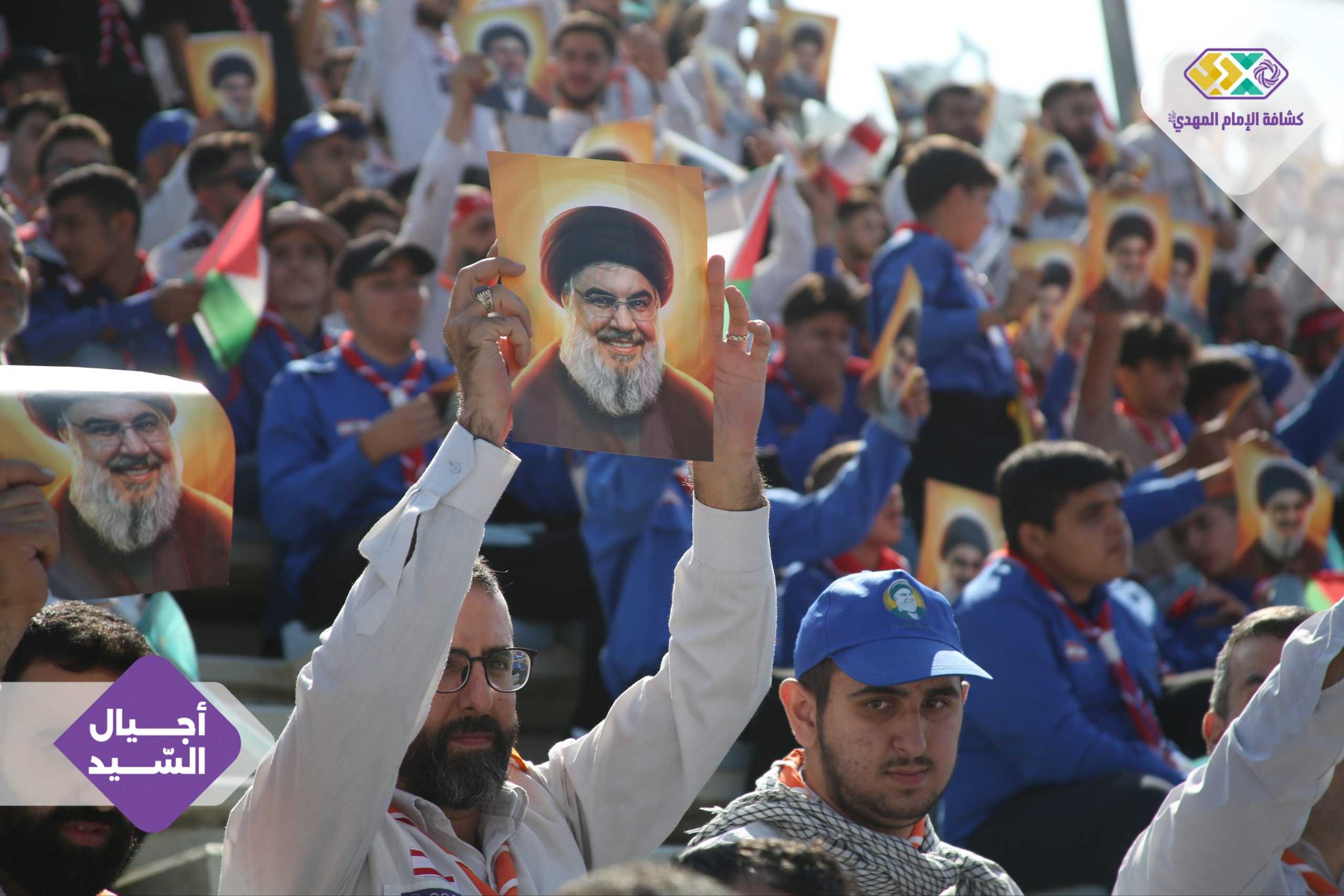 من صور المشاركين في التجمع الكشفي الكبير "أجيال السيد"، حاملين صور السعداء