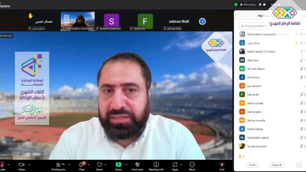 في إطار التحضيرات المتواصلة للتجمّع الكشفي الكبير "أجيال السيّد"، عقدت الوكالة اللبنانية للصحافة اللقاء التنظيمي الثالث عبر منصة "زوم" تحت عنوان: "دور أعضاء الوكالة في التجمّع الكشفي الكبير"، بمشاركة ٦٠ قائدًا وقائدة من فريق المحترفين.