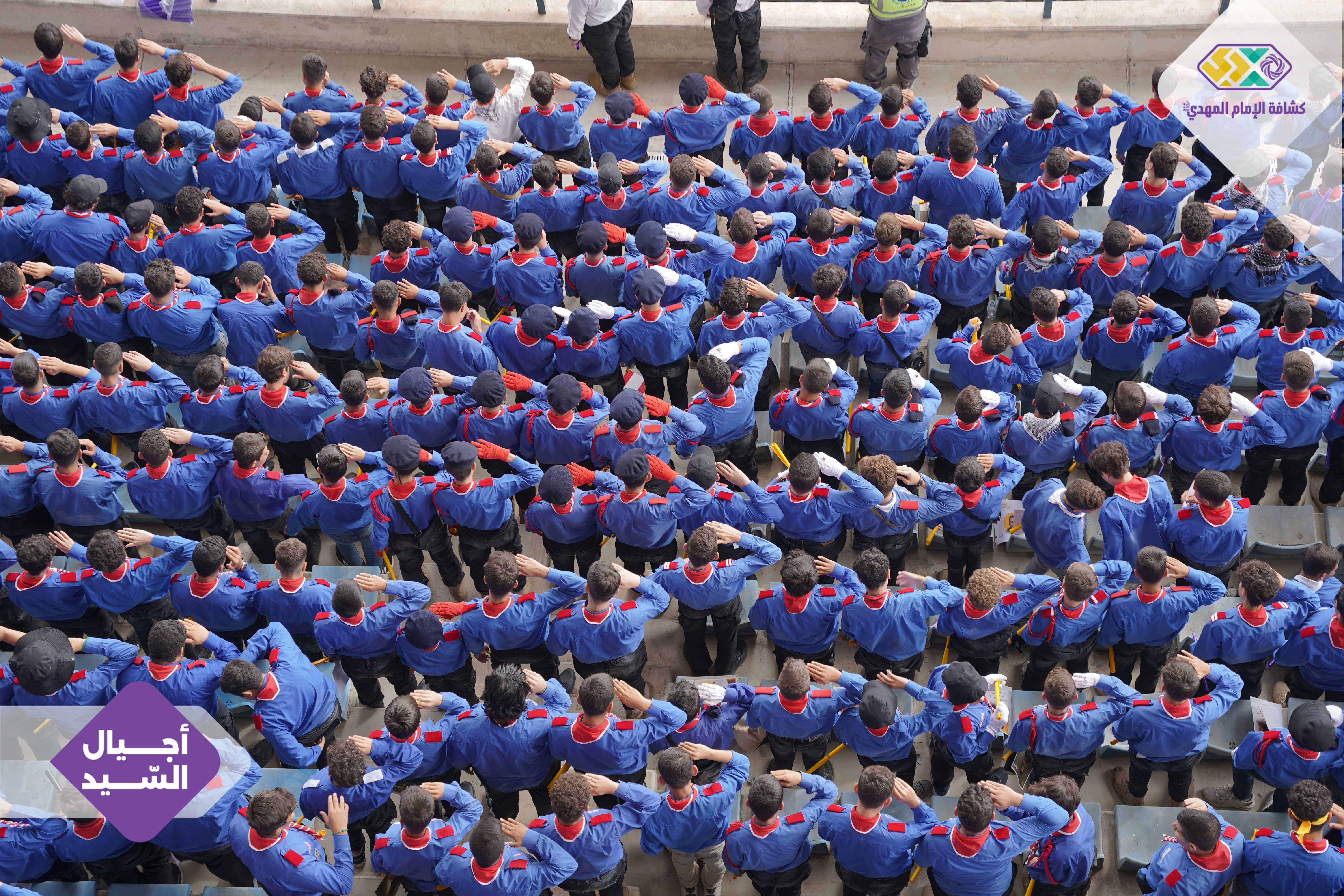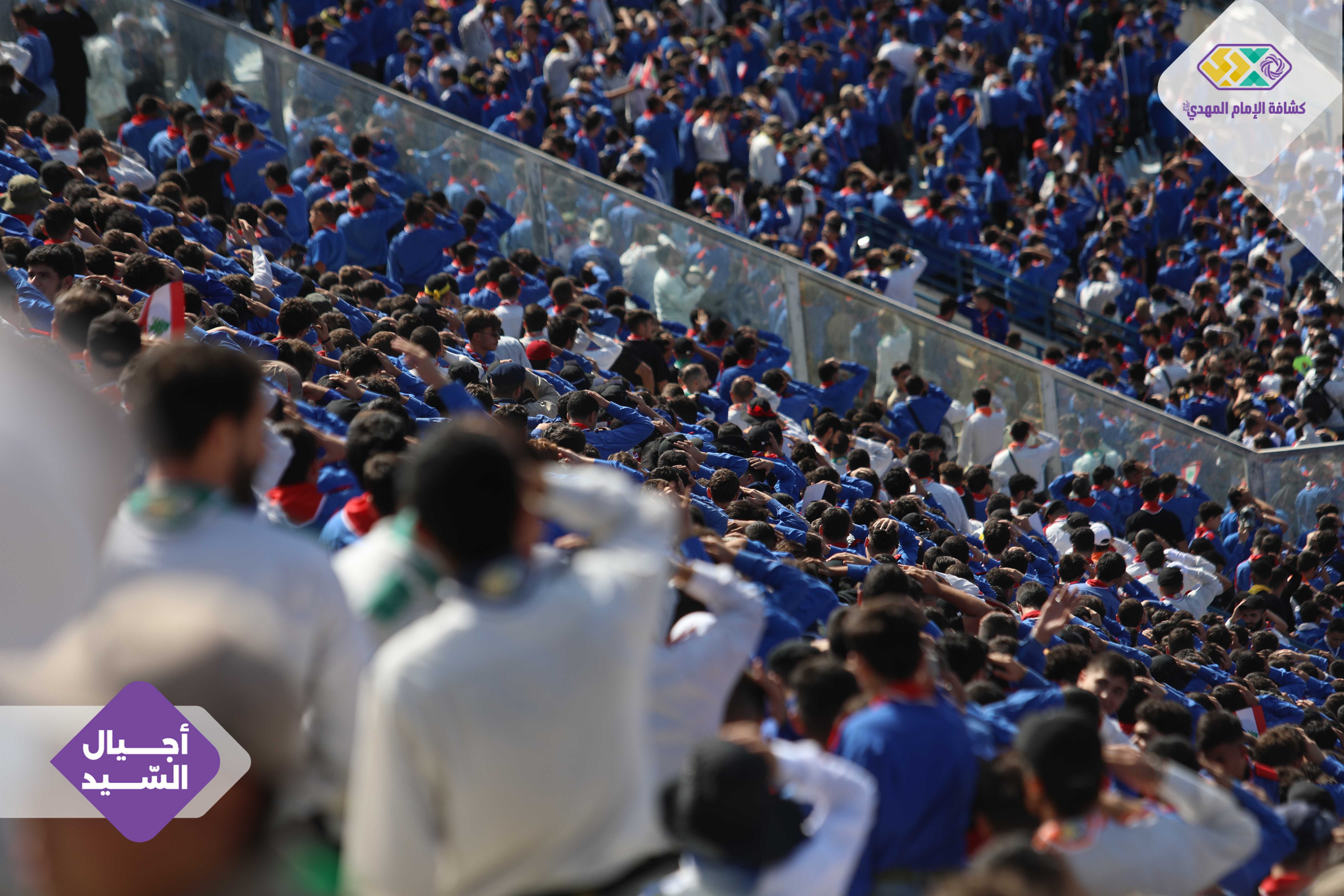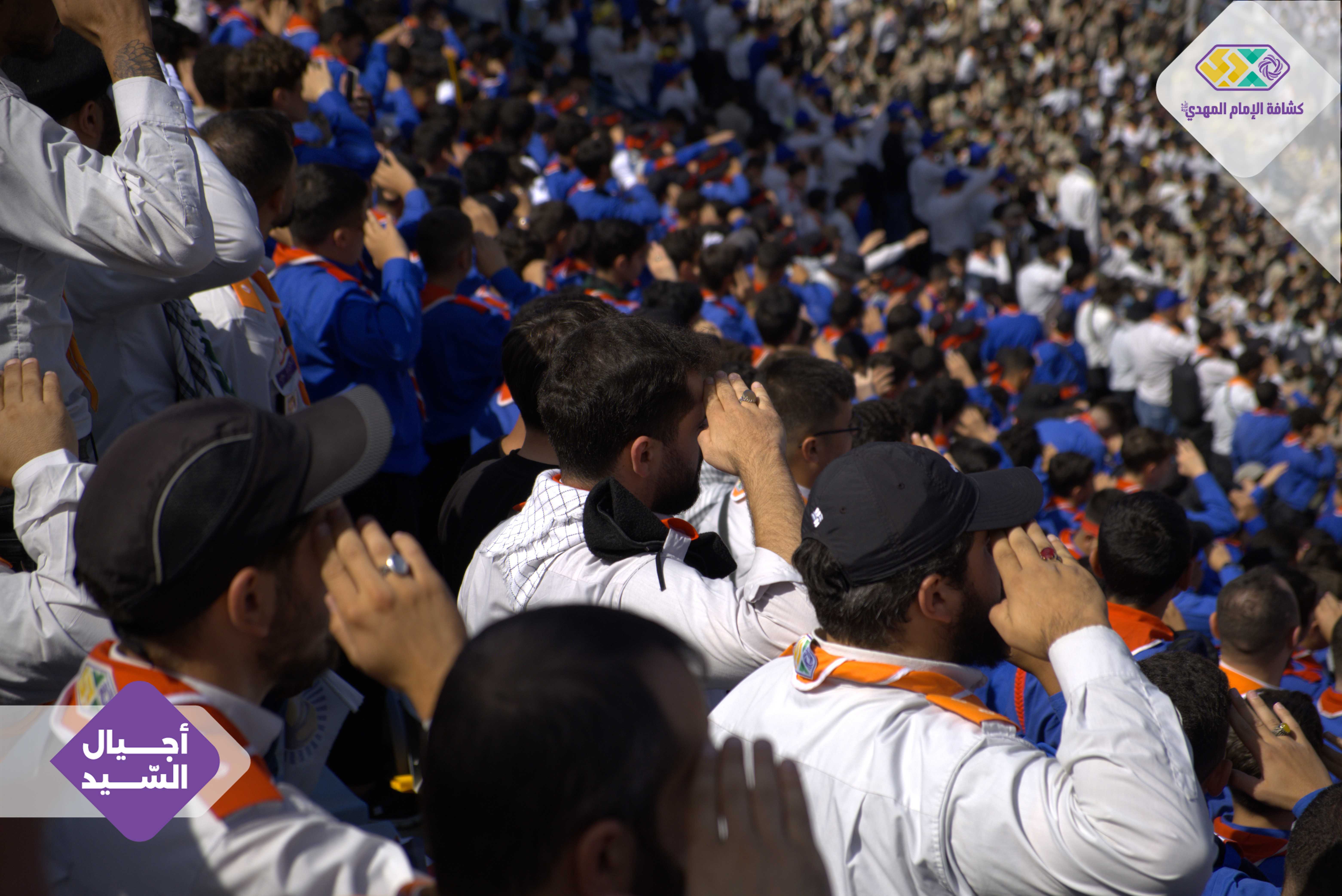 لقطات للحشود وهم يؤدّون دعاء الحجّة والتّحيّة الكشفيّة خلال التّجمّع، في مشهد يعكس المحبّة والإرتباط بالامام "عج" وقِيَمه.