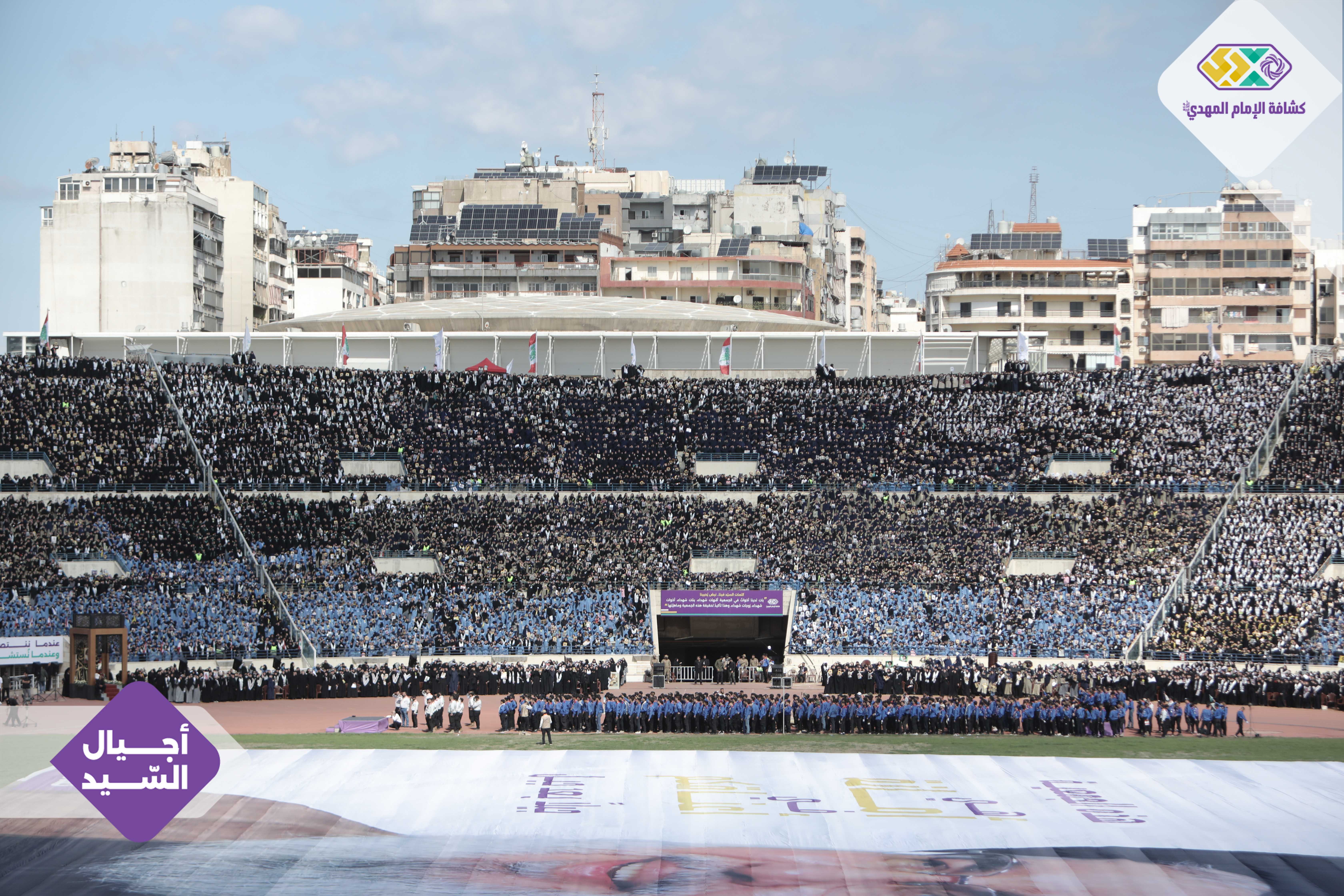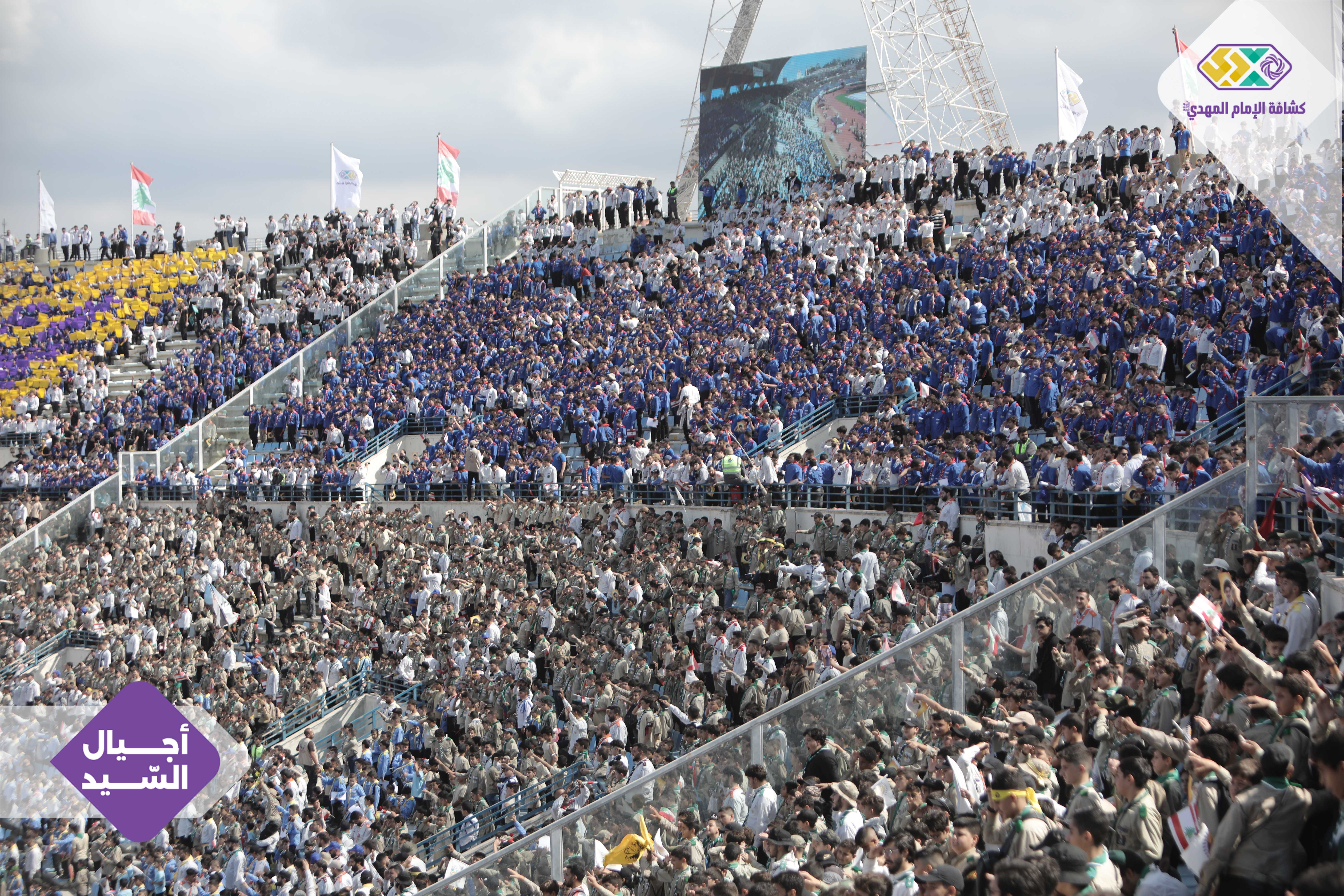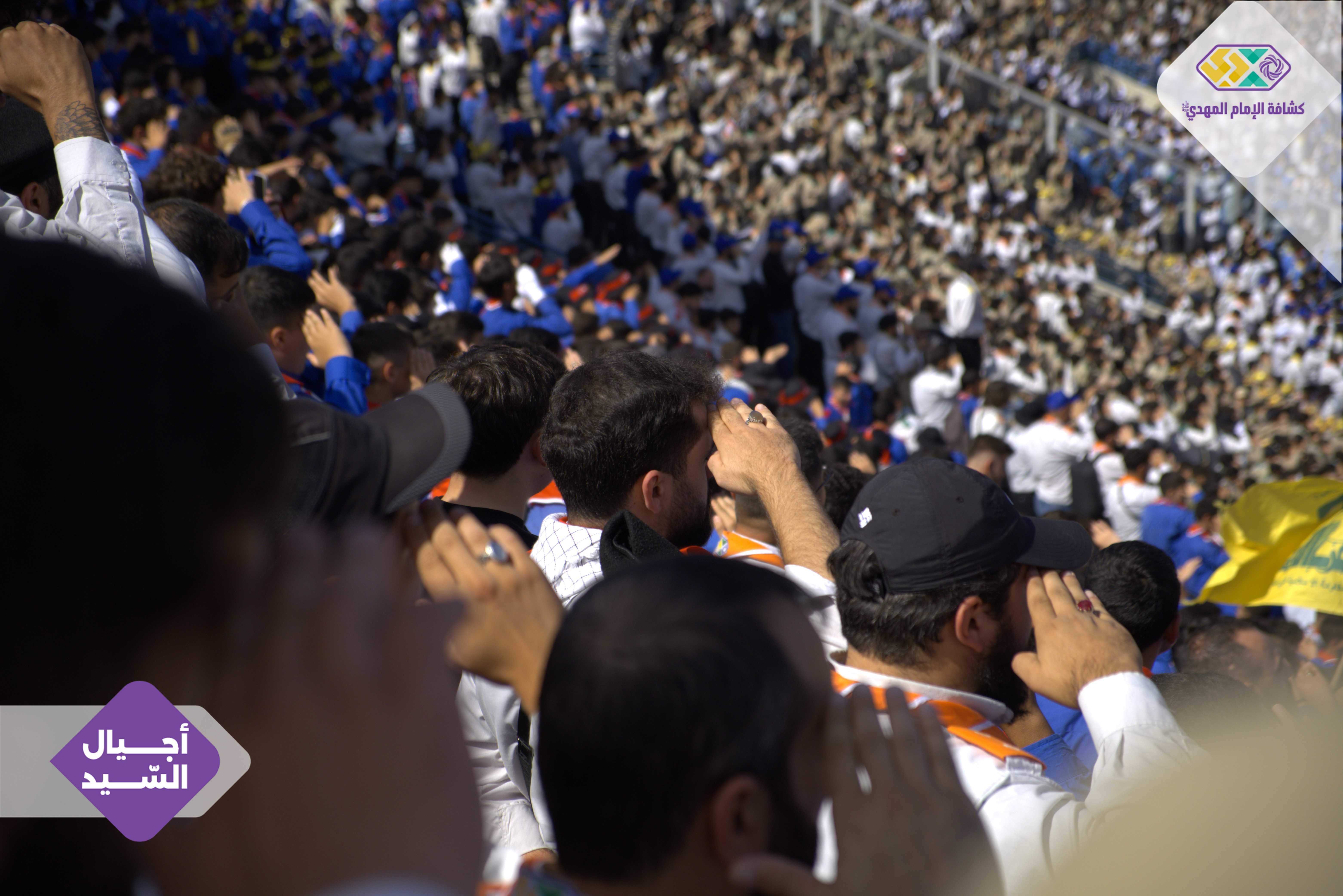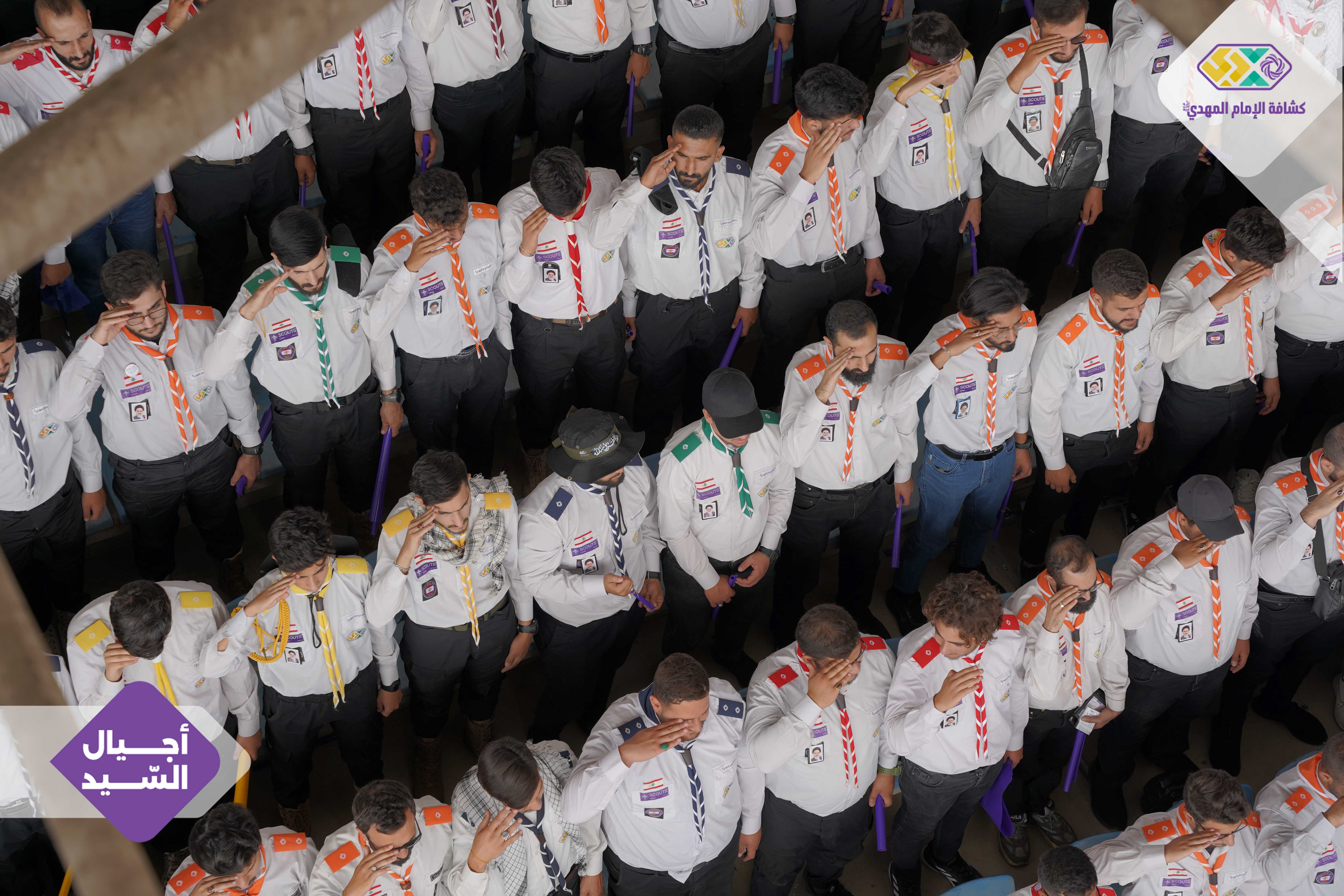 لقطات للحشود وهم يؤدّون دعاء الحجّة والتّحيّة الكشفيّة خلال التّجمّع، في مشهد يعكس المحبّة والإرتباط بالامام "عج" وقِيَمه.