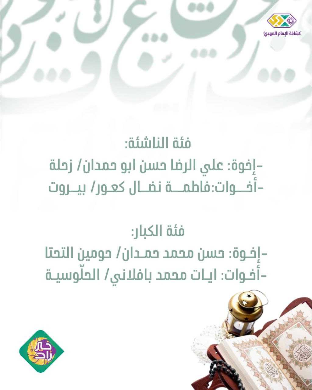 ️ الفائزون في مسابقة جمال التلاوة عن يوم الثلاثاء 17/3/2025 تجدون النتائج على صفحة الفيسبوك مبارك للفائزين️