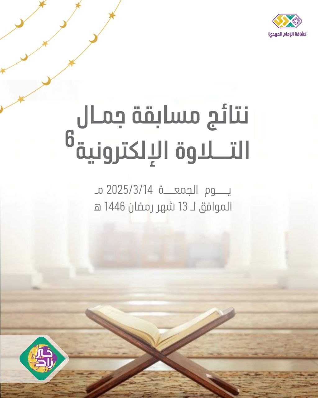 ️ الفائزون في مسابقة جمال التلاوة عن يوم الجمعة 14/3/2025 تجدون النتائج على صفحة الفيسبوك مبارك للفائزين️