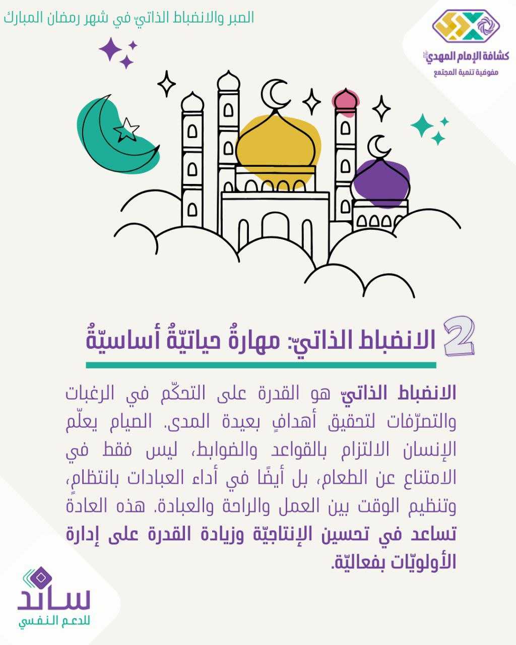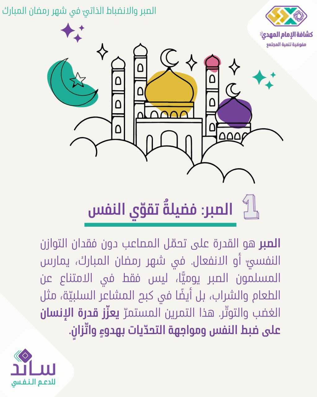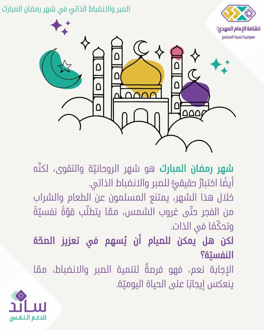 ️ الصبر والانضباط الذاتيّ في شهر رمضان تعزيزٌ للقوّة النفسيّة والتحكّم بالذات