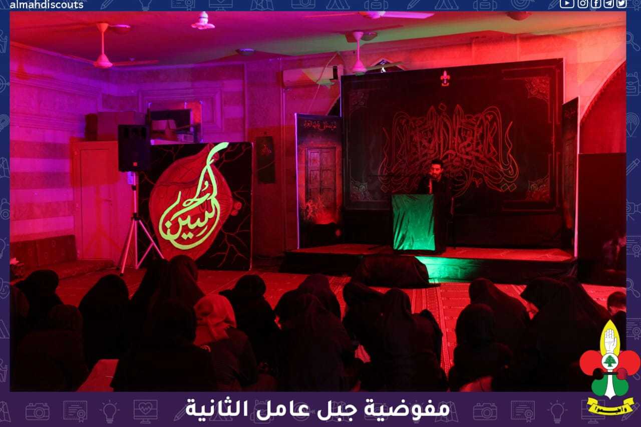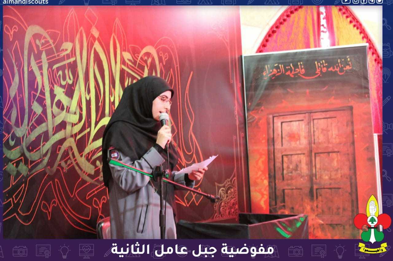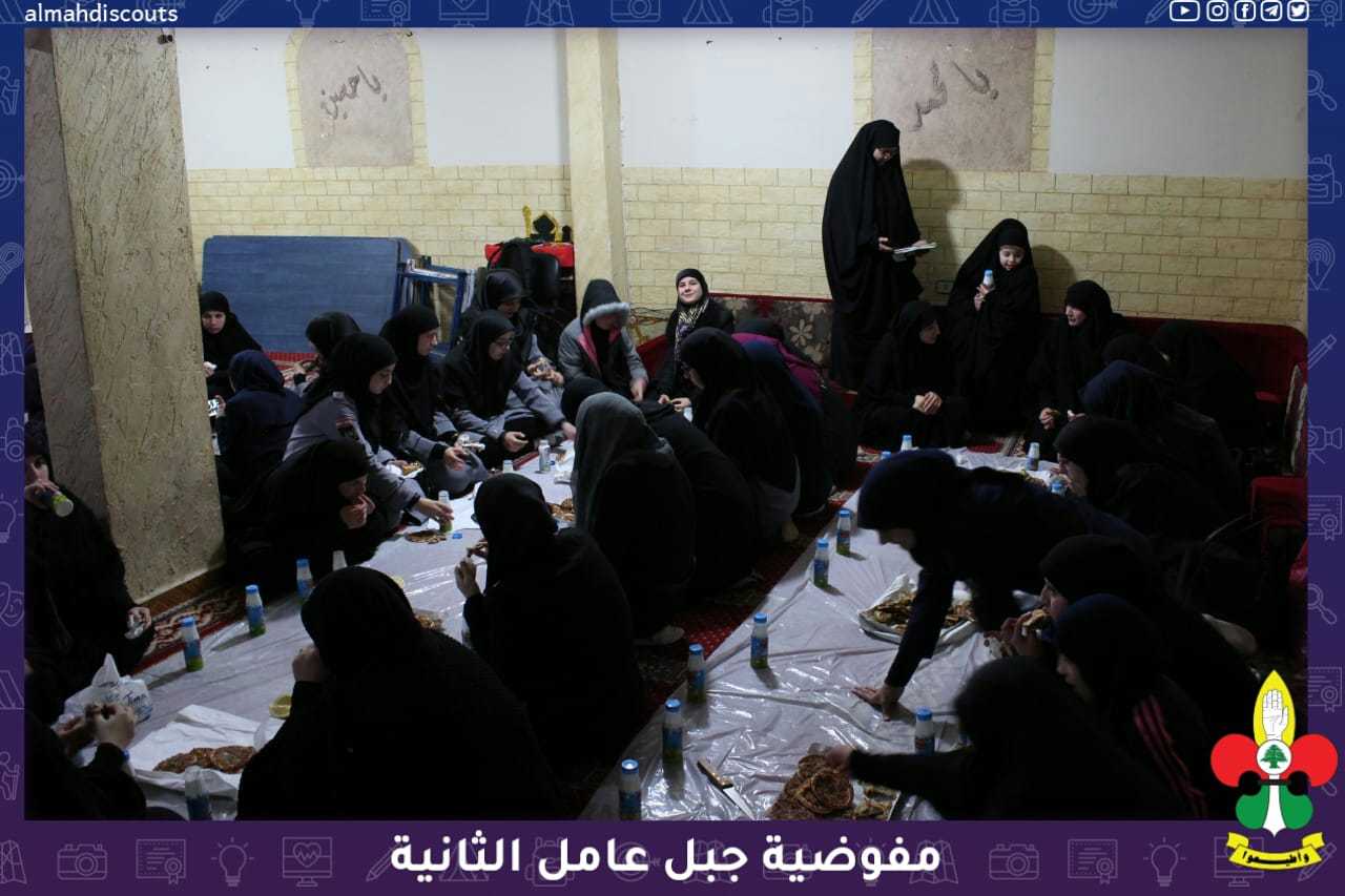 على حُبِّ السيِّدة الزهراء عليها السّلام وفي أجواء شهادتها، أقام قطاع الإمام الحسين (ع)/النّبطية مفوّضية جبل عامل الثانية، مجلسا حسينيًا في الأجواء، جمع 60 قائدة ودليلة من القطاع واختتم بوليمة على حبِّ فاطمة عليها السّلام.