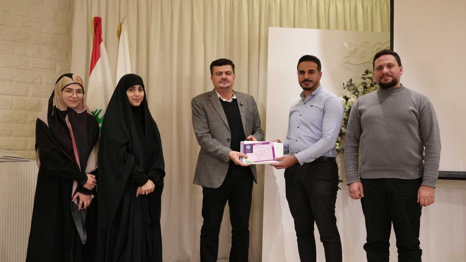 وفي ختام الاحتفال، قام الشيخ نزيه فياض بتوزيع شهادات المشاركة في تجمع “أجيال السيد” على الإخوة والأخوات، تقديرًا لجهودهم وتعبيرًا عن الوفاء لعطائهم في مسيرة العمل الكشفي.