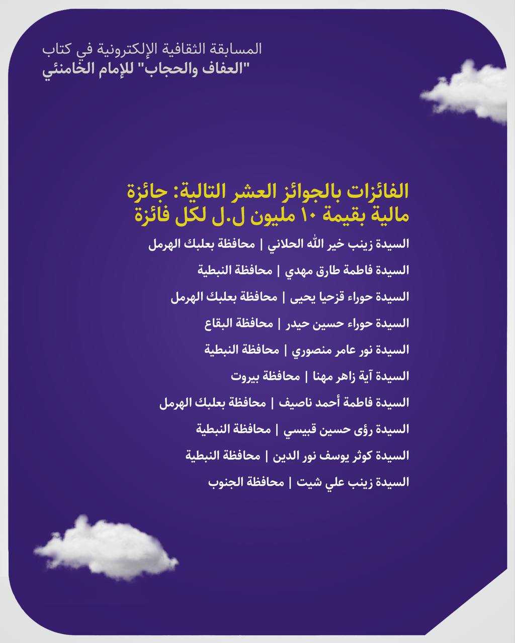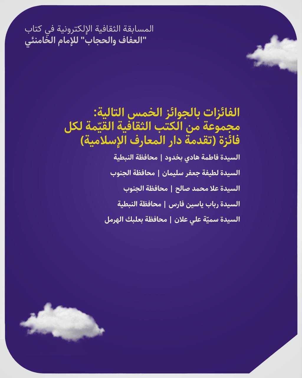 نتائج قرعة المسابقة الالكترونية التي أقيمت في كتاب "العفاف والحجاب"