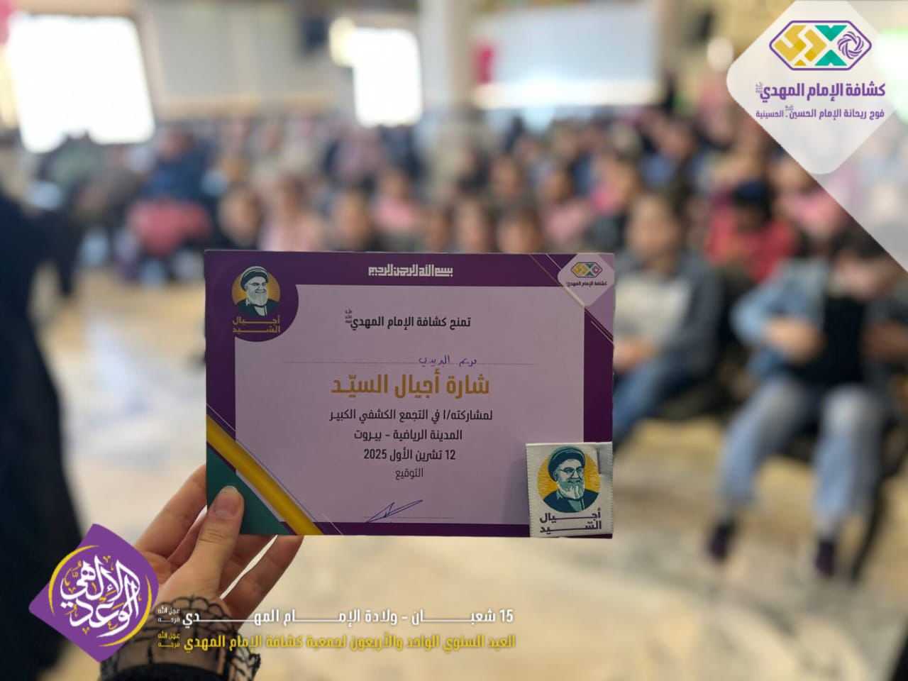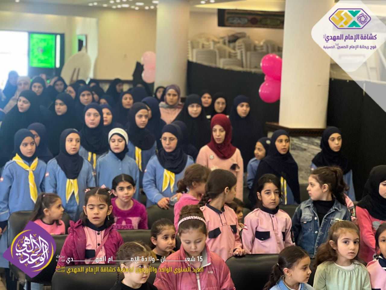 في أجواء ولادة الإمام المهدي عجل ، نظّم فوج ريحانة الإمام الحسين عليه السلام – الحسينيّة احتفالًا بعنوان «أمل القلوب»، بحضور ناهز 150 كشفية وأمّهاتهنّ .