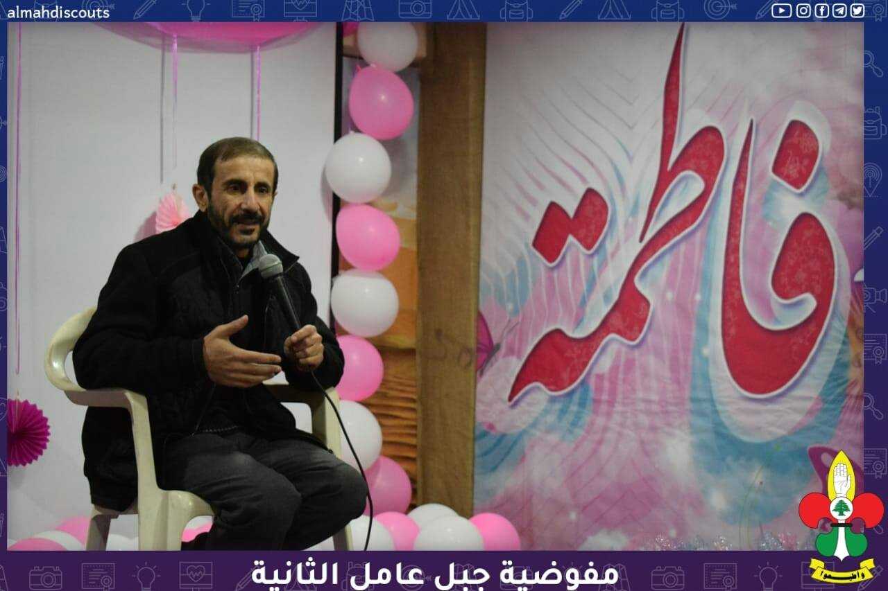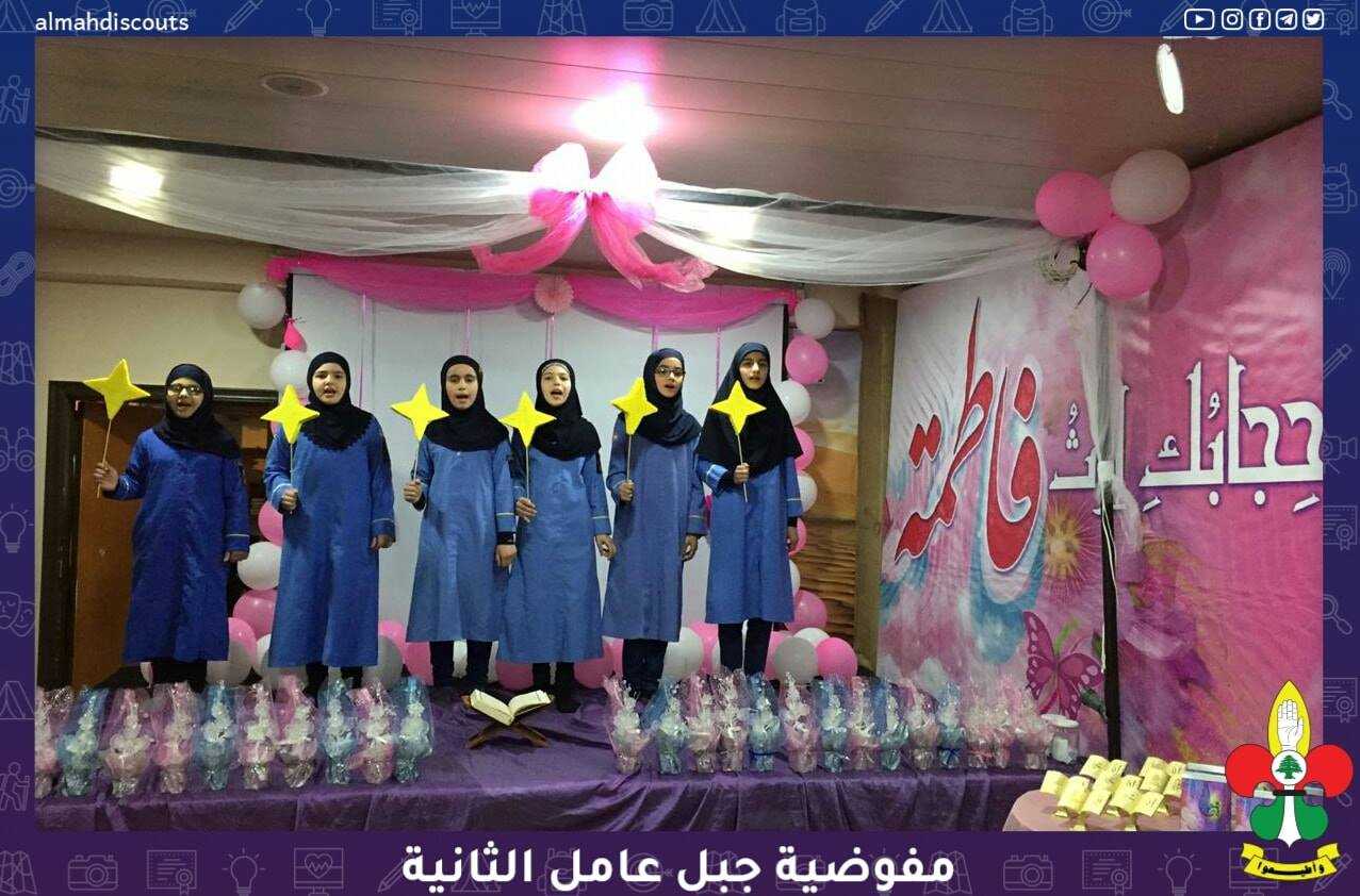 بحضور معاون المفوض العام لجمعية كشّافة الإمام المهدي عجّل الله فرجه، وفي أجواء الولادة المباركة للسيّدة الزّهراء عليها السّلام، أقام فوج السيّدة مريم (ع)/عدشيت إحتفالاً للمناسبة تخلّله إطلاق مشروع نجمات البتول (ع) للعام 2019 وتكريم المشاركات بالمشروع العام الماضي، وتخلّله مجموعة من الفقرات الفنية والكشفية من وحي الأجواء