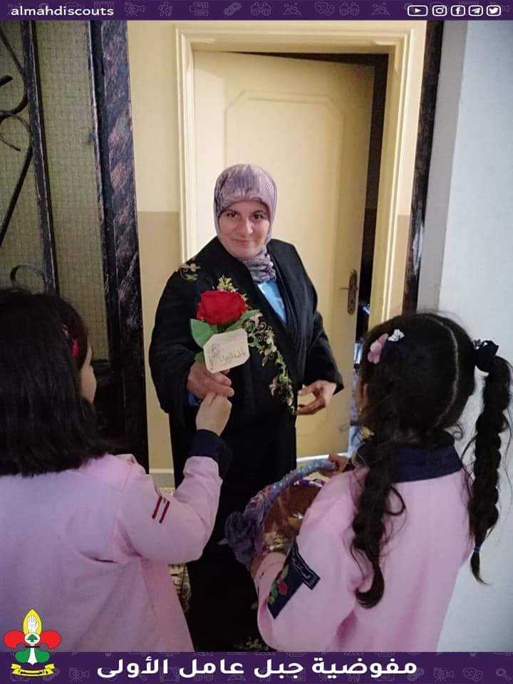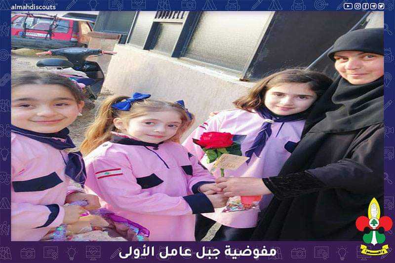 كشفيات فوج السيدة نرجس/الطيري في قطاع بنت جبيل يوزعن الحلوى والورود على أهالي البلدة بمناسبة ولادة السيدة الزهراء (عليها السلام).