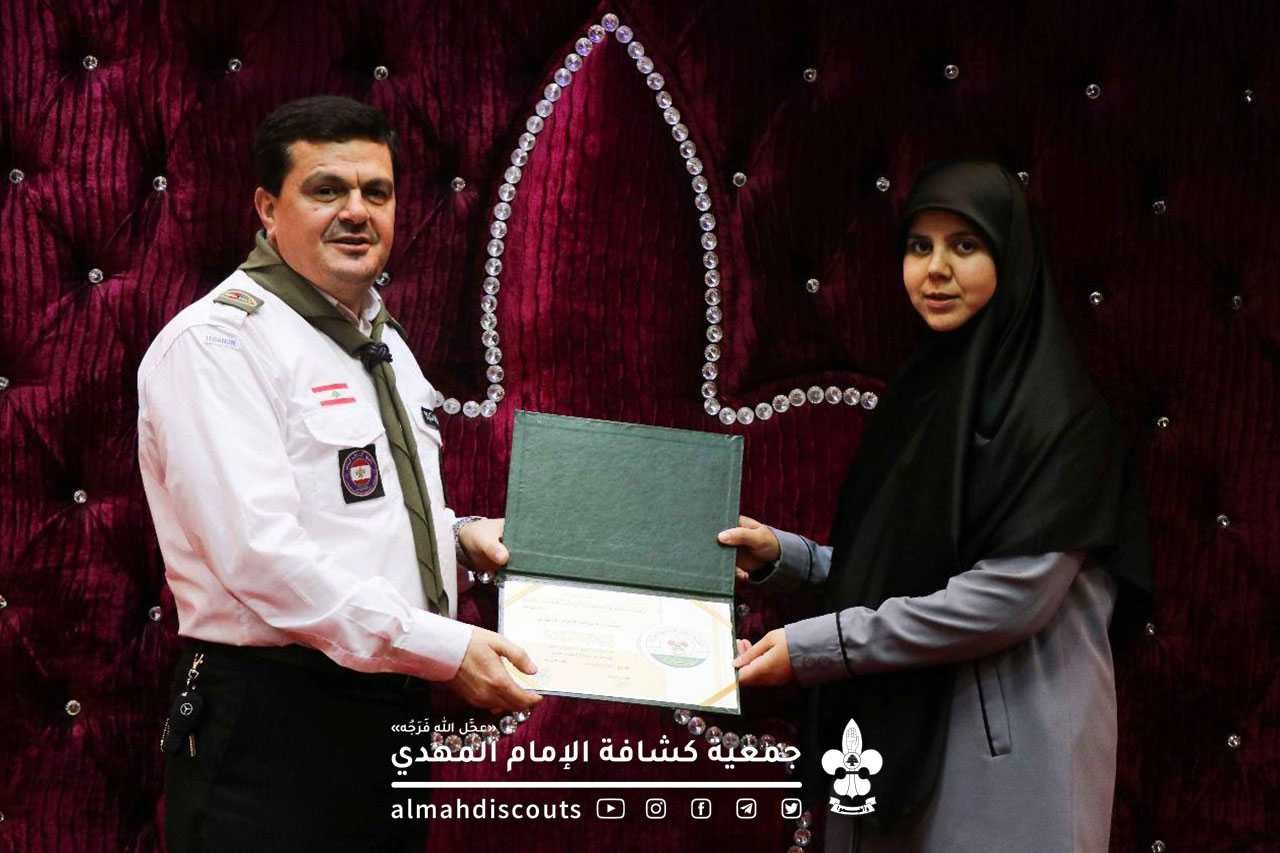 برعاية وحضور رئيس جمعيَّة كشَّافة الإمام المهدي (عجل الله فرجه) الشَّيخ نزيه فيَّاض يرافقه معاون المفوَّض العام الشِّيخ محمَّد سعد، أقامت مفوَّضيَّة التَّدريب حفل توزيع الإجازات التَّدريبيَّة الذي تحدَّث فيه رئيس الجمعيَّة حول أهمِّيَّة العمل التَّدريبي والآمال المنشودة من المدرِّبين الذين يحوزون على الاعترافات العليا في الاختصاصات التَّدريبيَّة. ليختتم الحفل بتوزيع الشَّهادات على كلٍّ من القائد أحمد البزال، القائدة خديجة دقدوق، والقائد سميَّة صبرا، وأخيرًا بالتقاط الصُّور التَّذكاريَّة